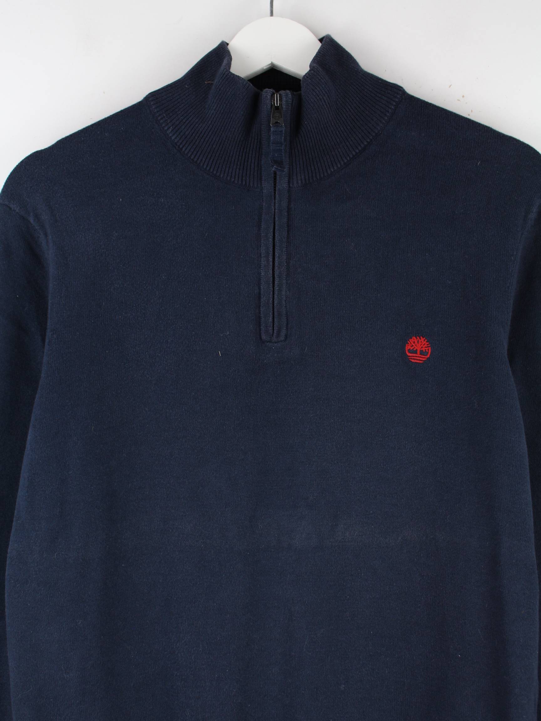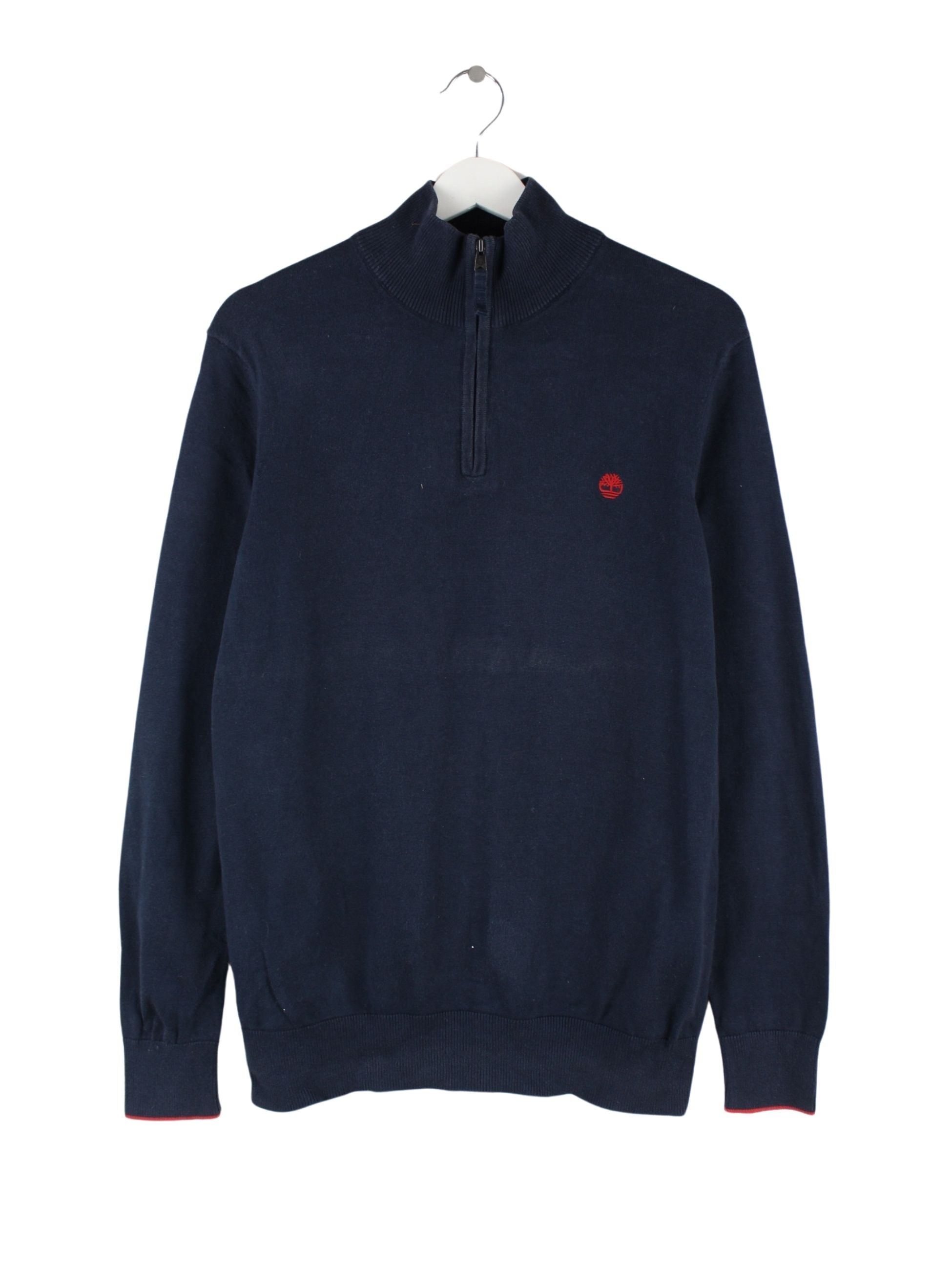 Pullover des Labels Timberland mit half Zip in Größe M. Er ist aus Baumwolle angefertigt und in Blau in Stock.