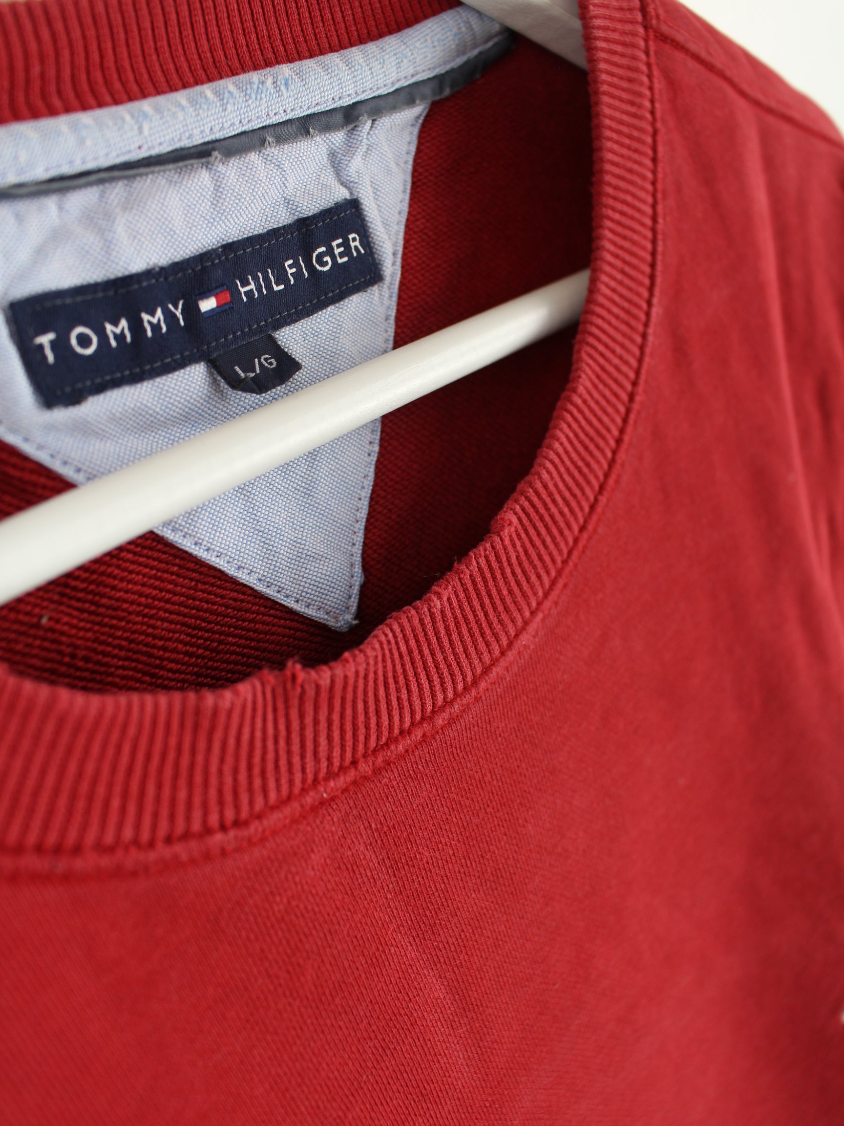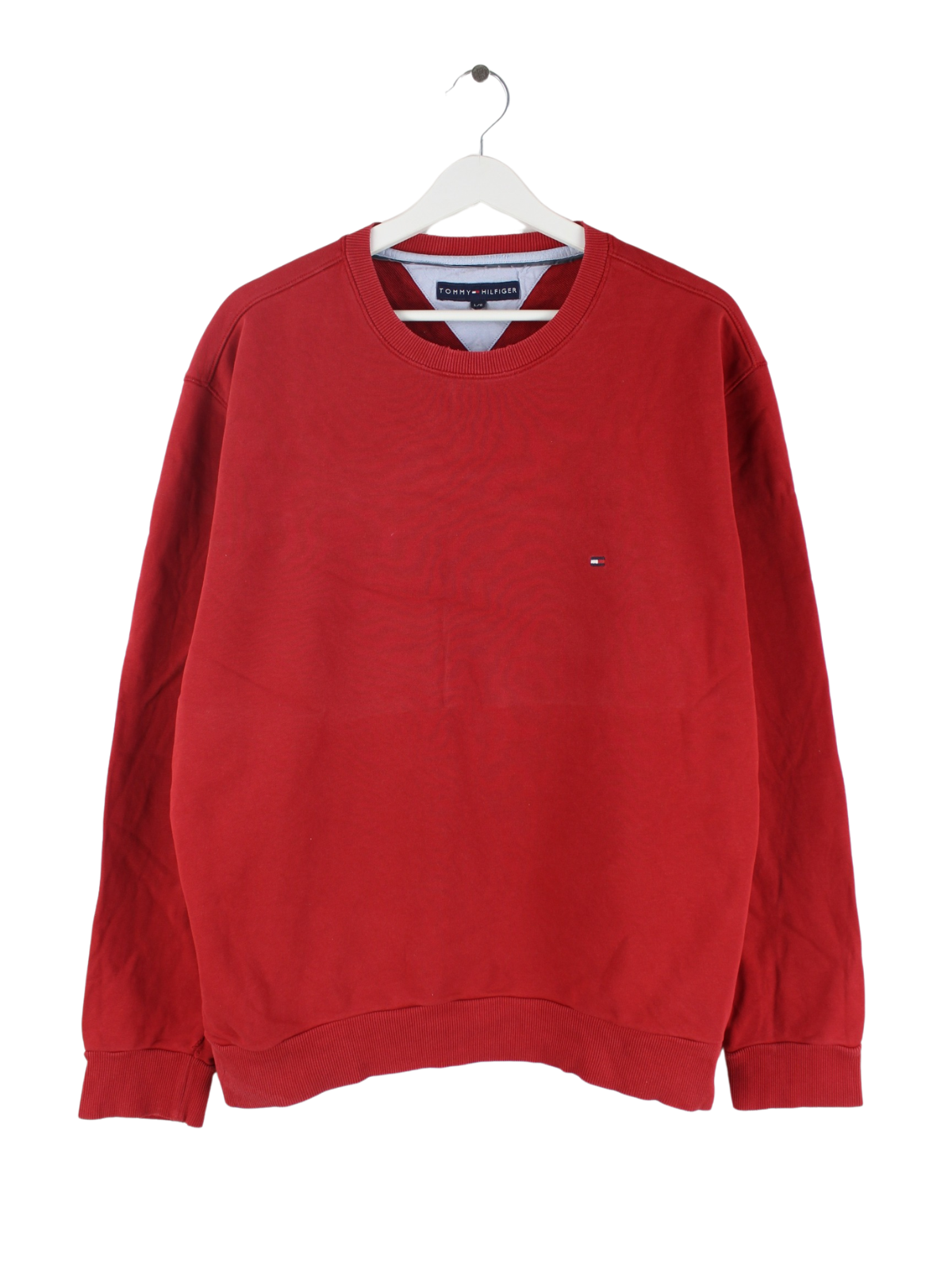 Sweater aus dem Hause Tommy Hilfiger in Größe L. Er ist aus einer Baumwollmischung gemacht und in Rot bei uns vorrätig.