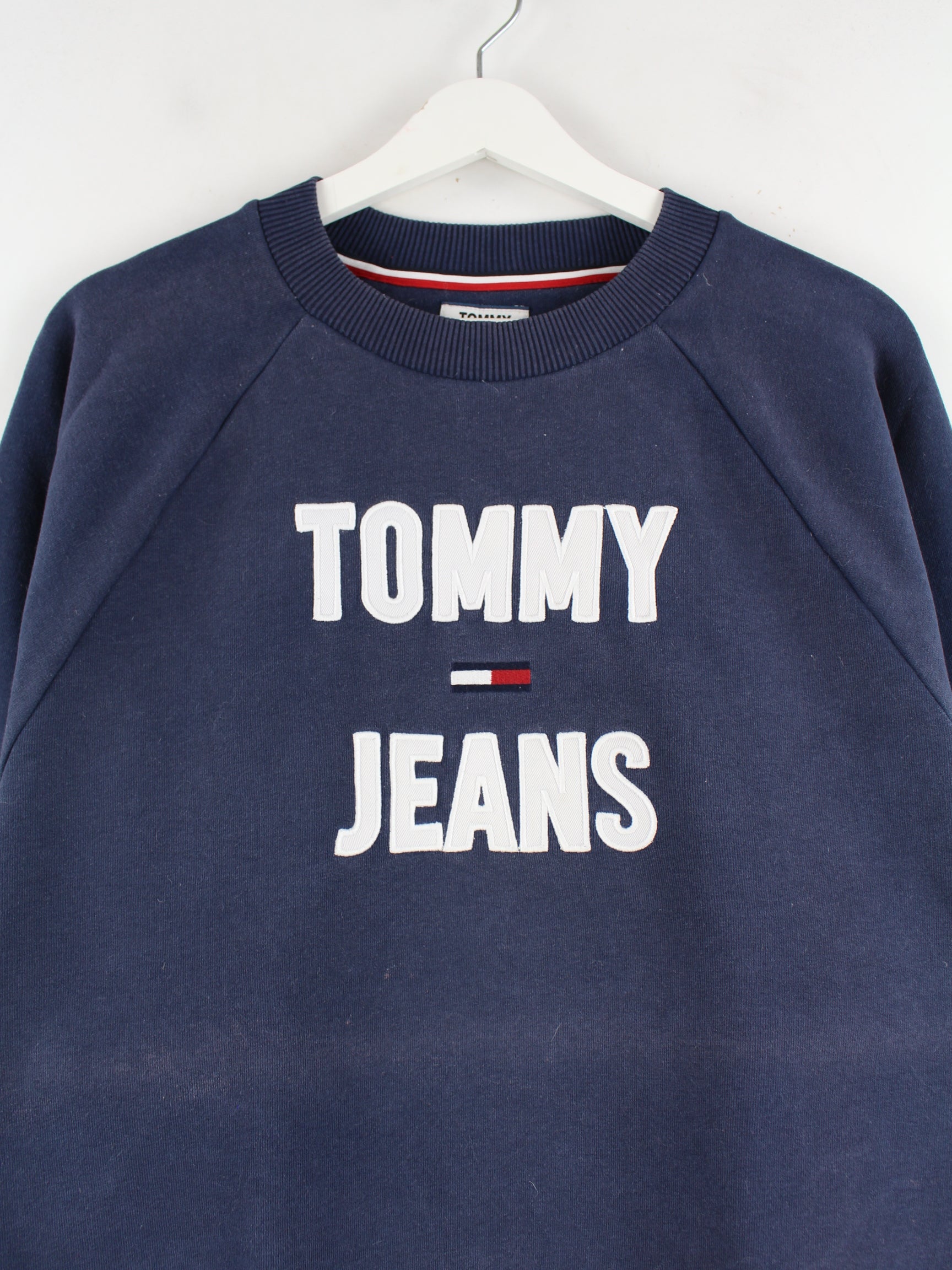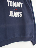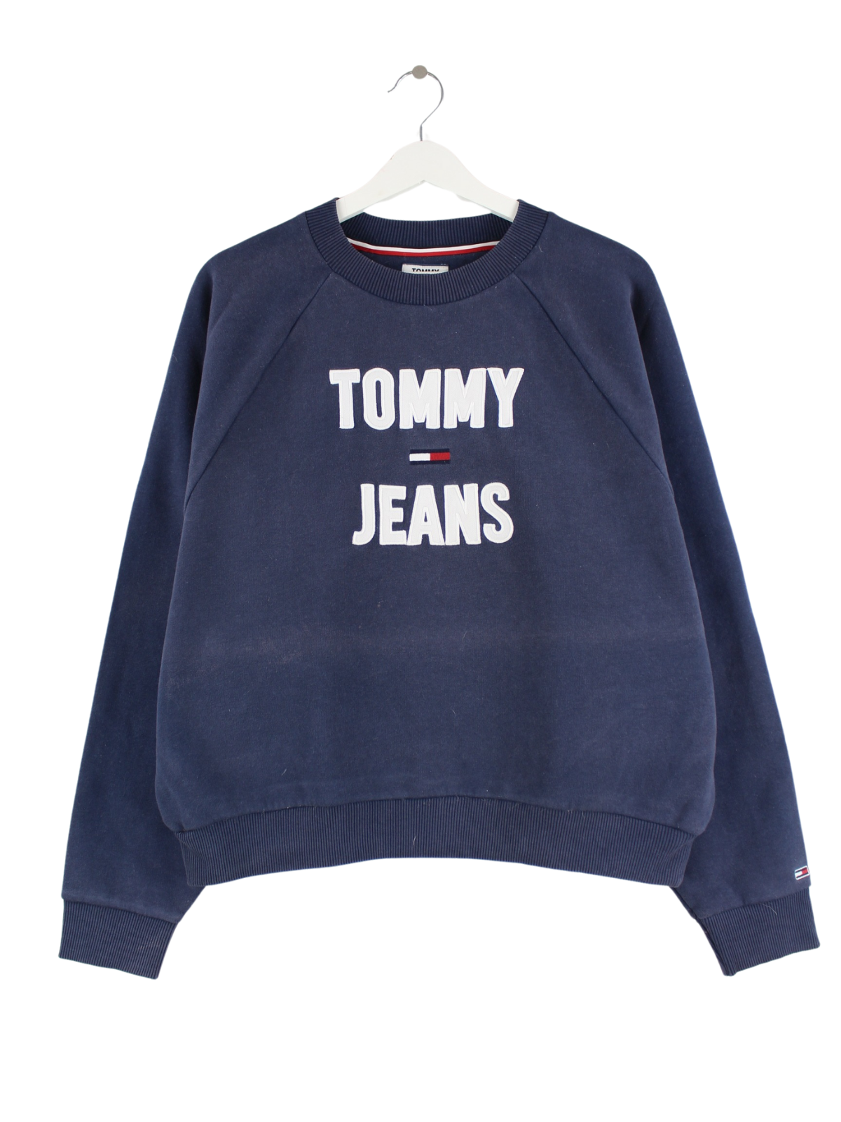 Blauer Sweater mit Stickereien von Tommy Hilfiger in Größe L. Er ist aus einer Baumwollmischung . Den Zustand würden wir als 'In Ordnung' bezeichnen (vergl. Bilder).