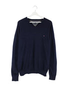 Tommy Hilfiger V-Neck 100% Wolle Pullover Blau L