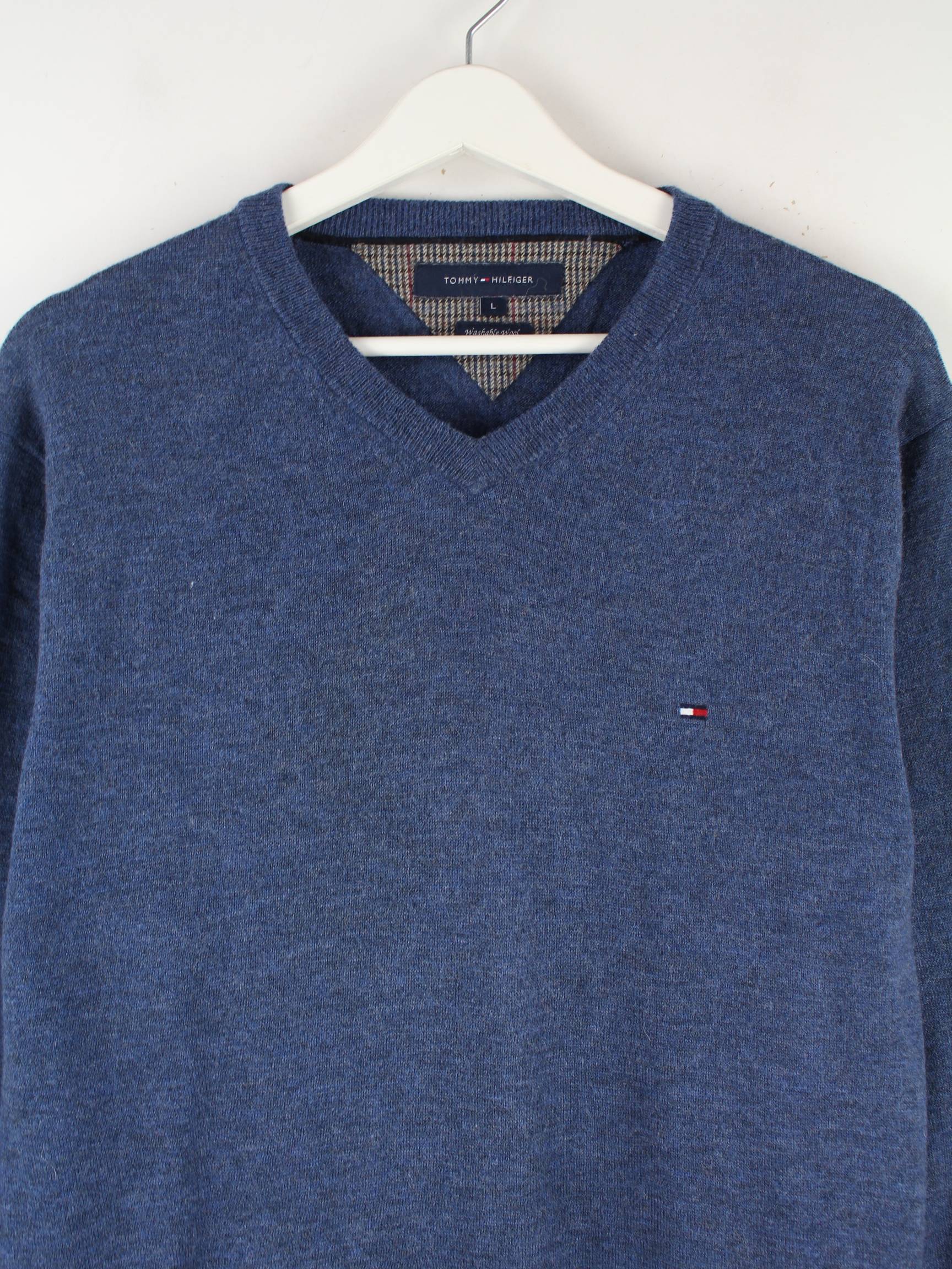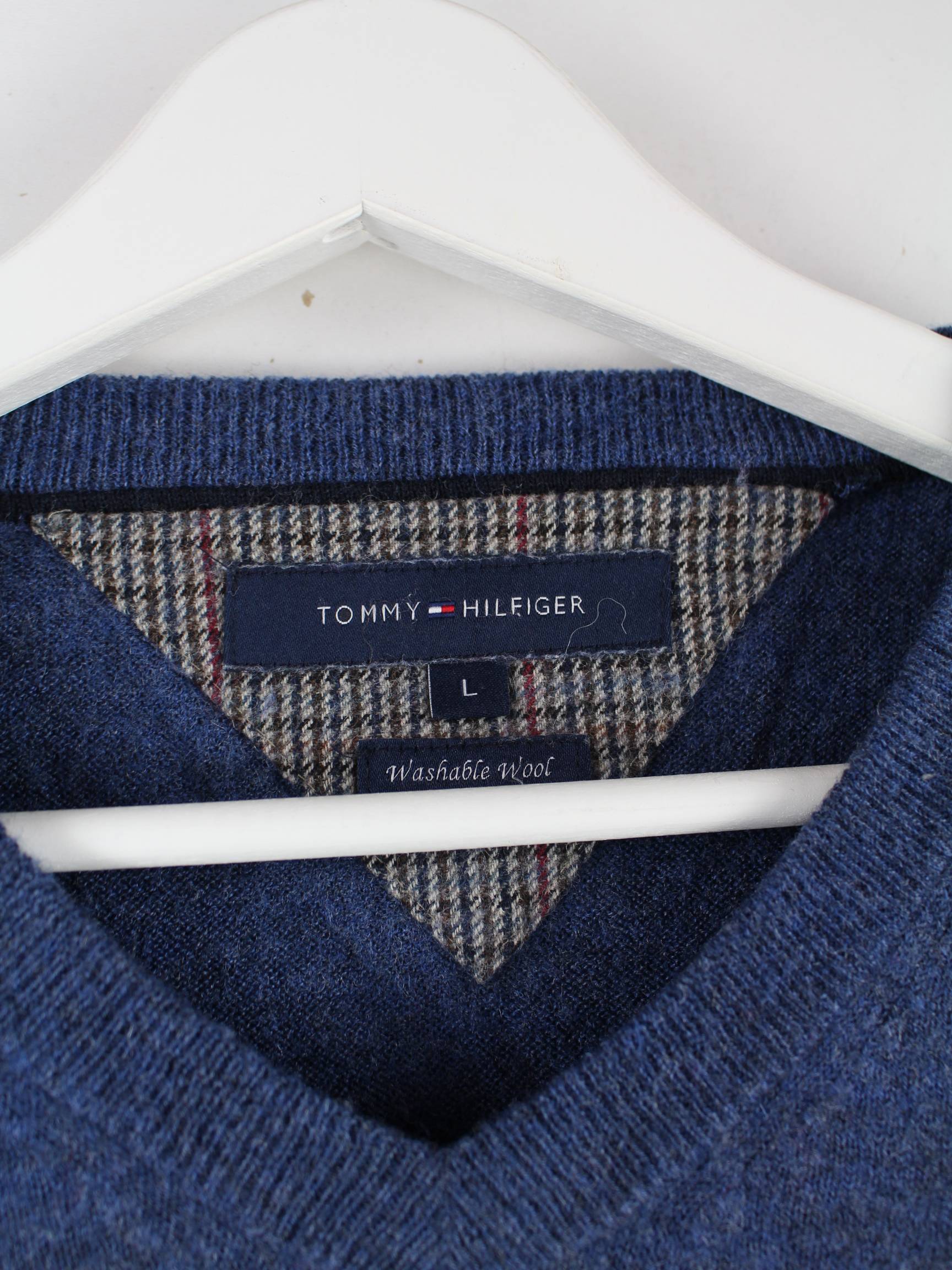 Tommy Hilfiger V-Neck 100% Wolle Pullover Blau L