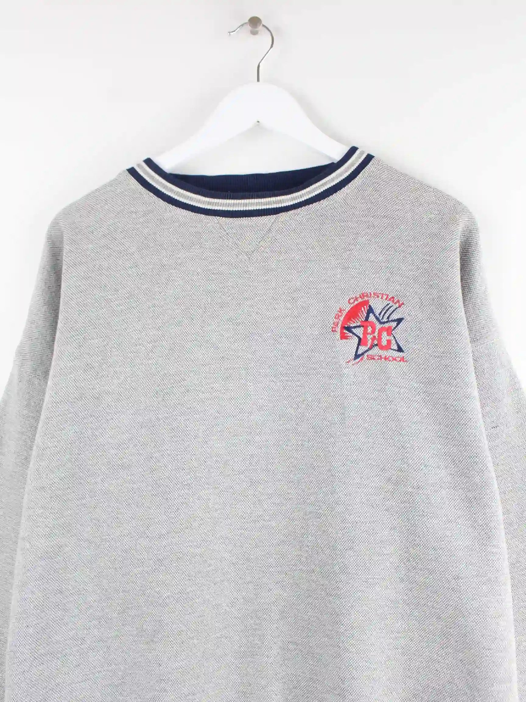 Vintage Sweater in Größe XL. Er ist aus einer Baumwollmischung produziert und in Grau vorrätig.