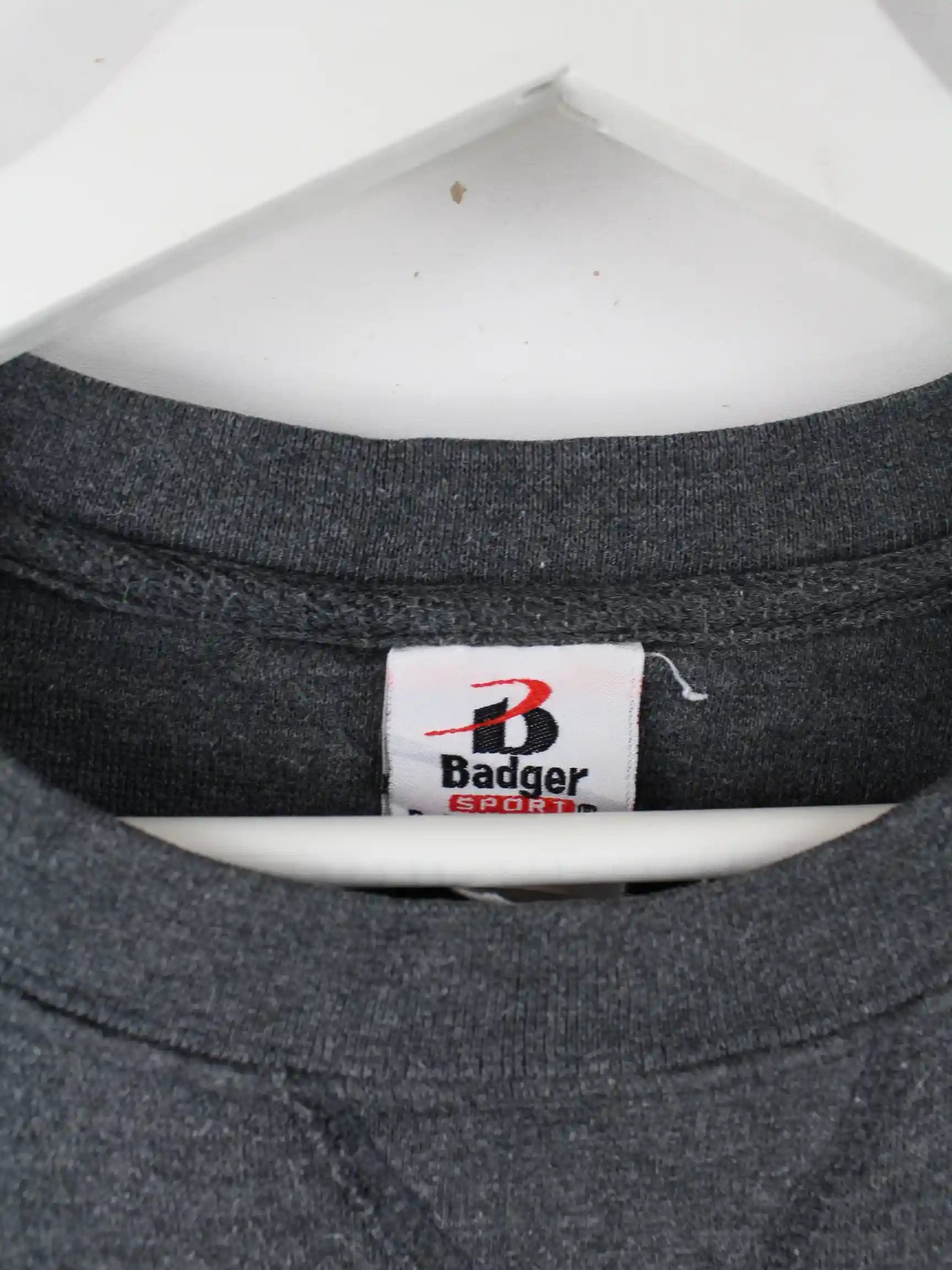 Vintage Sweater in Größe L. Er ist aus einer Baumwollmischung gefertigt und in Grau bei uns vorrätig. Mit schickem Cougars Print.