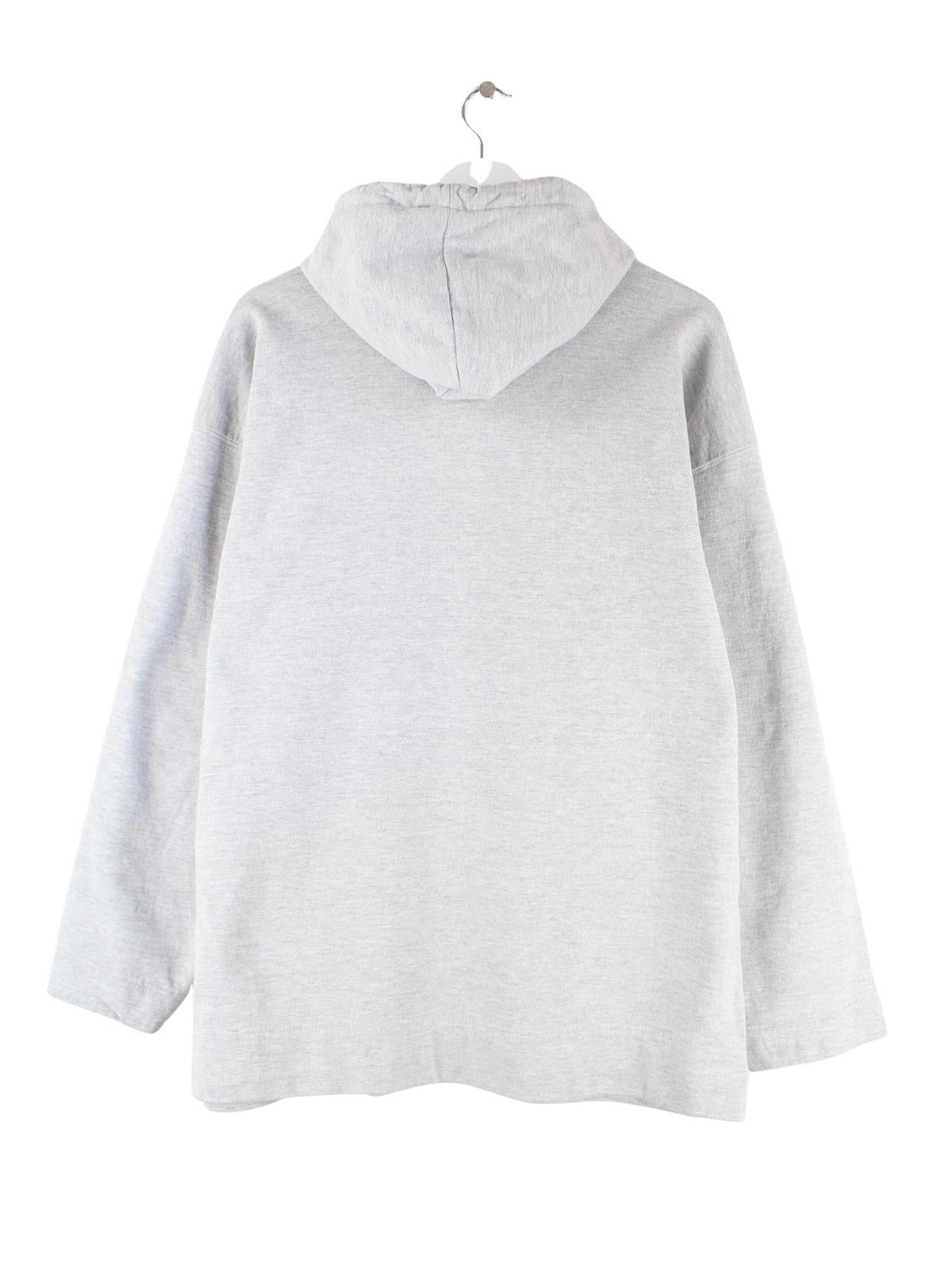 Grauer Vintage Hoodie mit Stick in Größe L. Er ist aus einer Baumwollmischung und in sehr gutem Zustand im Bestand.