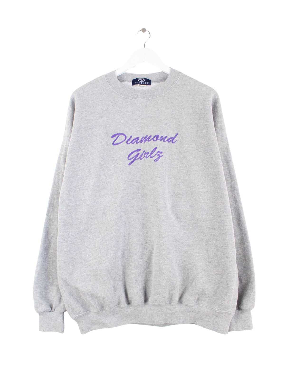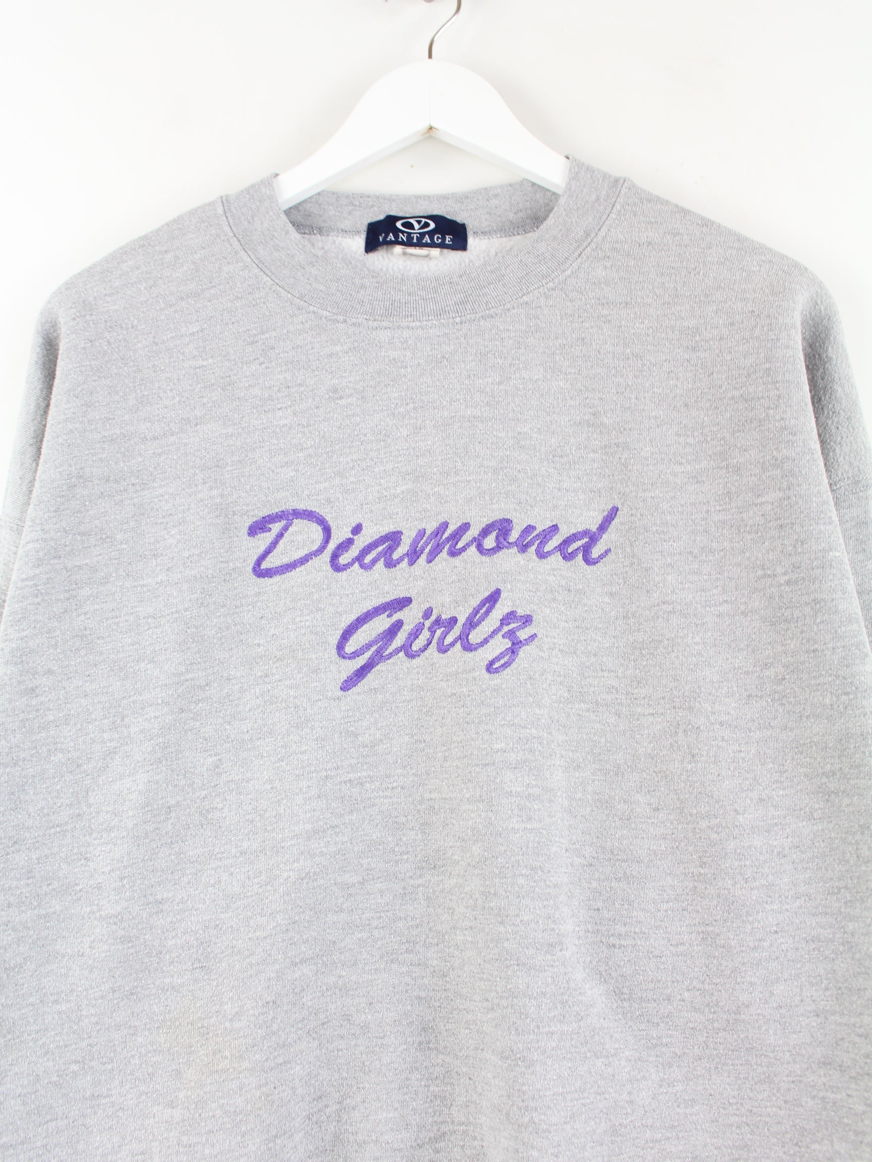 Vintage 00s Diamond Girls Embroidered Sweater Grau L