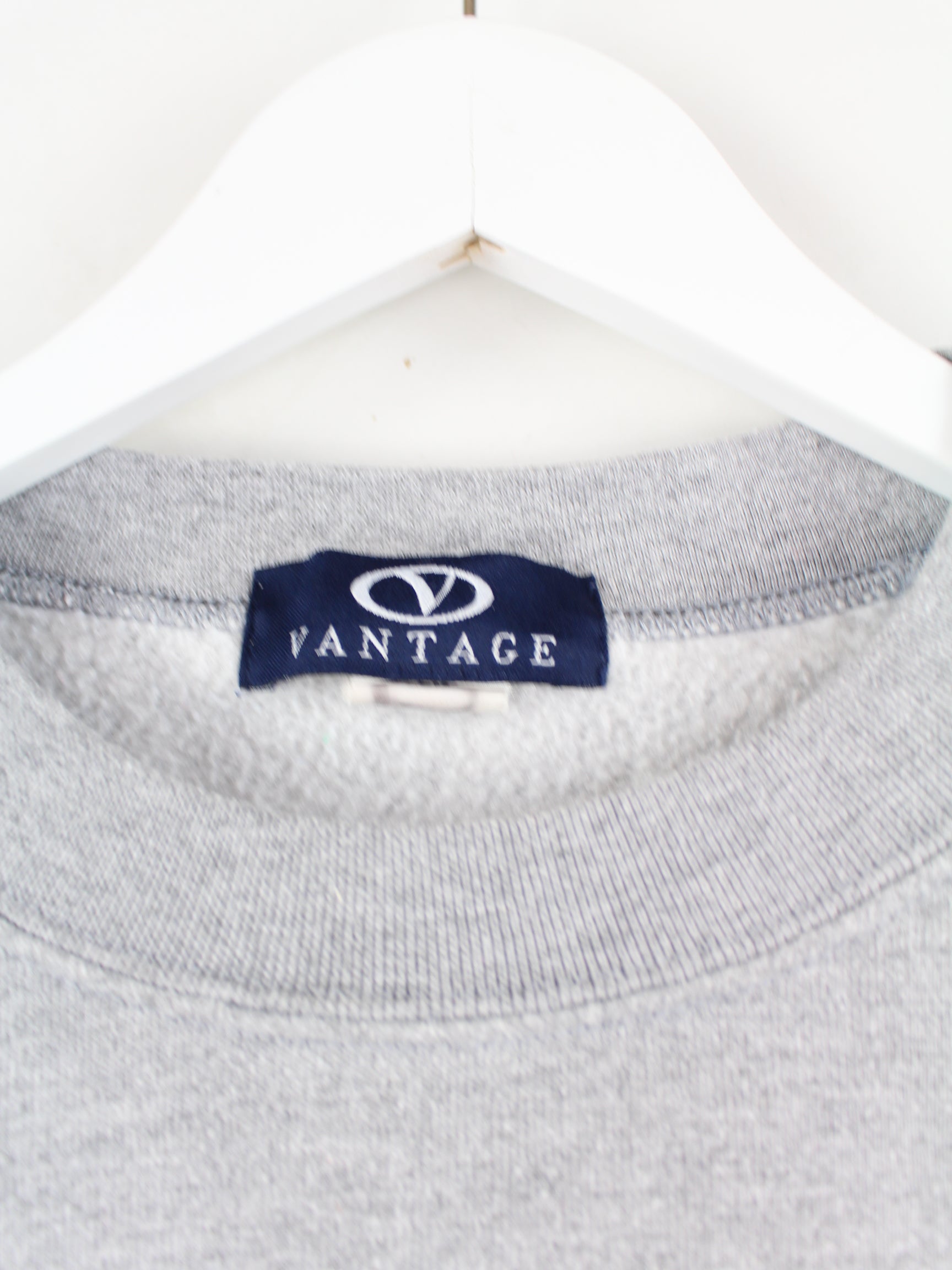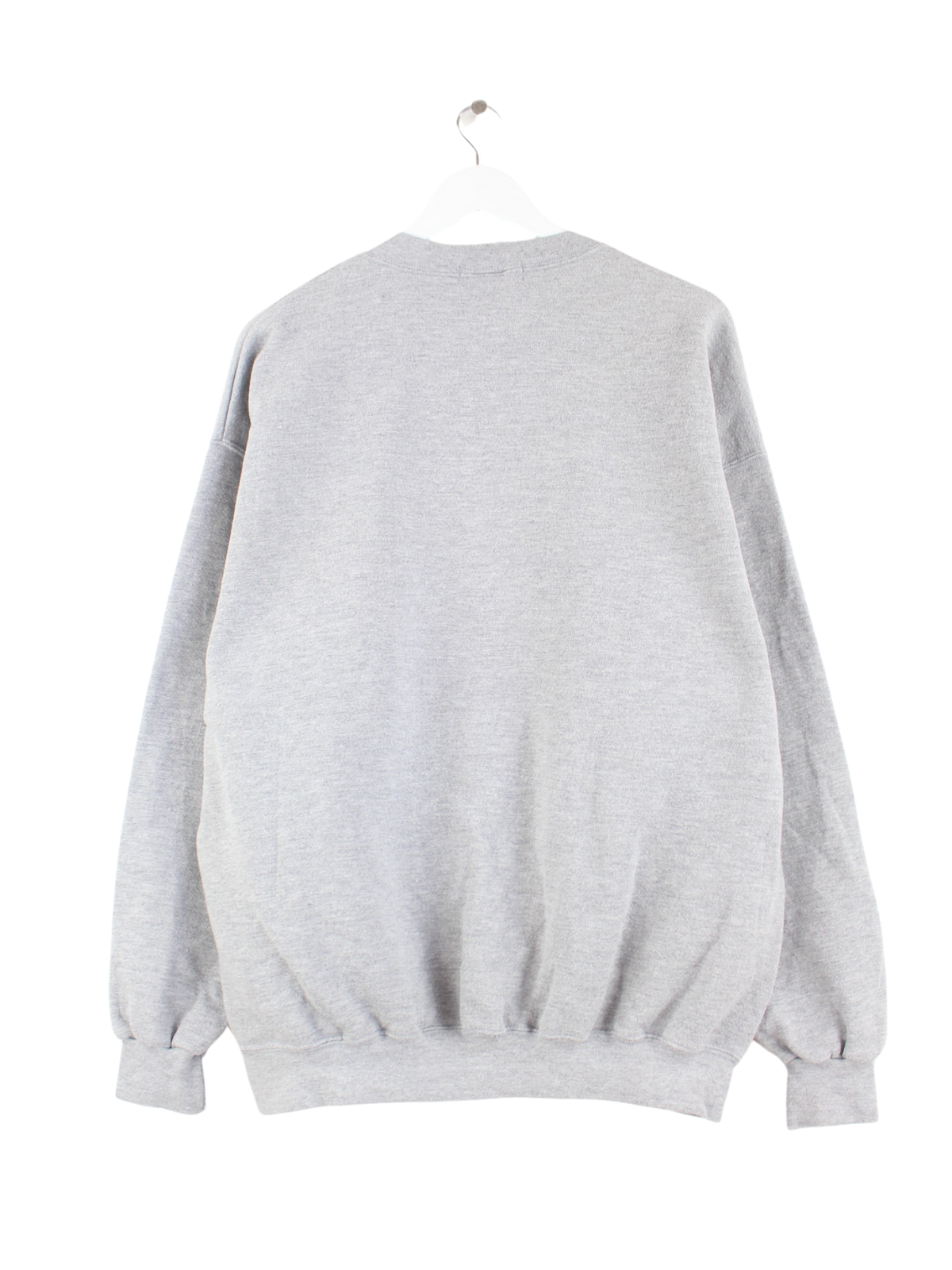 Vintage Sweater mit Stickereien in Größe L. Er ist aus einer Baumwollmischung produziert und in Grau zu bekommen.