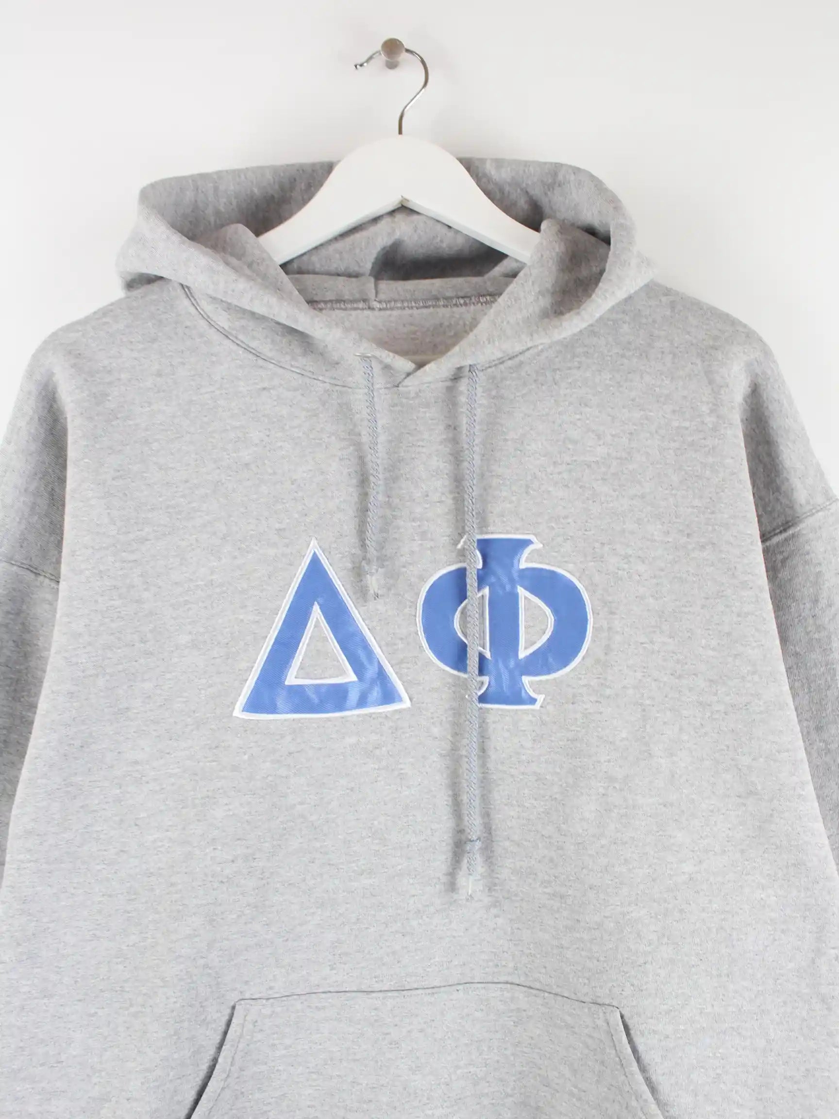 Vintage Hoodie in Größe L. Er ist aus einer Baumwollmischung gefertigt und in Grau zu bekommen.