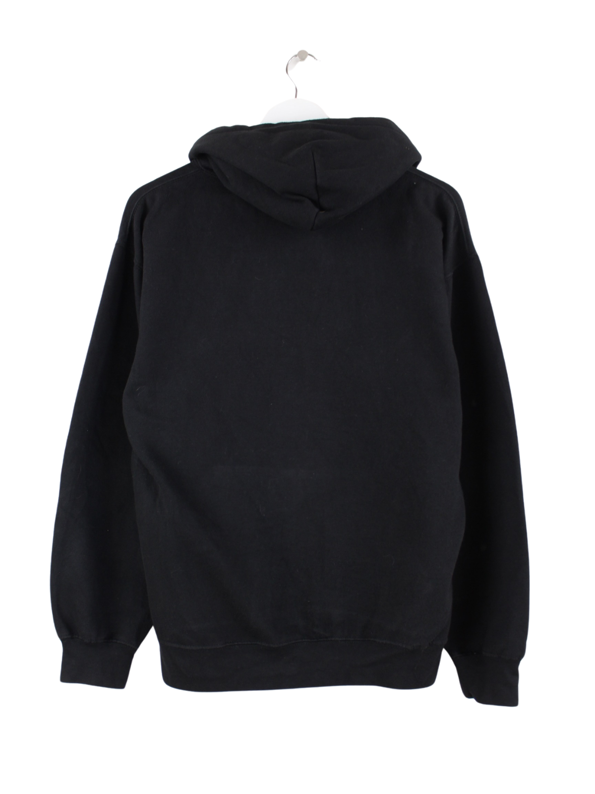 Vintage Hoodie mit gestickten Motiven in Größe S. Er ist aus einer Baumwollmischung gefertigt und in Schwarz bei uns vorrätig.