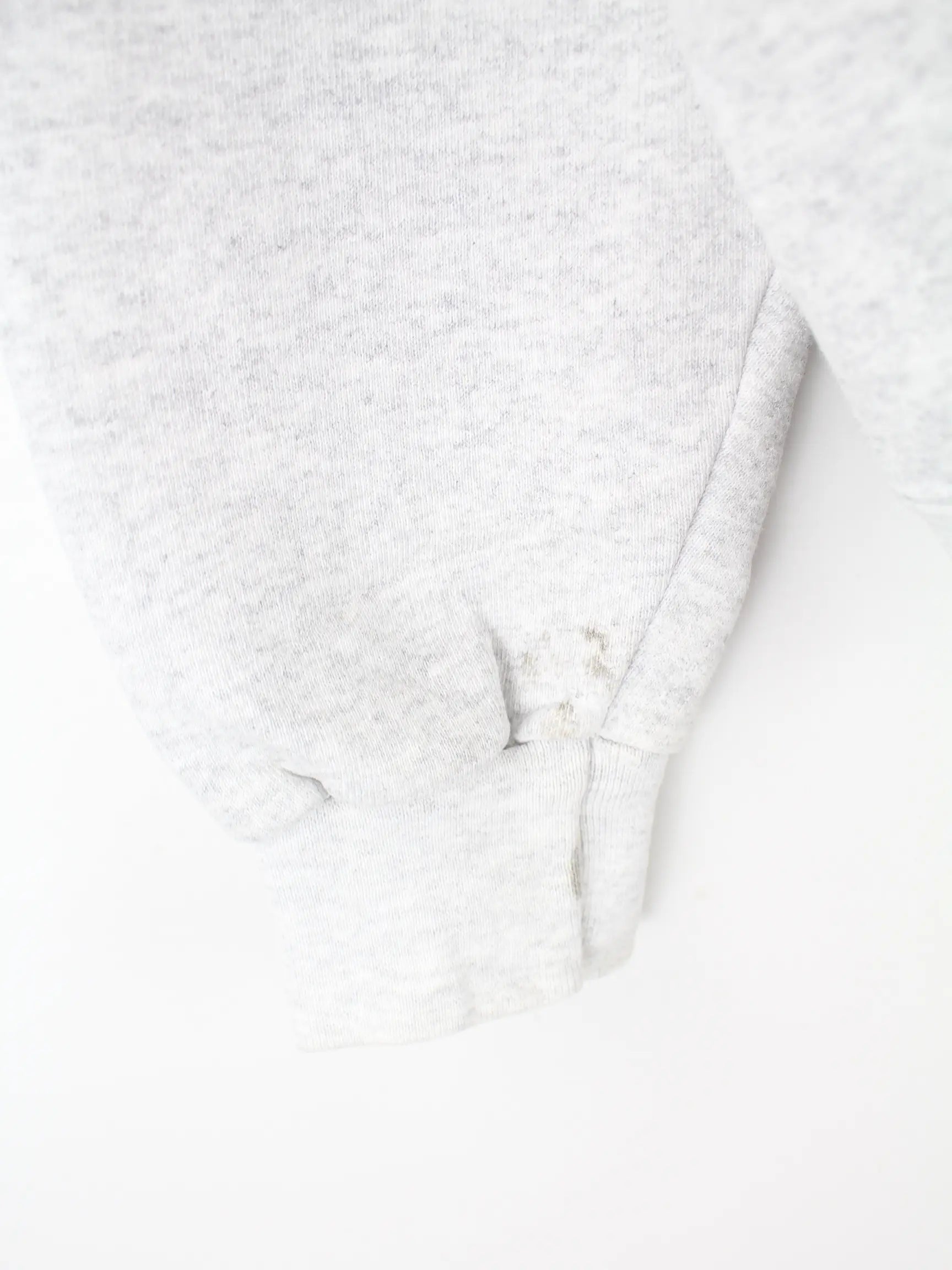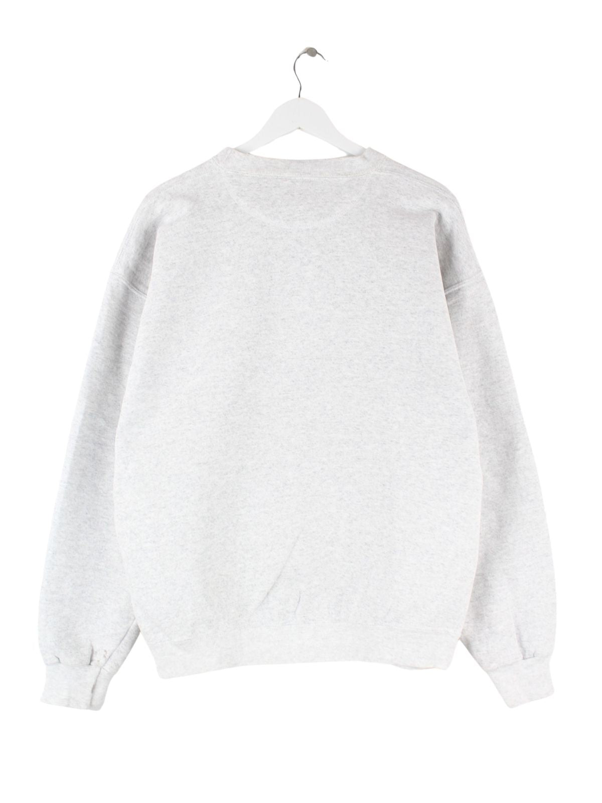 Vintage Sweater in Größe L. Er ist aus einer Baumwollmischung gemacht und in Grau lieferbar. Mit schickem Huskers Print.