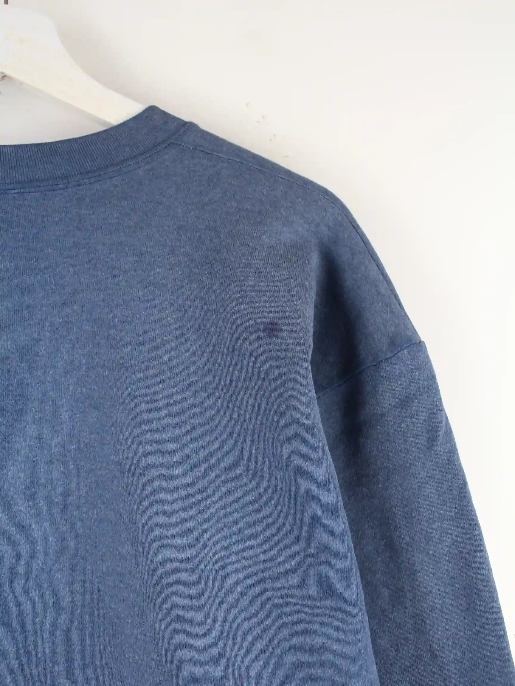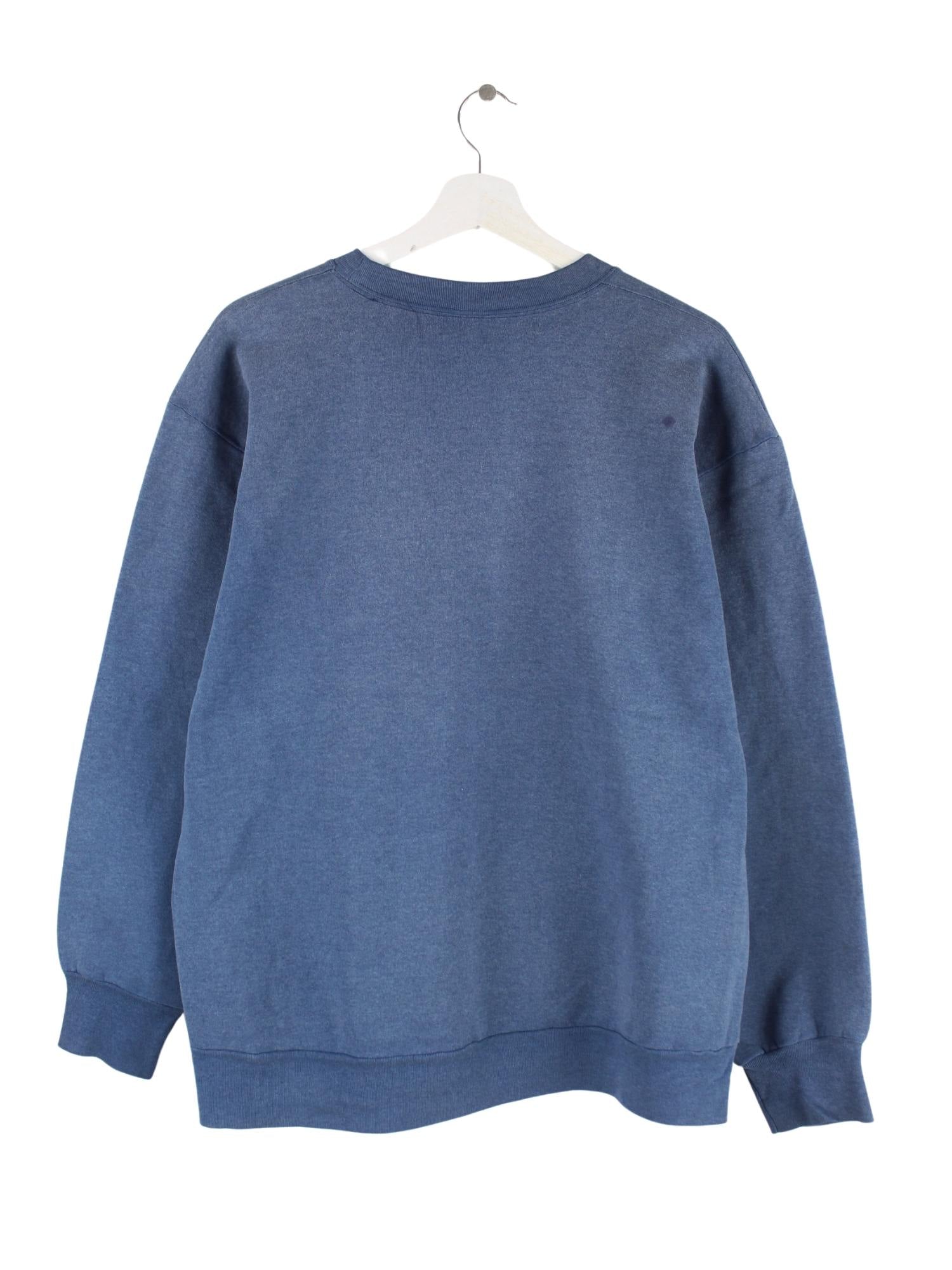 Blauer Vintage Sweater in Größe M. Er ist aus einer Baumwollmischung gefertigt und in gutem Zustand zu haben. Mit tollem Dame Print.