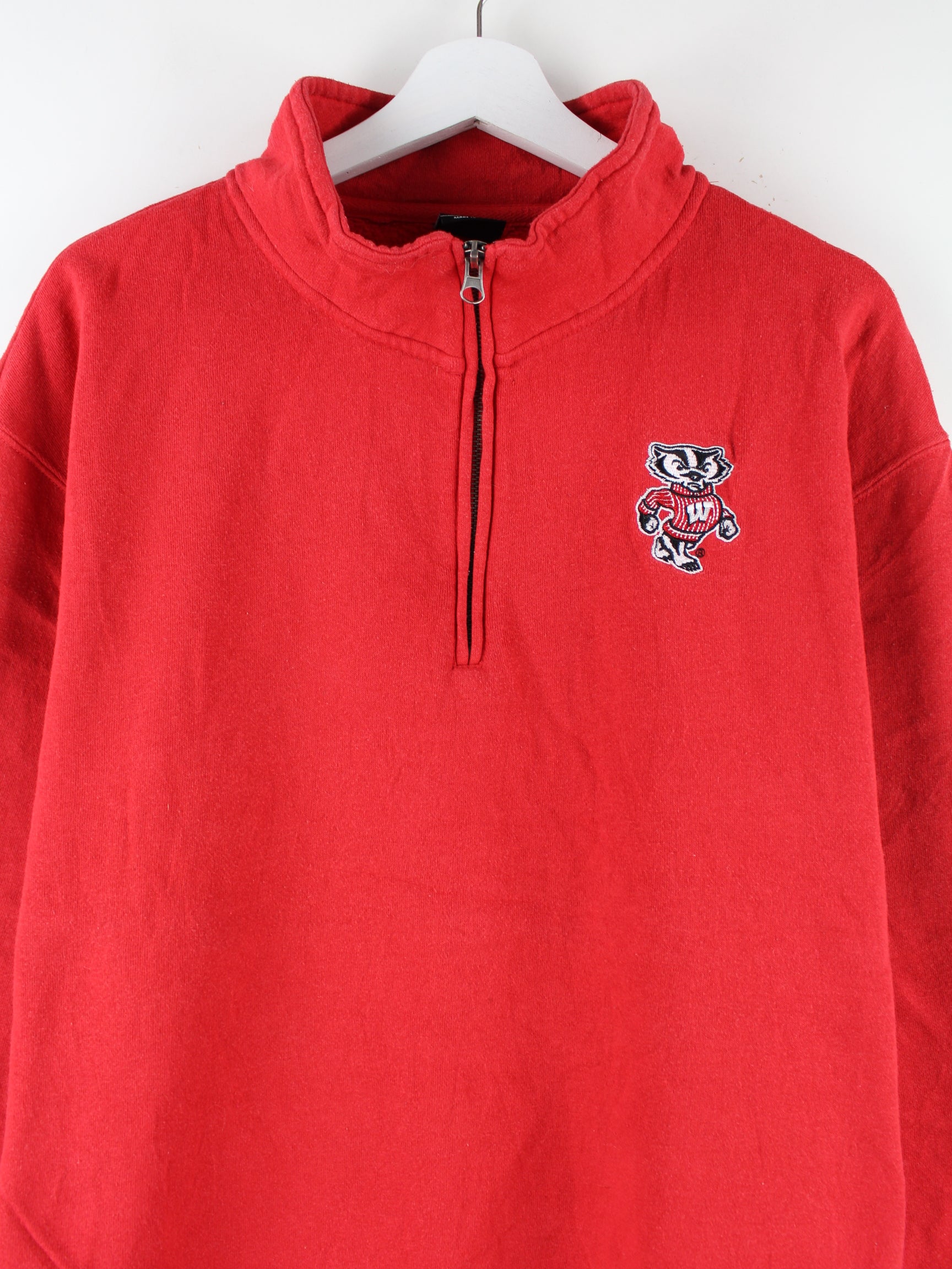 Vintage 00s Wisconsin Badgers Embroidered Half Zip Sweater Rot XL
