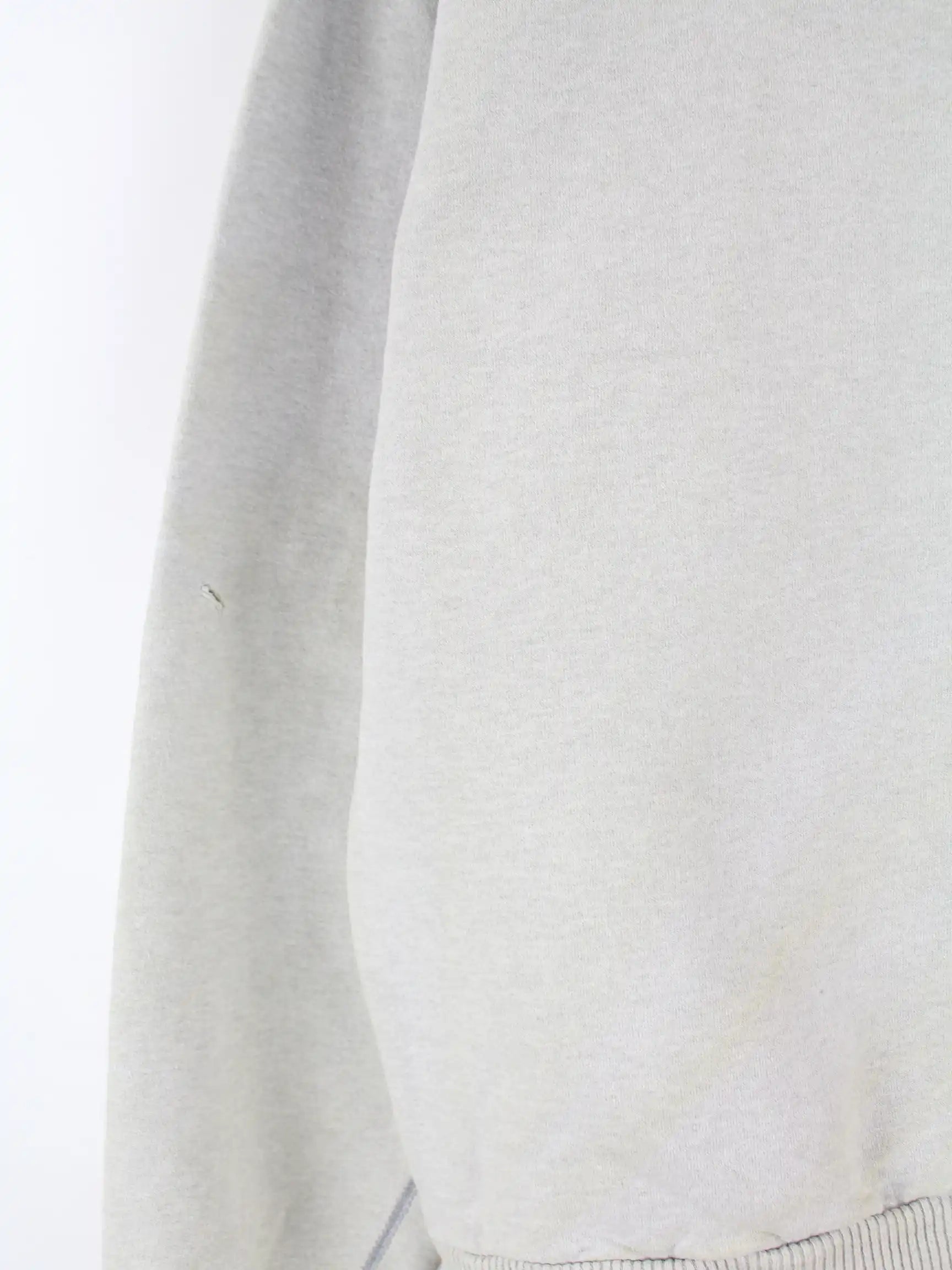 Vintage Sweater in Größe M. Er ist aus einer Baumwollmischung gefertigt und in Grau lieferbar.