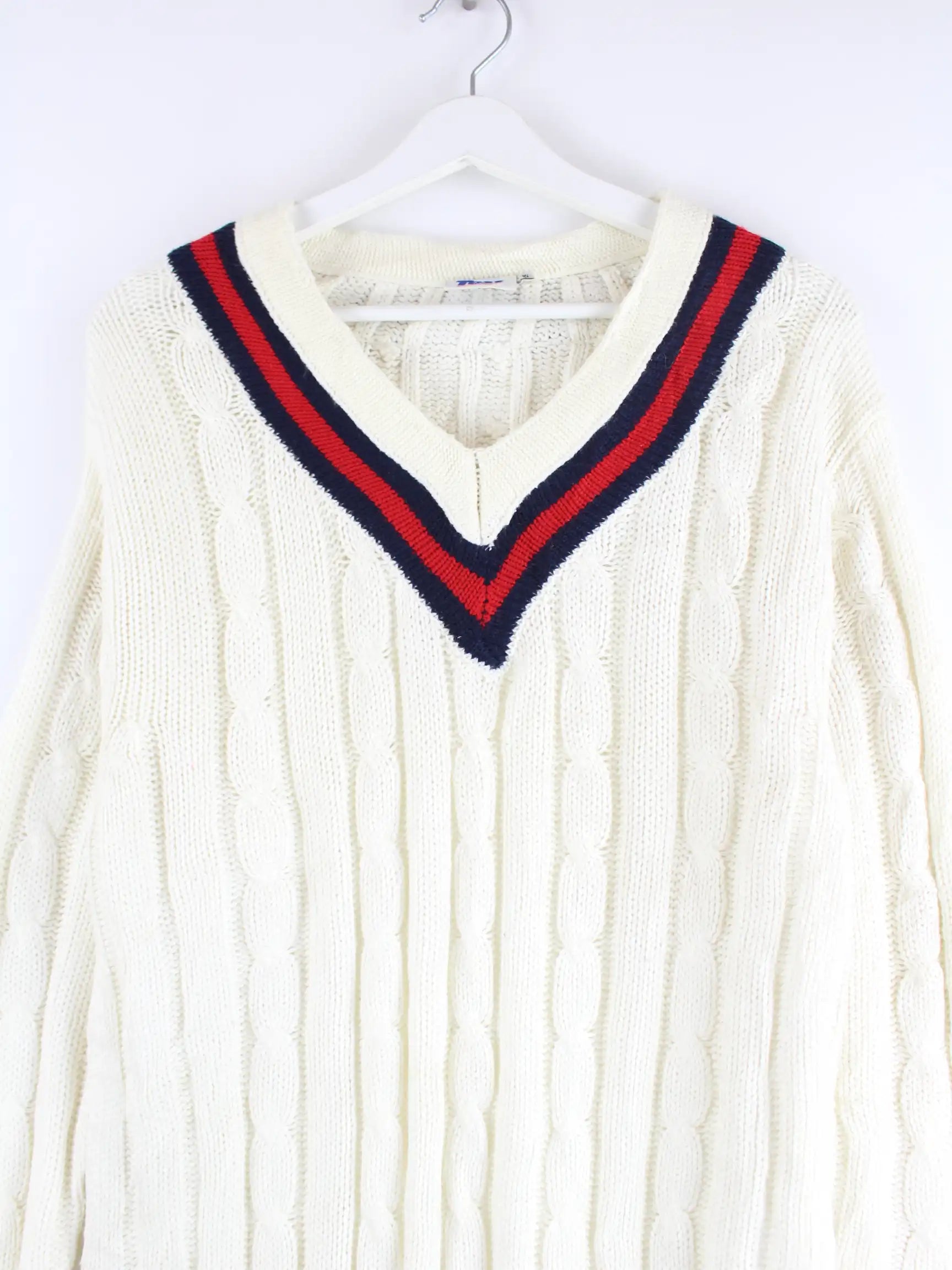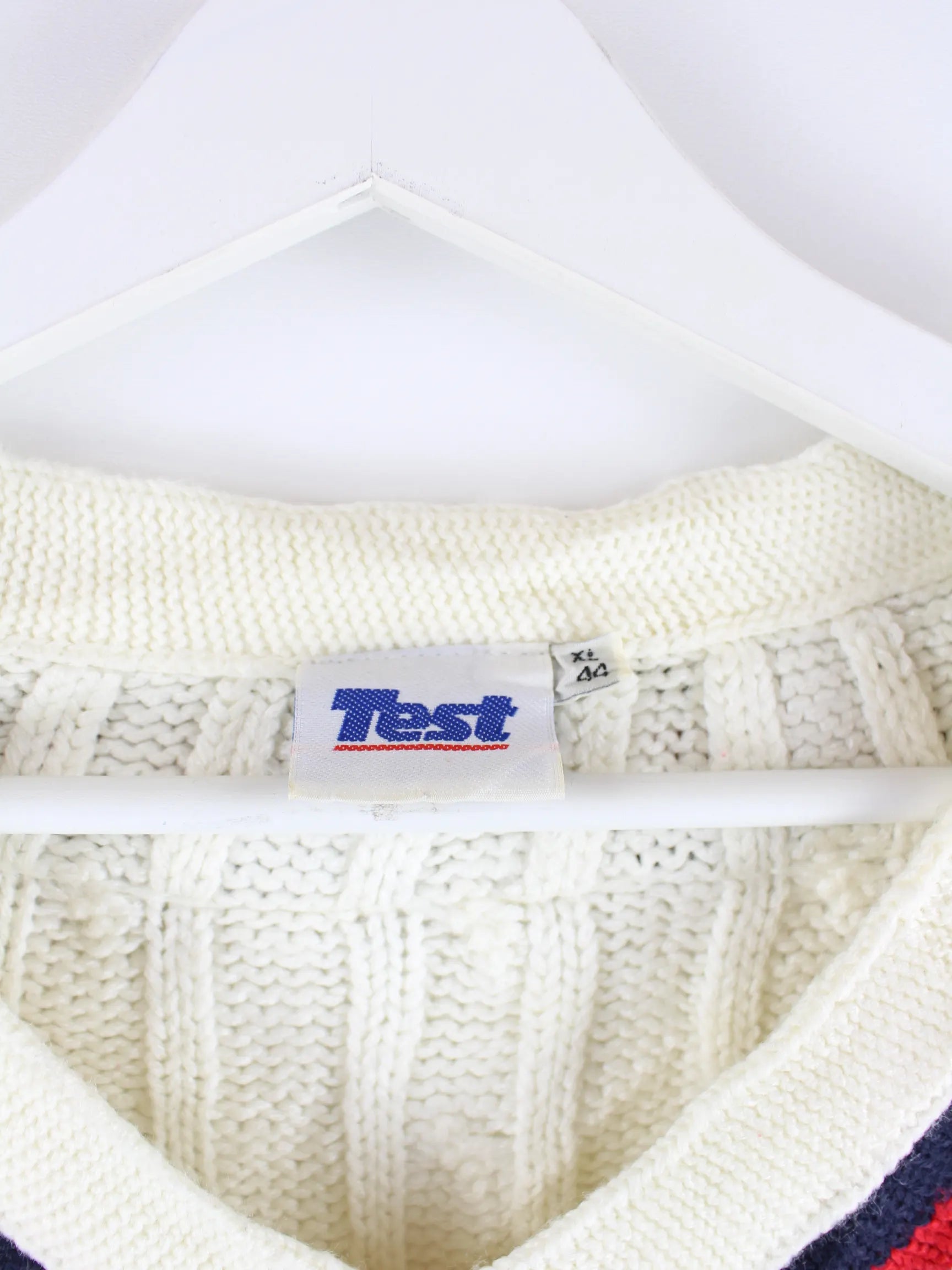 Vintage Pullover in Größe XL aus den 70'ern. Er ist aus Synthetik hergestellt und in Beige zu haben.