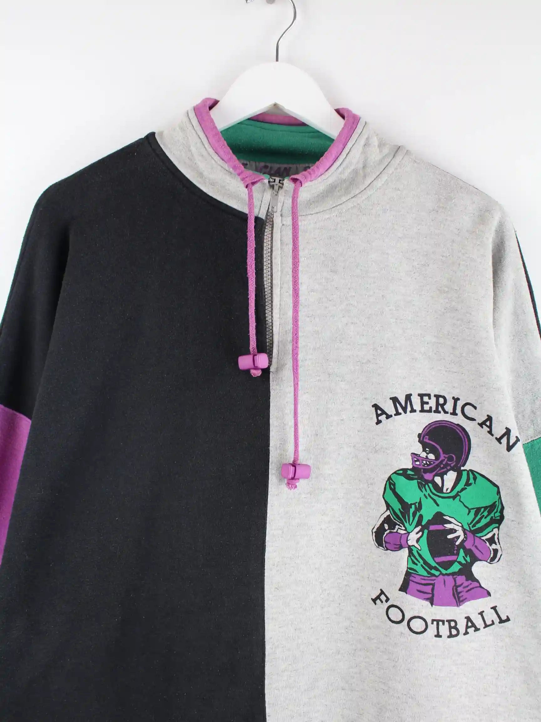 Vintage 80s American Football Print Half Zip Sweater Mehrfarbig XXL