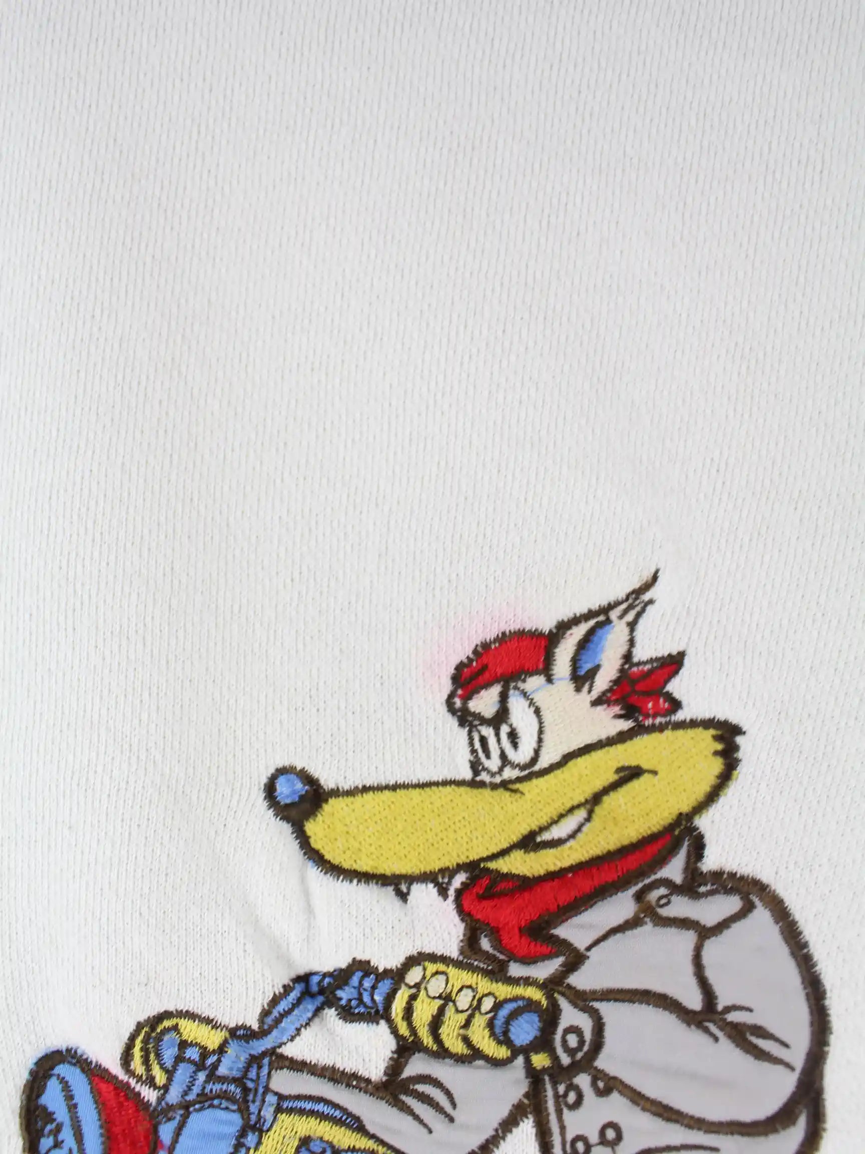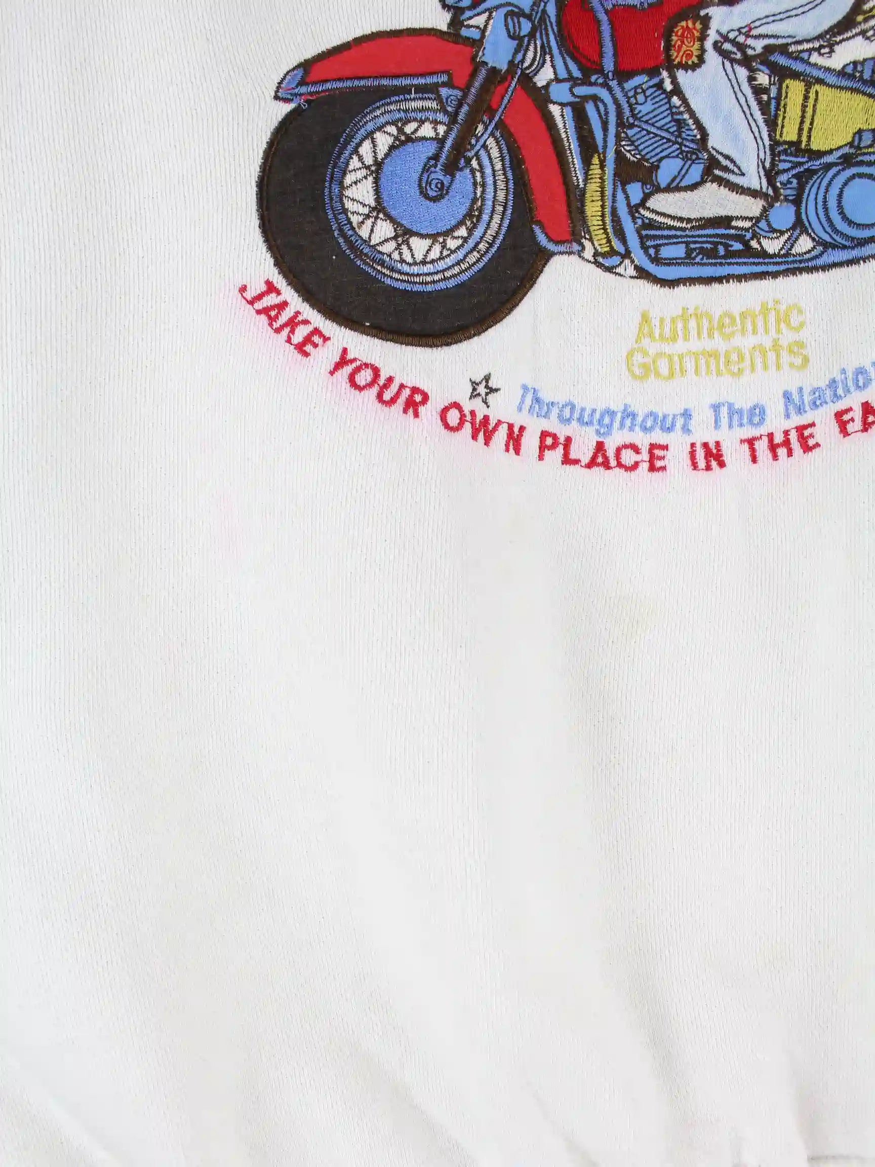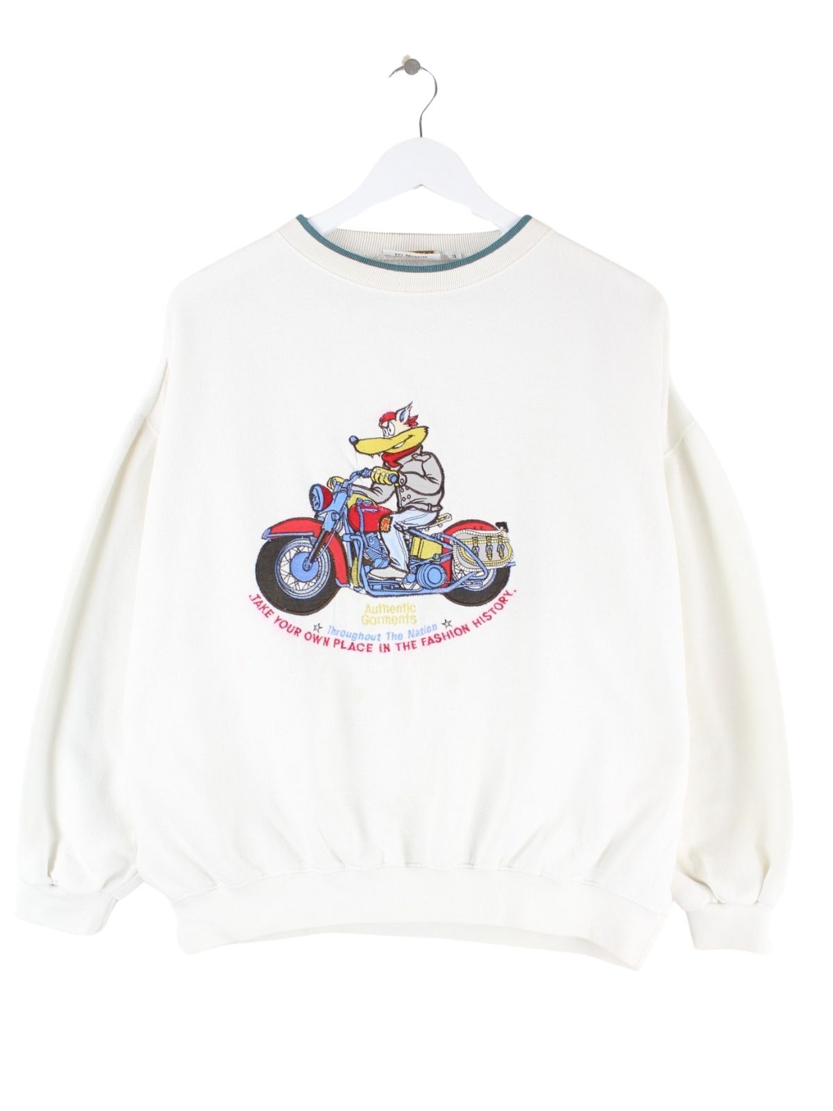 Vintage 80s Biker Embroidered Sweater Weiß XS