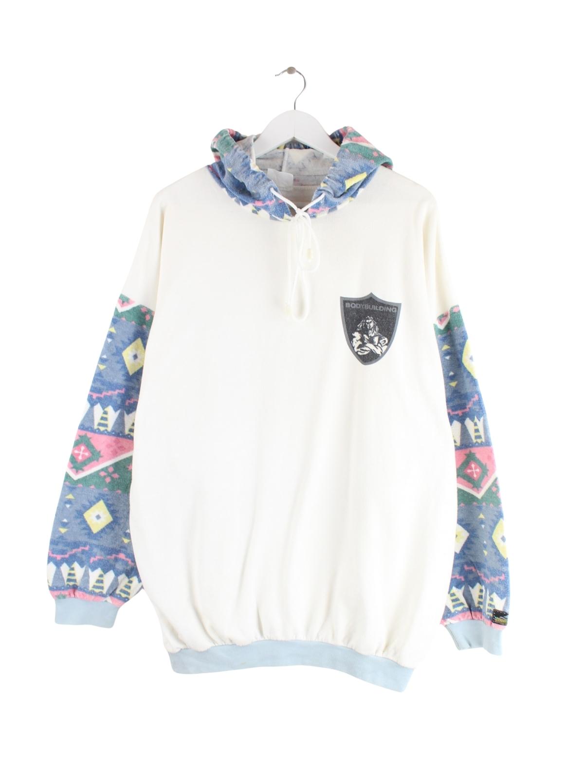 Weißer Vintage Hoodie aus den 80'ern in Größe XXL. Er ist aus einer Baumwollmischung angefertigt. Den Zustand würden wir als 'In Ordnung' bezeichnen (vergl. Bilder).