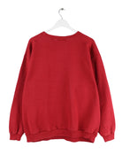 Roter Vintage Sweater mit Stickereien aus den 90'ern in Größe L. Er ist aus einer Baumwollmischung gefertigt und in gutem Zustand auf Lager.