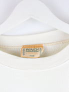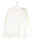 Weißer Vintage Sweater aus den 90'ern in Größe L. Er ist aus einer Baumwollmischung und in gutem Zustand im Bestand. Mit chiquem Contest Print.