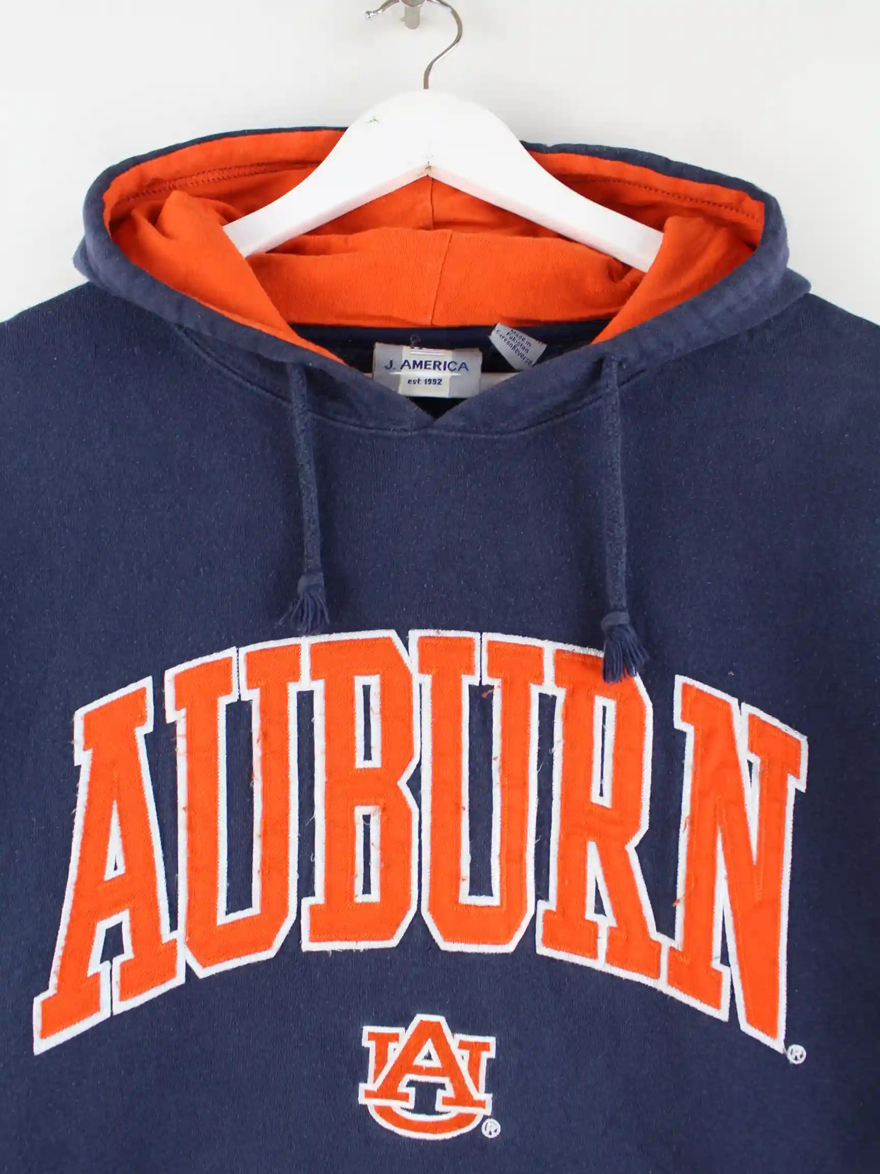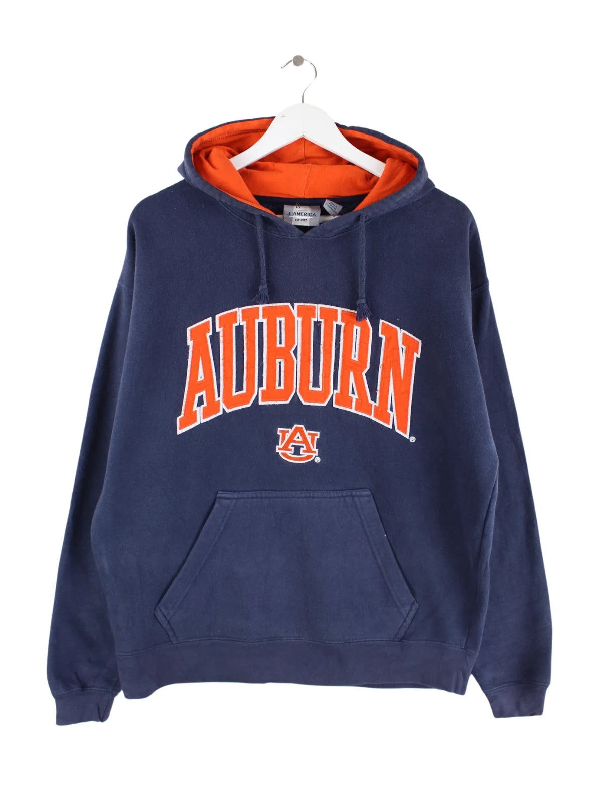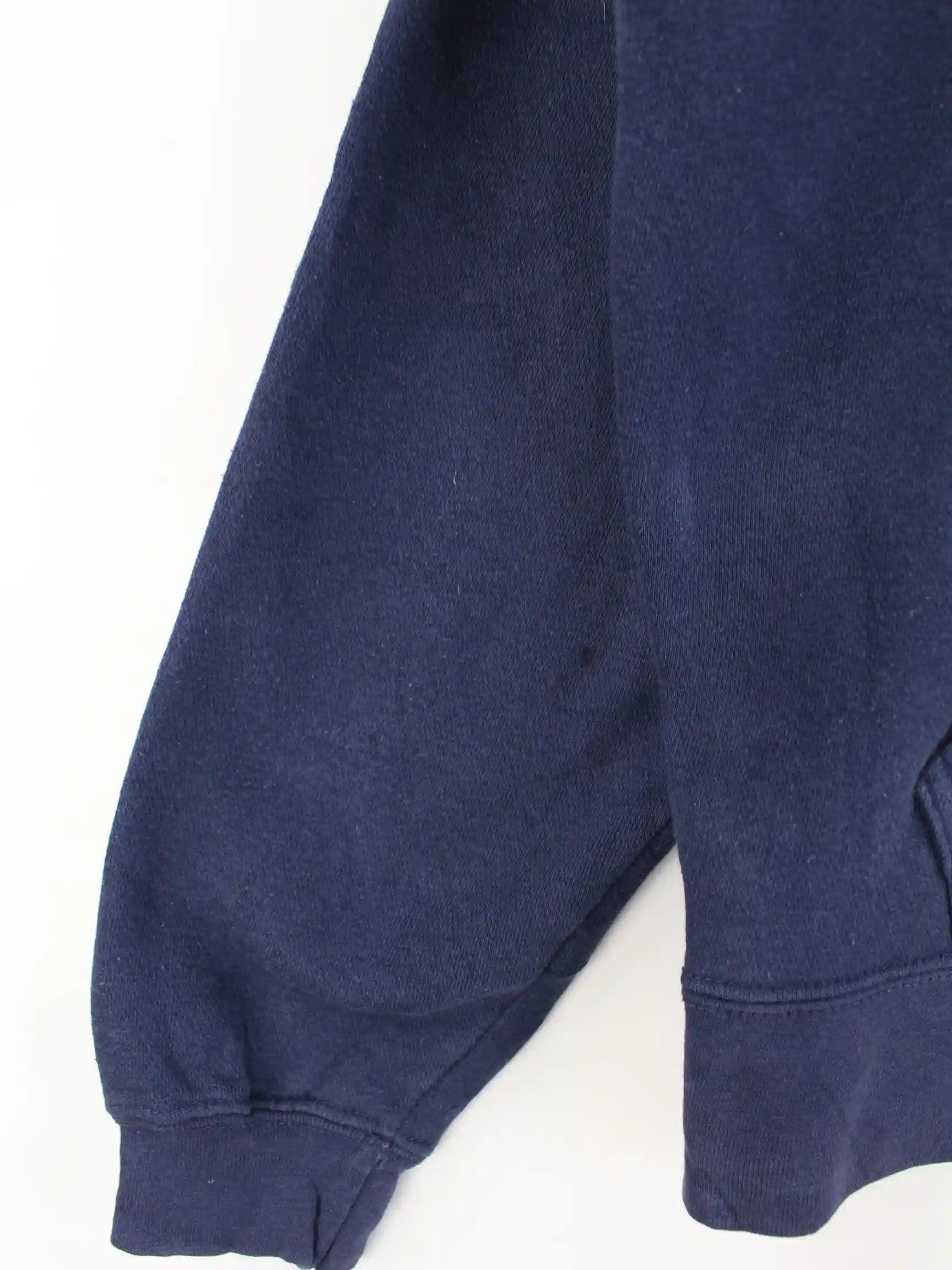 Blauer Vintage Hoodie aus den 90'ern in Größe M. Er ist aus einer Baumwollmischung produziert und in gutem Zustand auf Lager.
