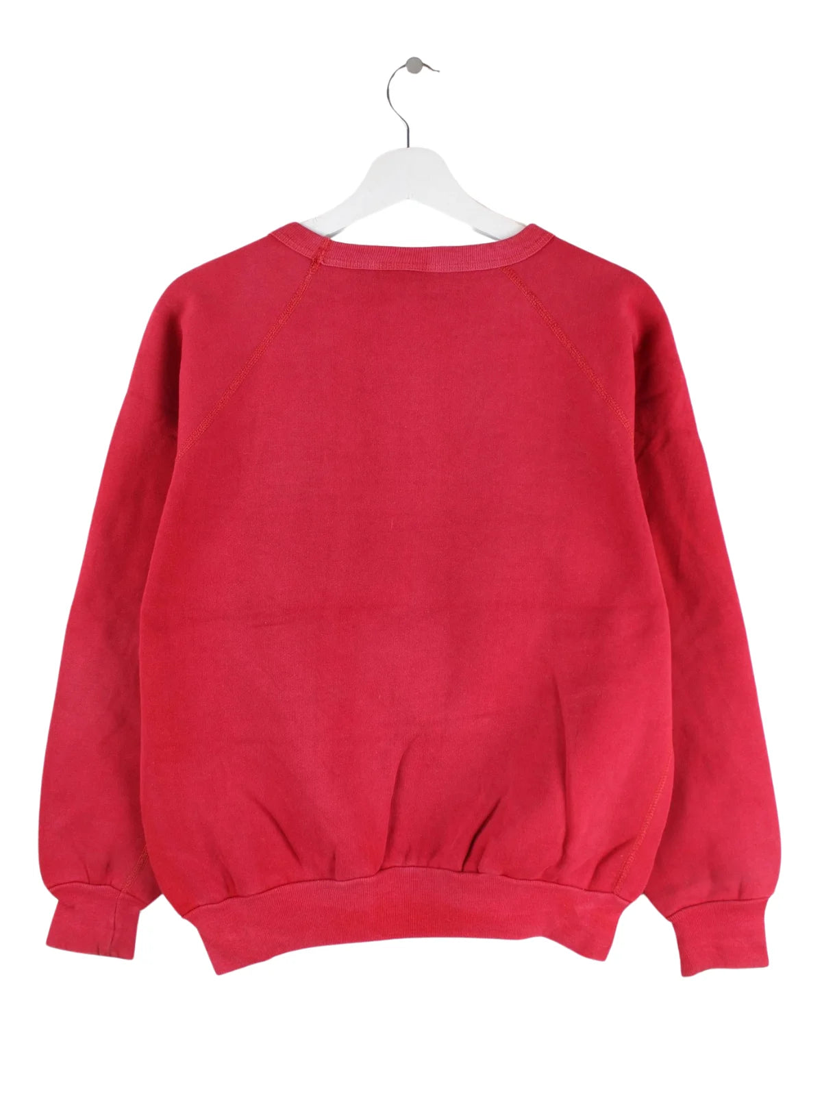Roter Vintage Sweater aus den 90'ern in Größe XS. Er ist aus einer Baumwollmischung und in gutem Zustand auf Lager. Mit seltenem Canoe Print.