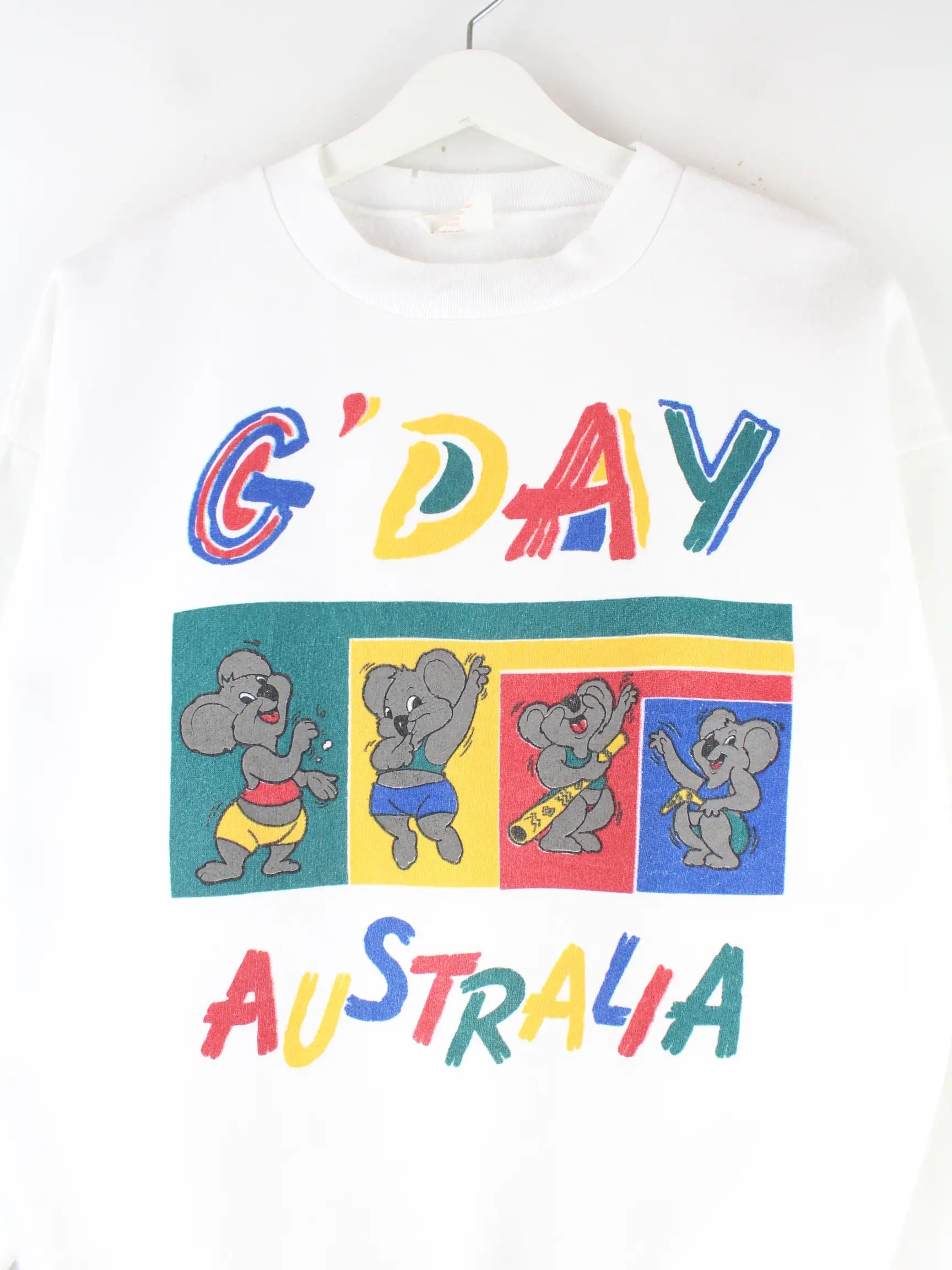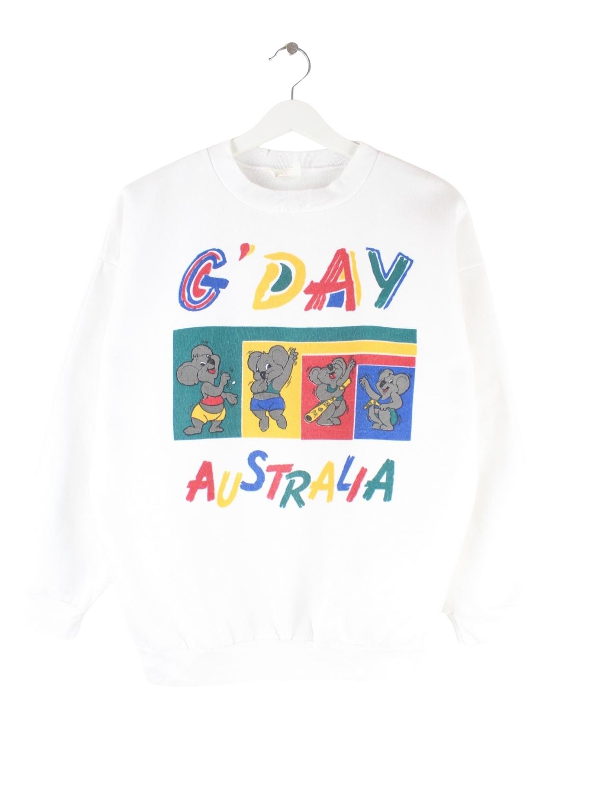 Vintage 90s G'Day Australia Print Sweater Weiß S