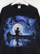 Schwarzer Vintage Sweater aus den 90'ern in Größe XXL. Er ist aus einer Baumwollmischung hergestellt und in sehr gutem Zustand zu bekommen. Mit tollem Lake Print.