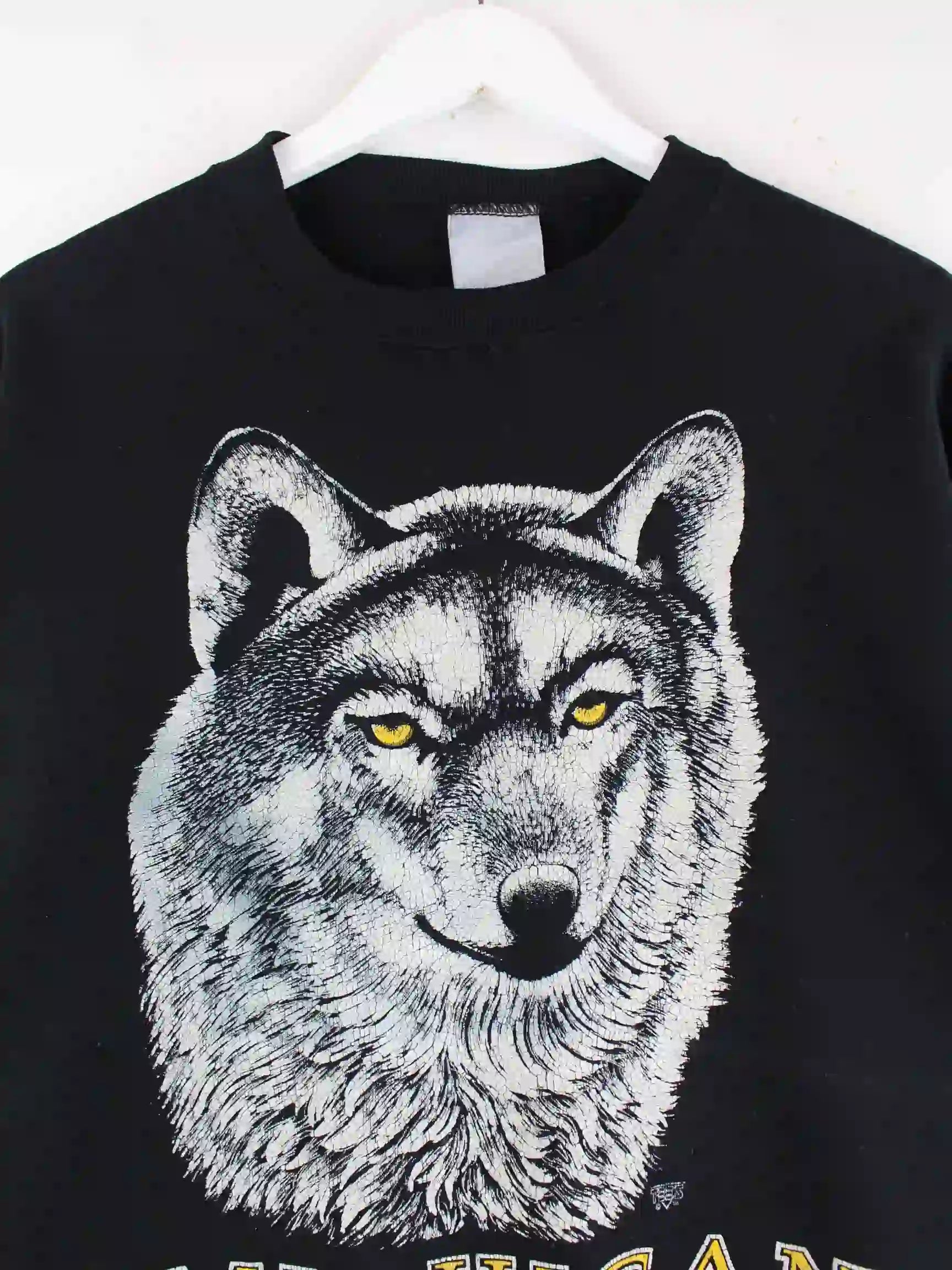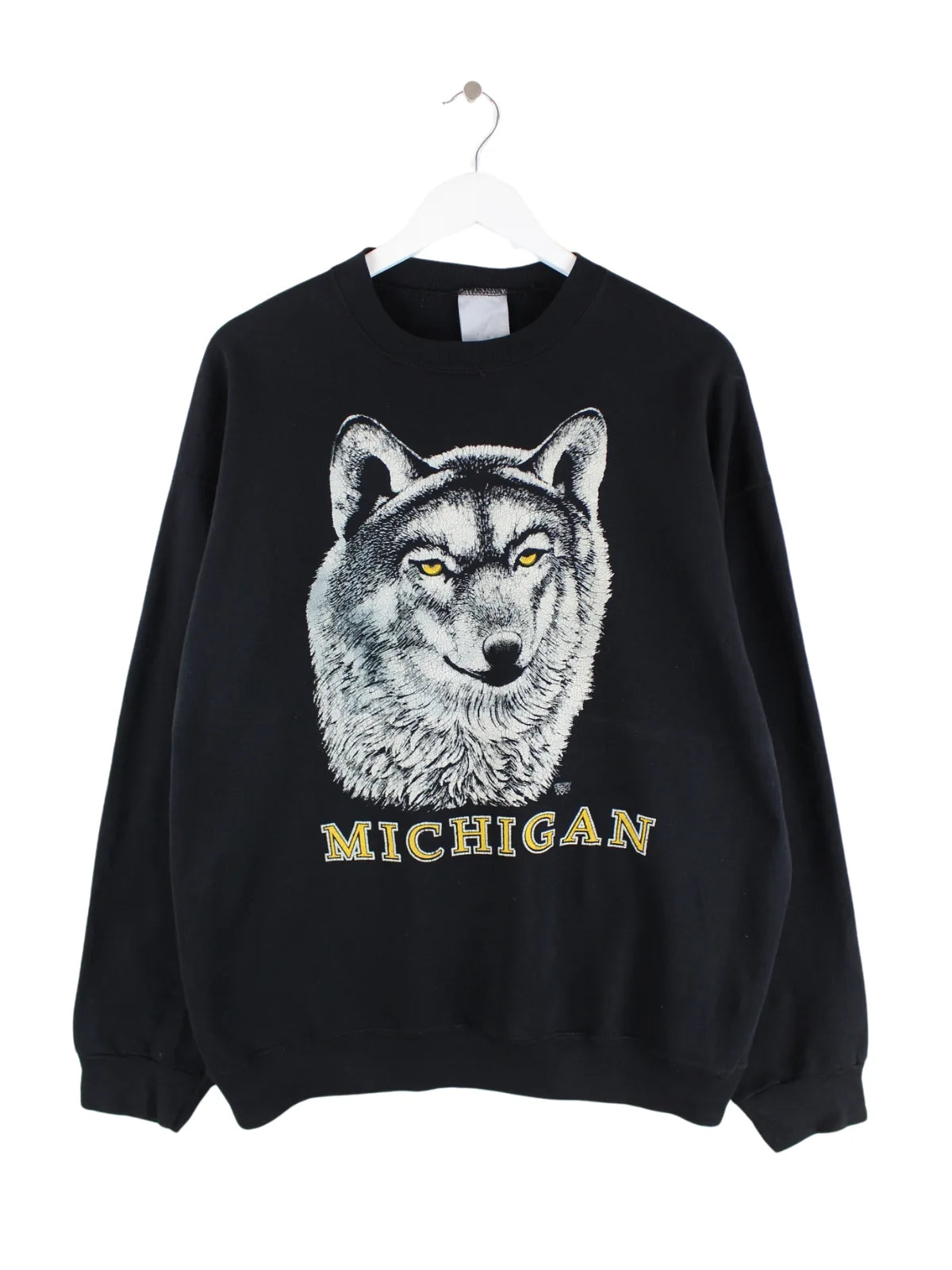 Vintage 90s Michigan Wolf Print Sweater Schwarz XL