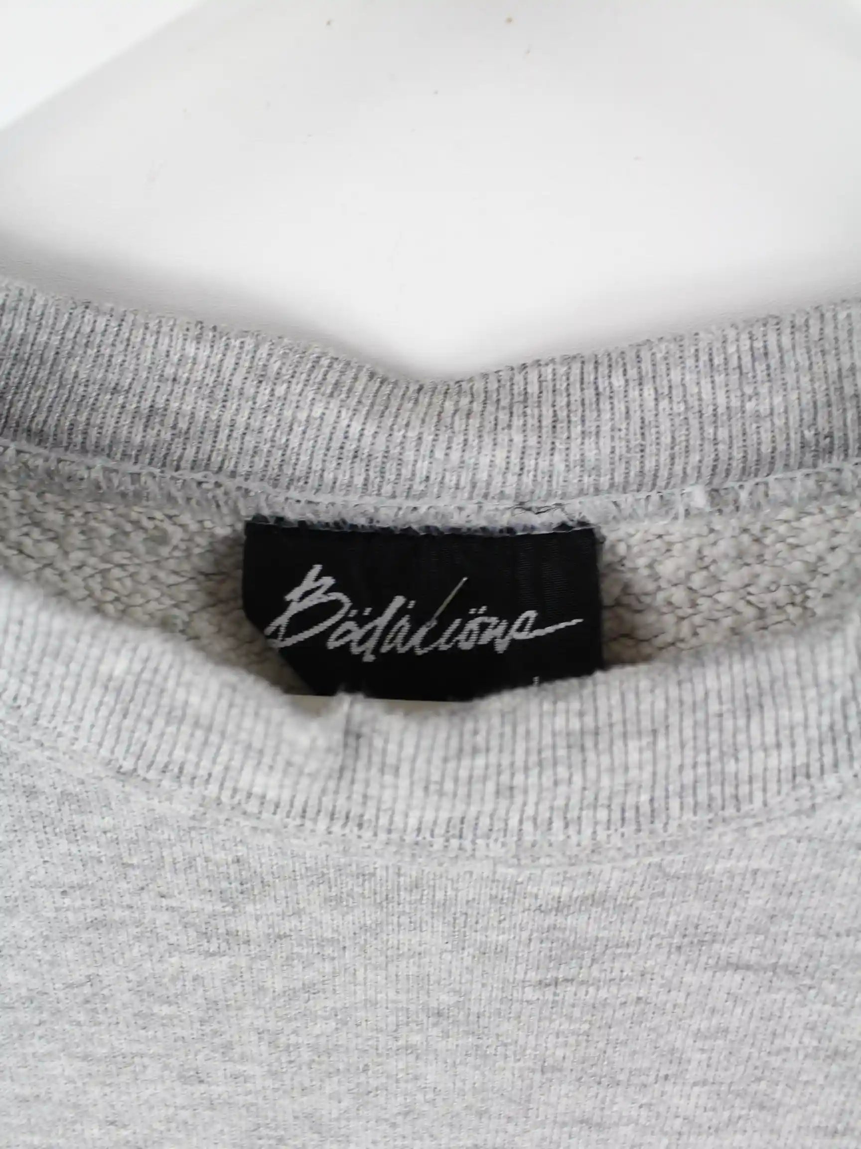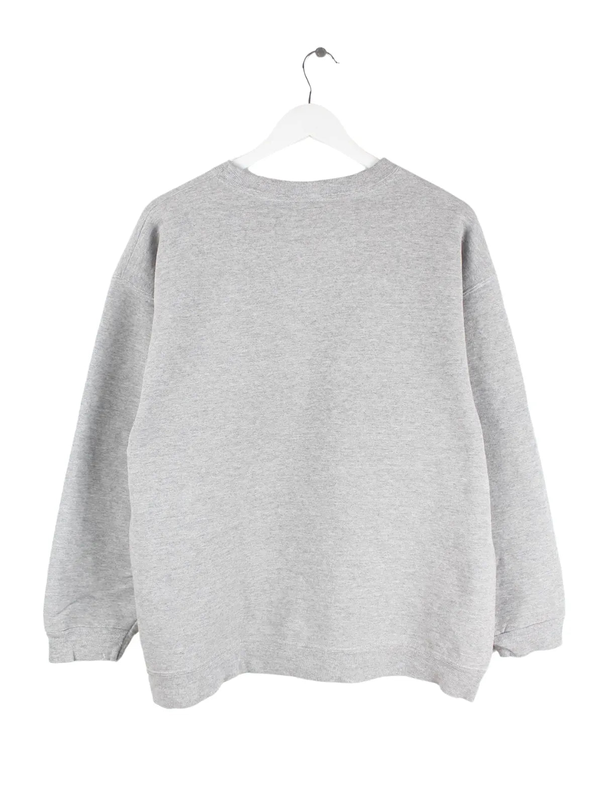 Vintage Sweater mit Stickereien in Größe L aus den 90'ern. Er ist aus einer Baumwollmischung produziert und in Grau bei uns zu bekommen.