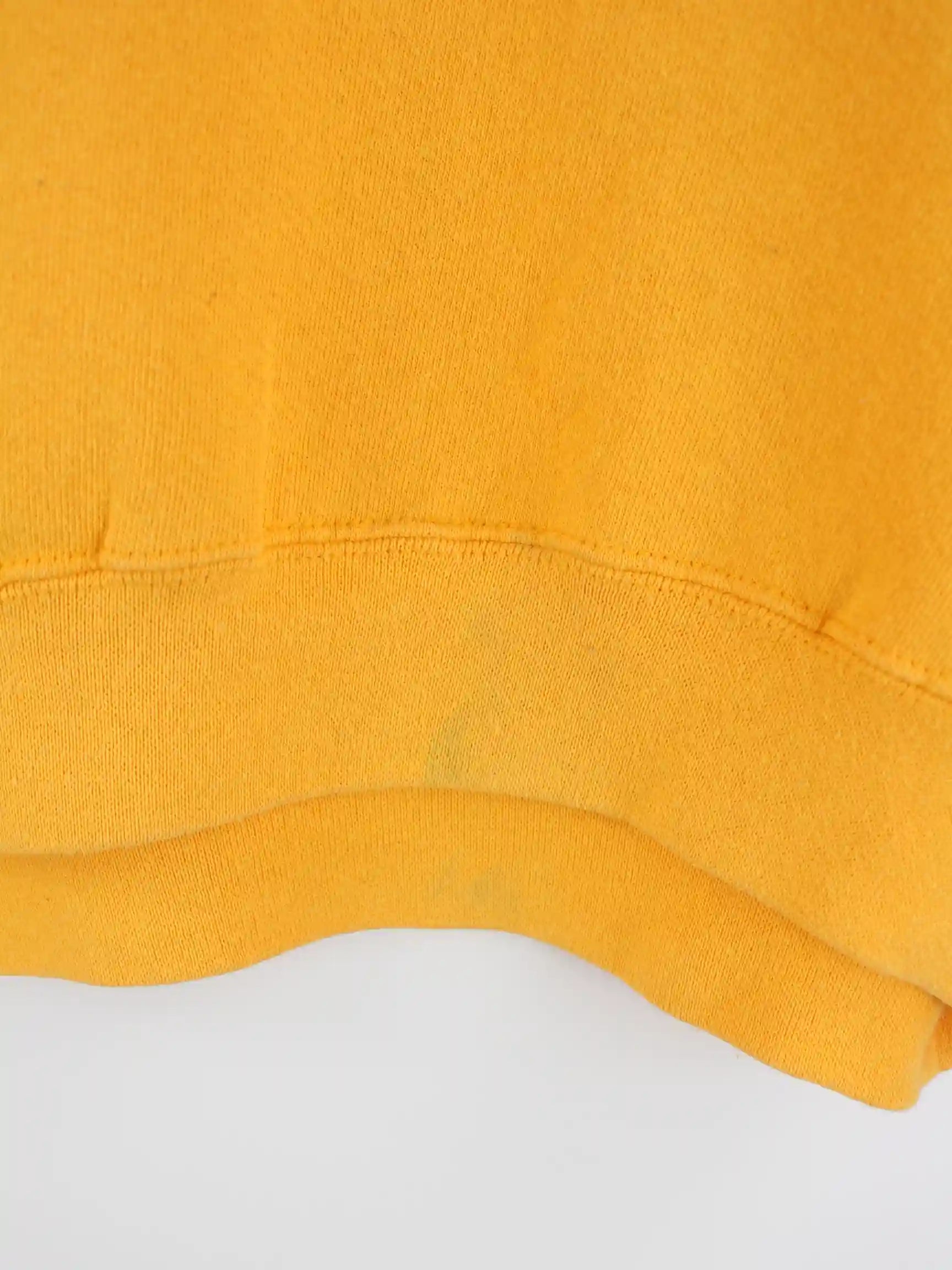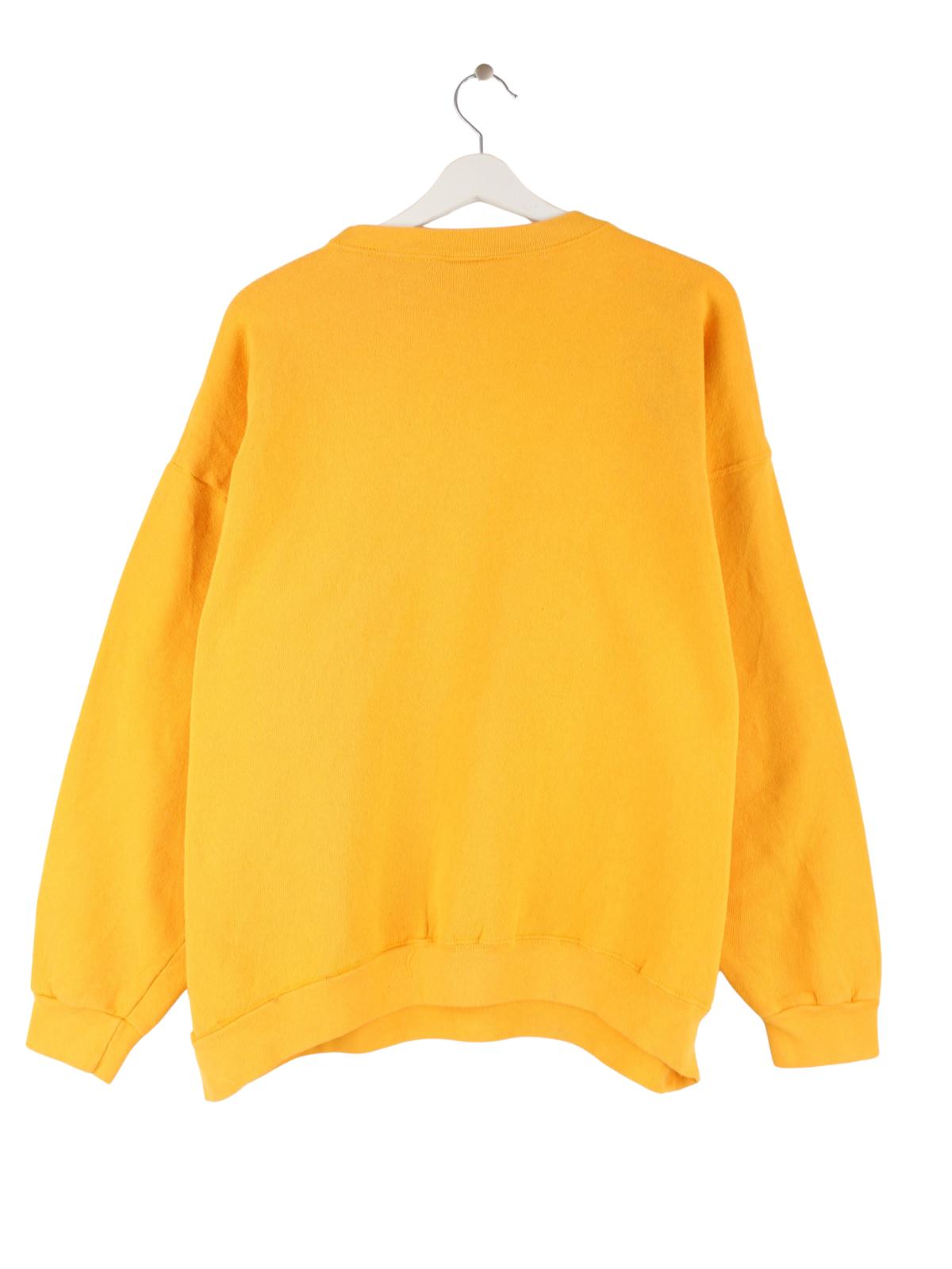 Gelber Vintage Sweater aus den 90'ern in Größe XL. Er ist aus einer Baumwollmischung produziert. Den Zustand würden wir als 'In Ordnung' bezeichnen (vergl. Bilder).