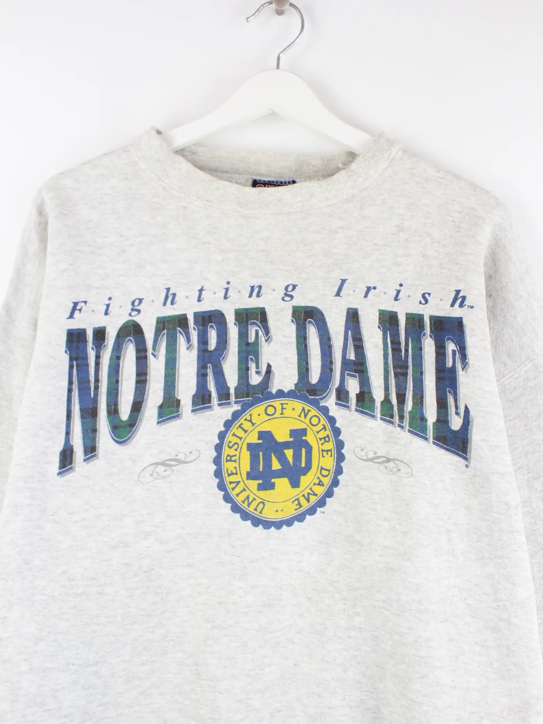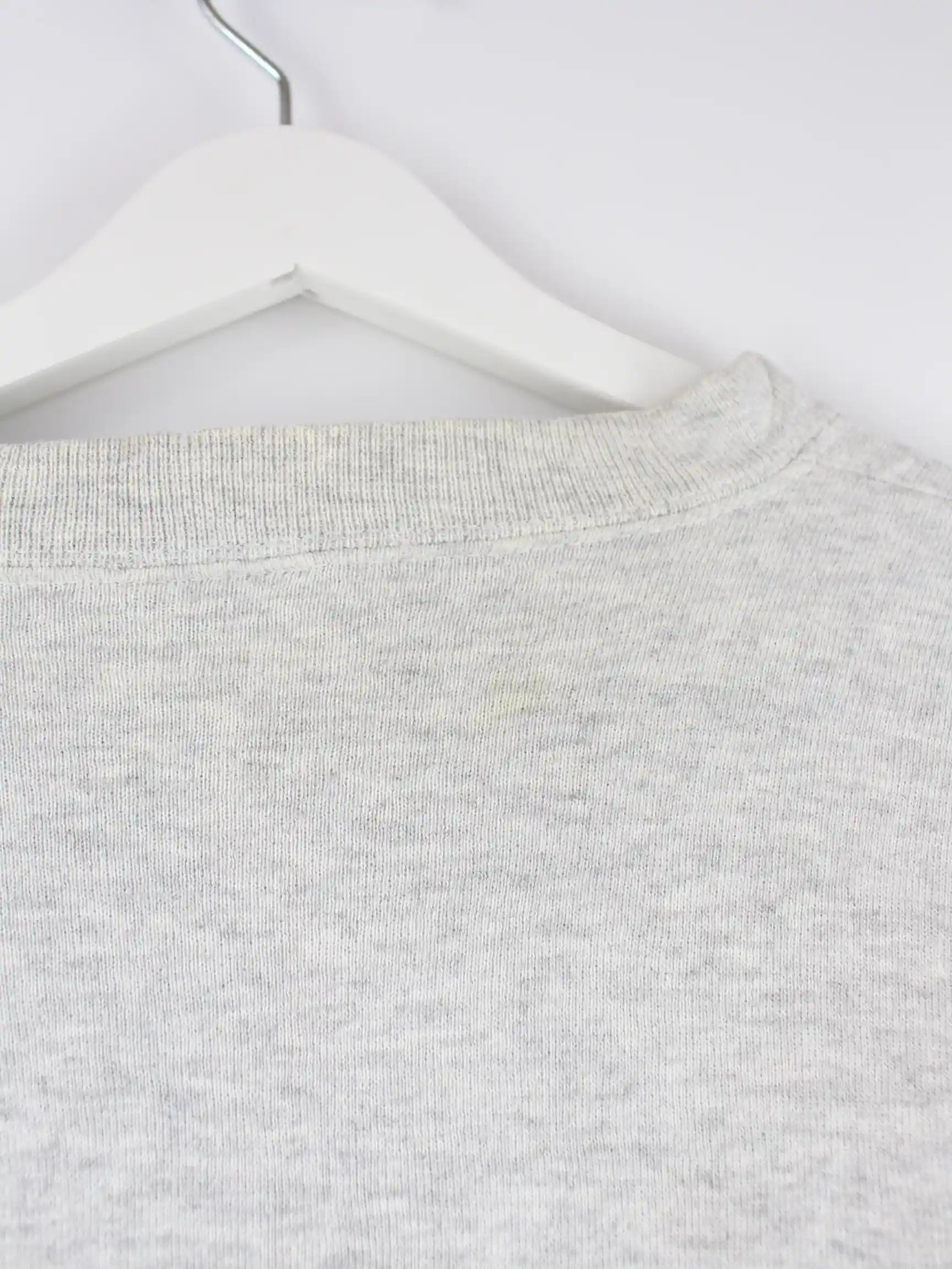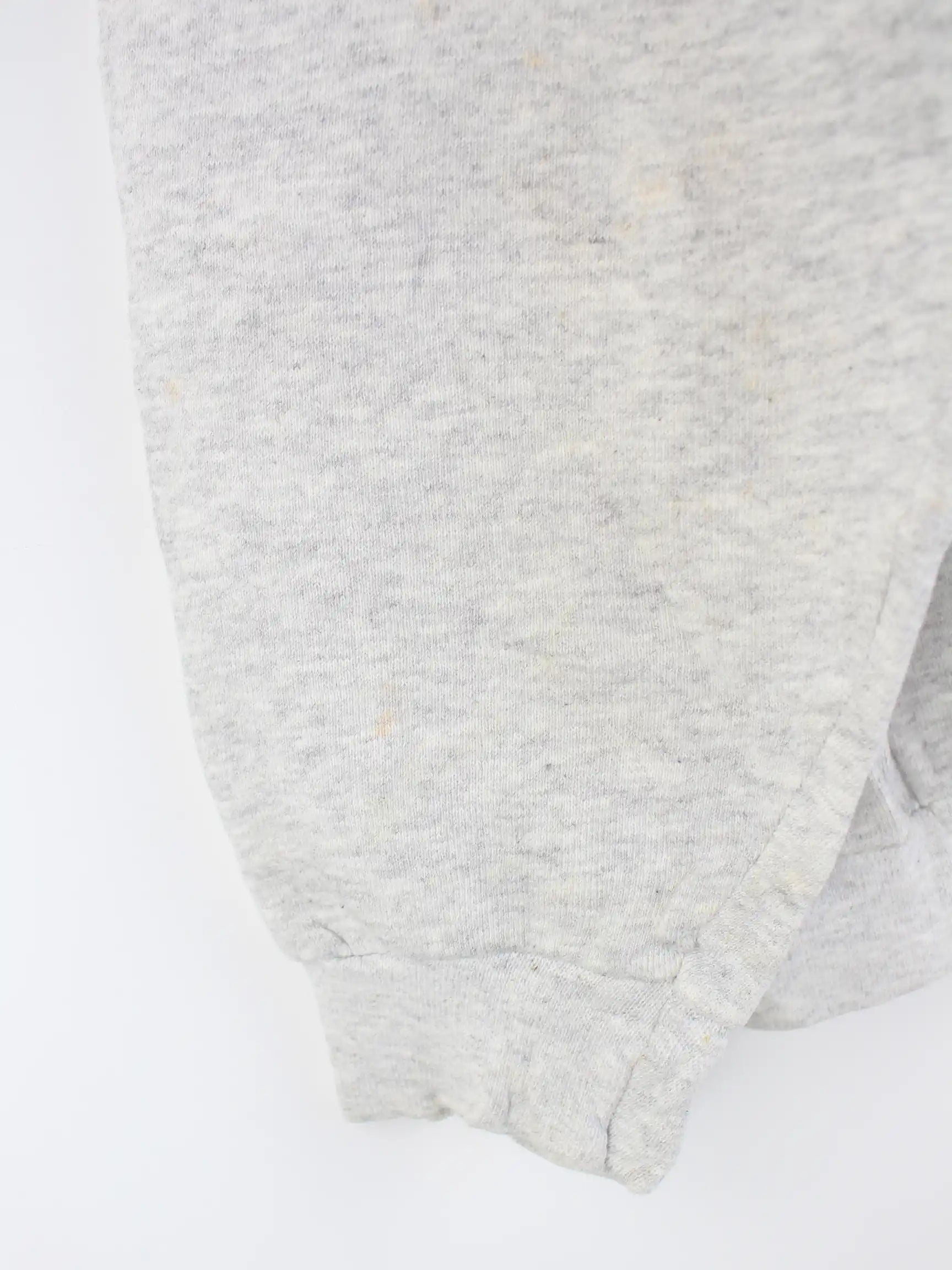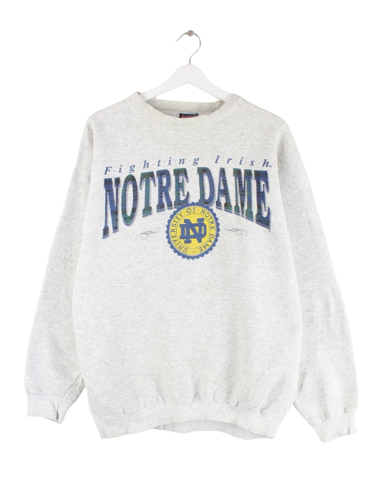Vintage Sweater in Größe L aus den 90'ern. Er ist aus einer Baumwollmischung hergestellt und in Grau bei uns vorrätig. Mit schönem Dame Print.