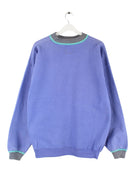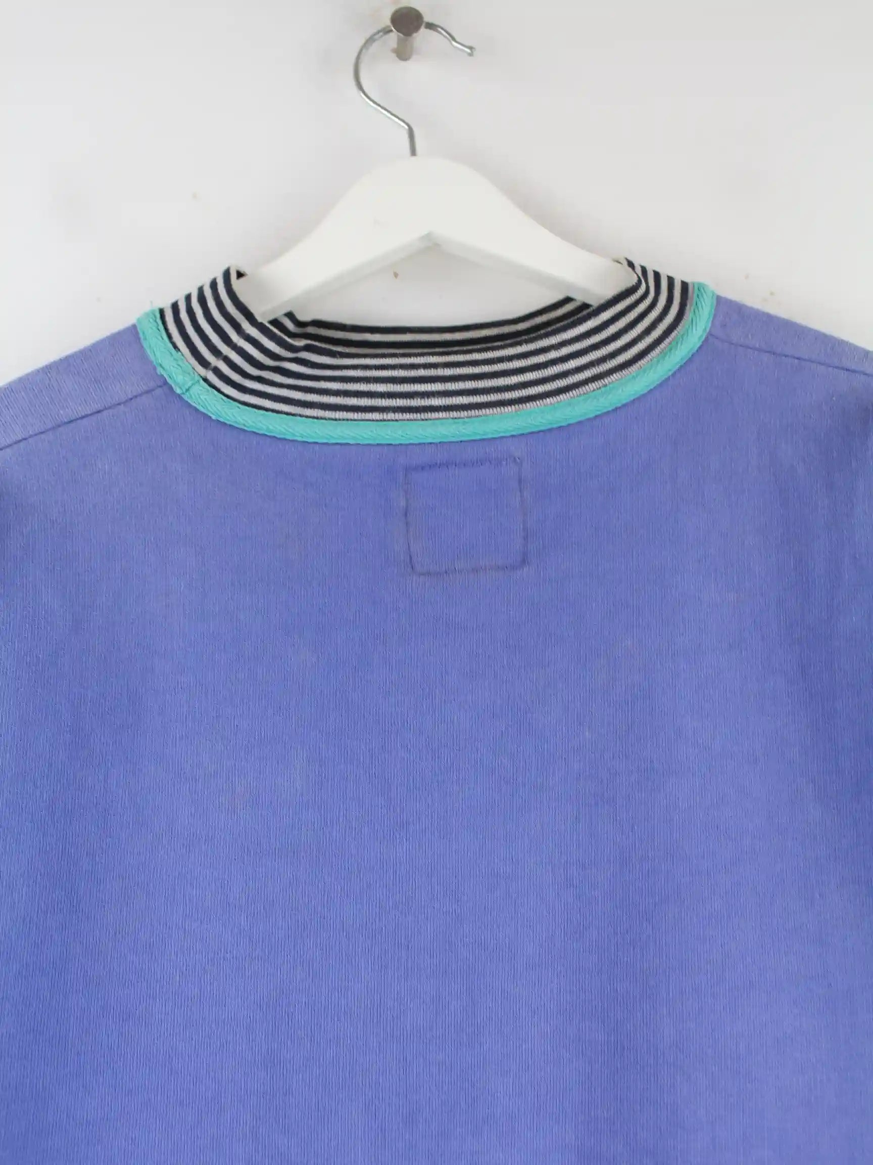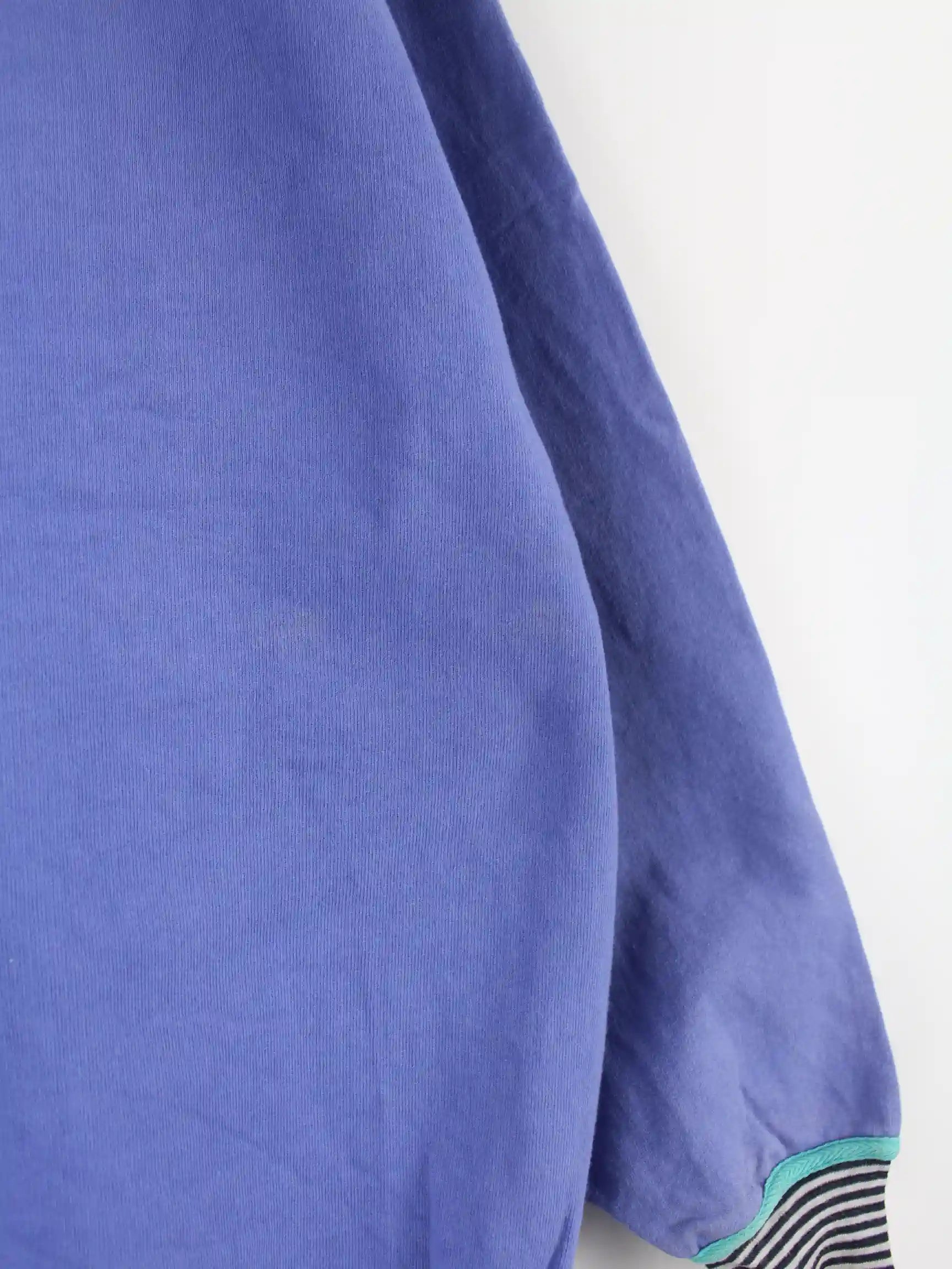 Blauer Vintage Sweater mit gestickten Motiven aus den 90'ern in Größe XL. Er ist aus einer Baumwollmischung angefertigt. Den Zustand würden wir als 'In Ordnung' bezeichnen (vergl. Bilder).