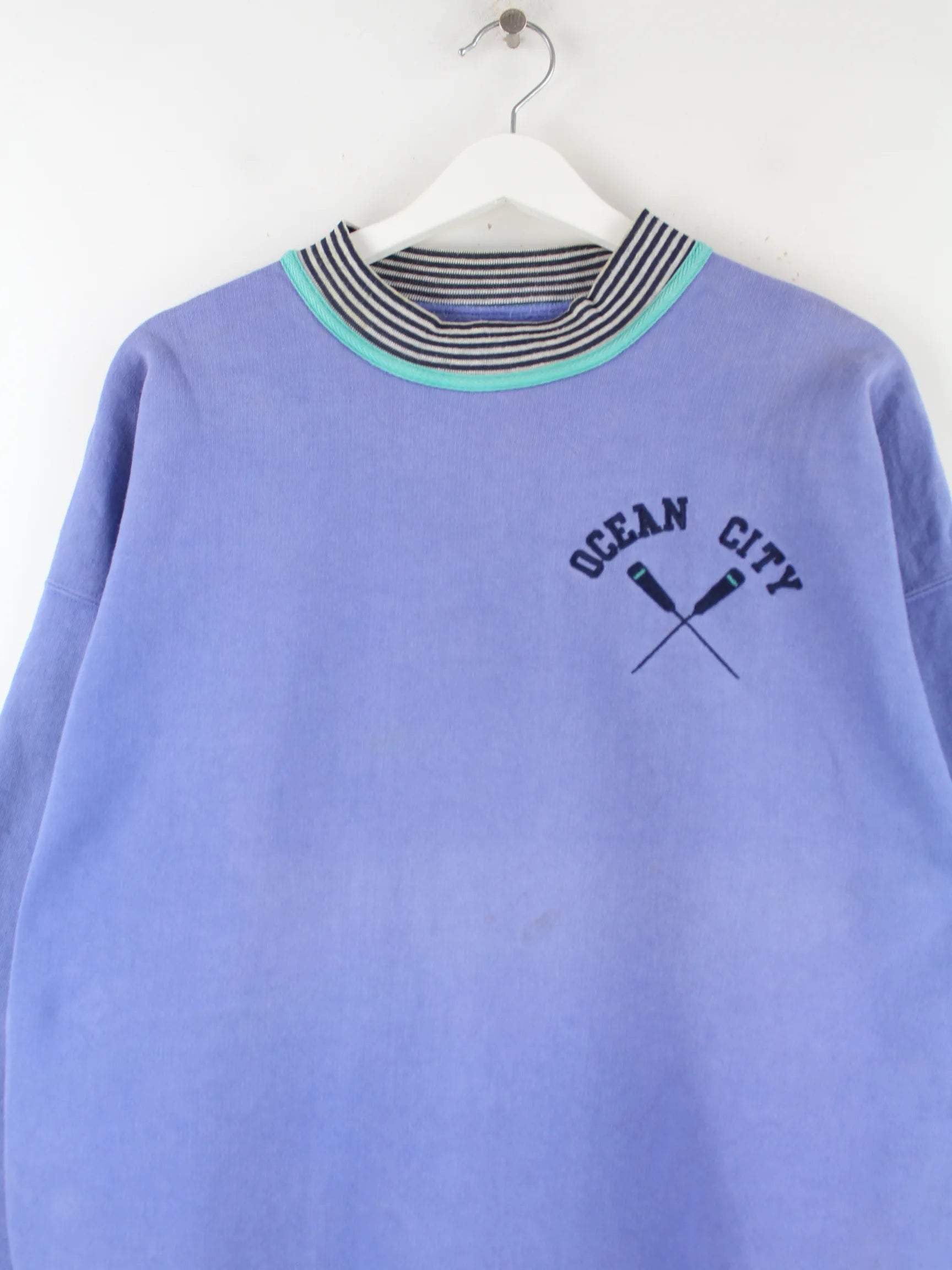 Vintage 90s Ocean City Paddle Embroidered Sweater Blau XL