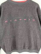 Vintage Sweater in Größe L aus den 90'ern. Er ist aus einer Baumwollmischung gemacht und in Grau bei uns vorrätig. Mit chiquem 90s Print.