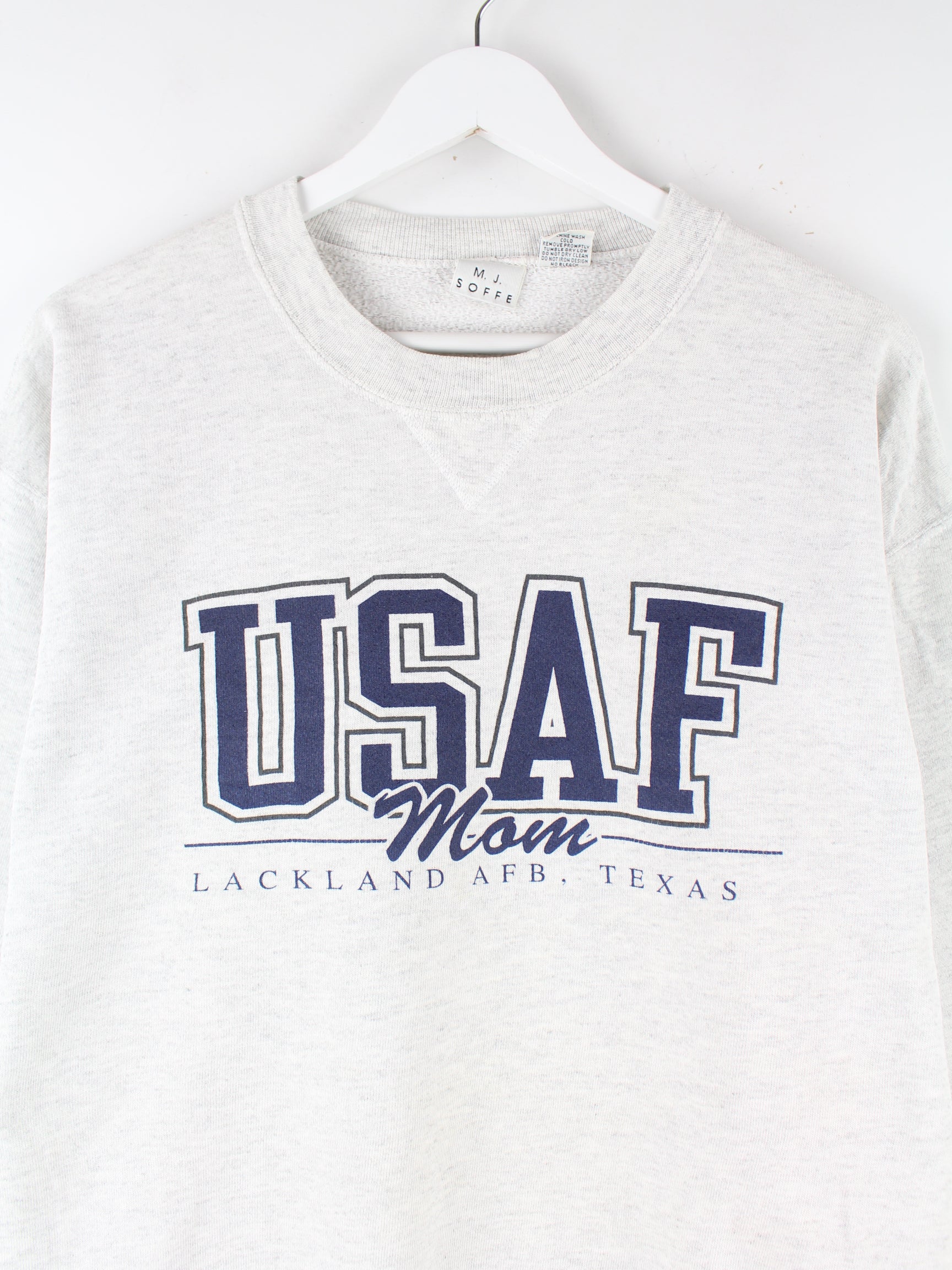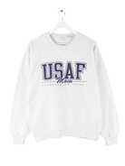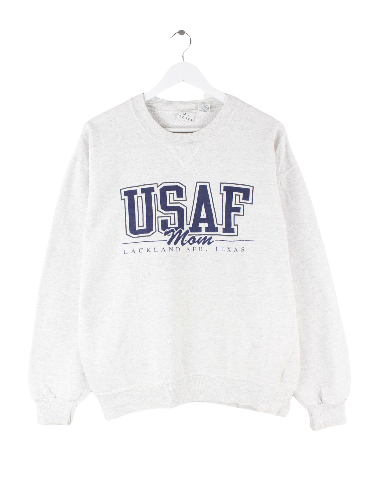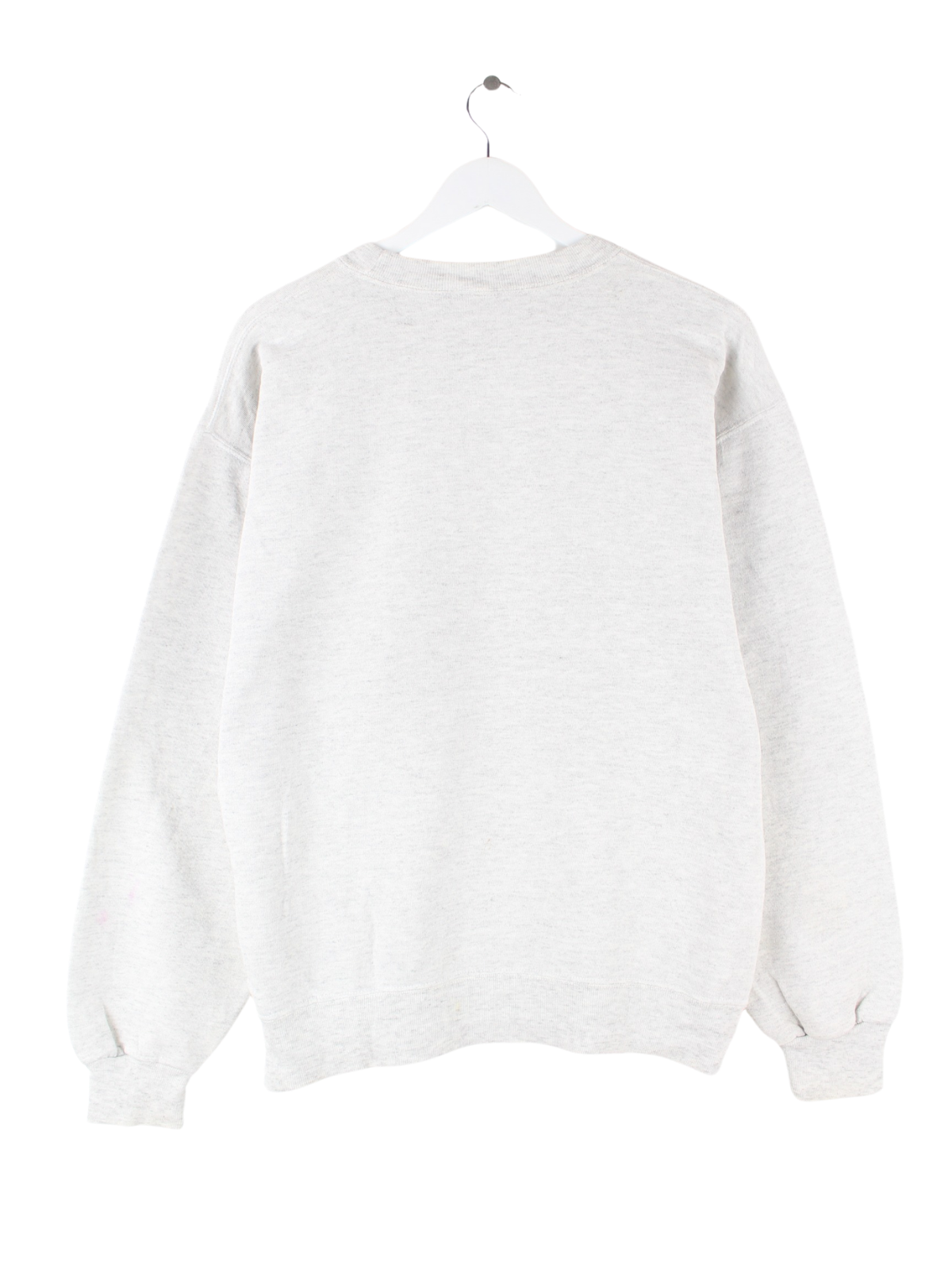 Vintage Sweater in Größe M aus den 90'ern. Er ist aus einer Baumwollmischung angefertigt und in Grau im Angebot. Mit schönem University Print.