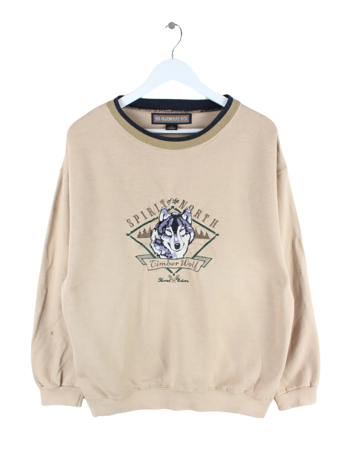 Vintage 90s Timber Wolf Embroidered Sweater Braun L
