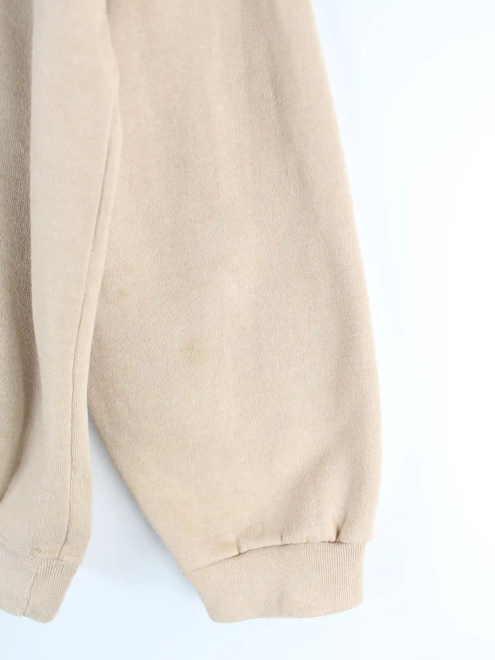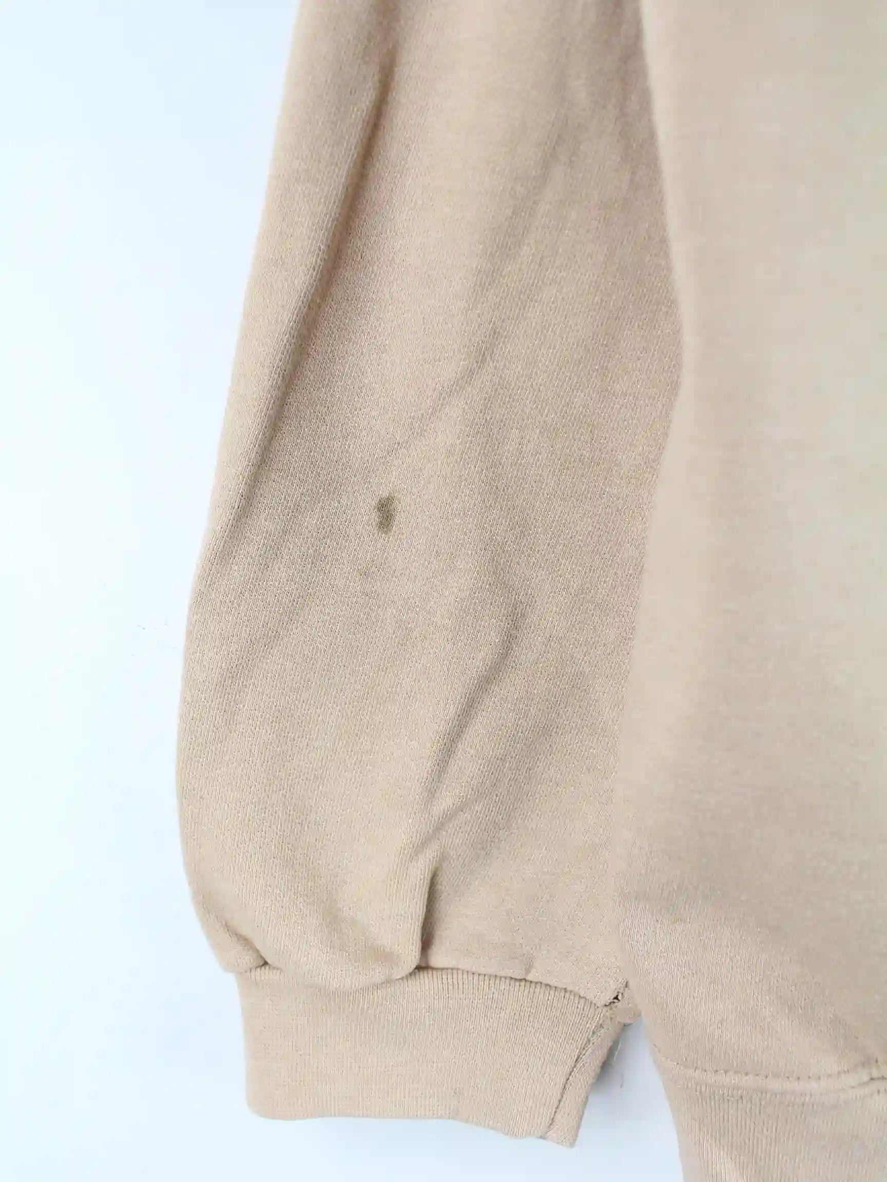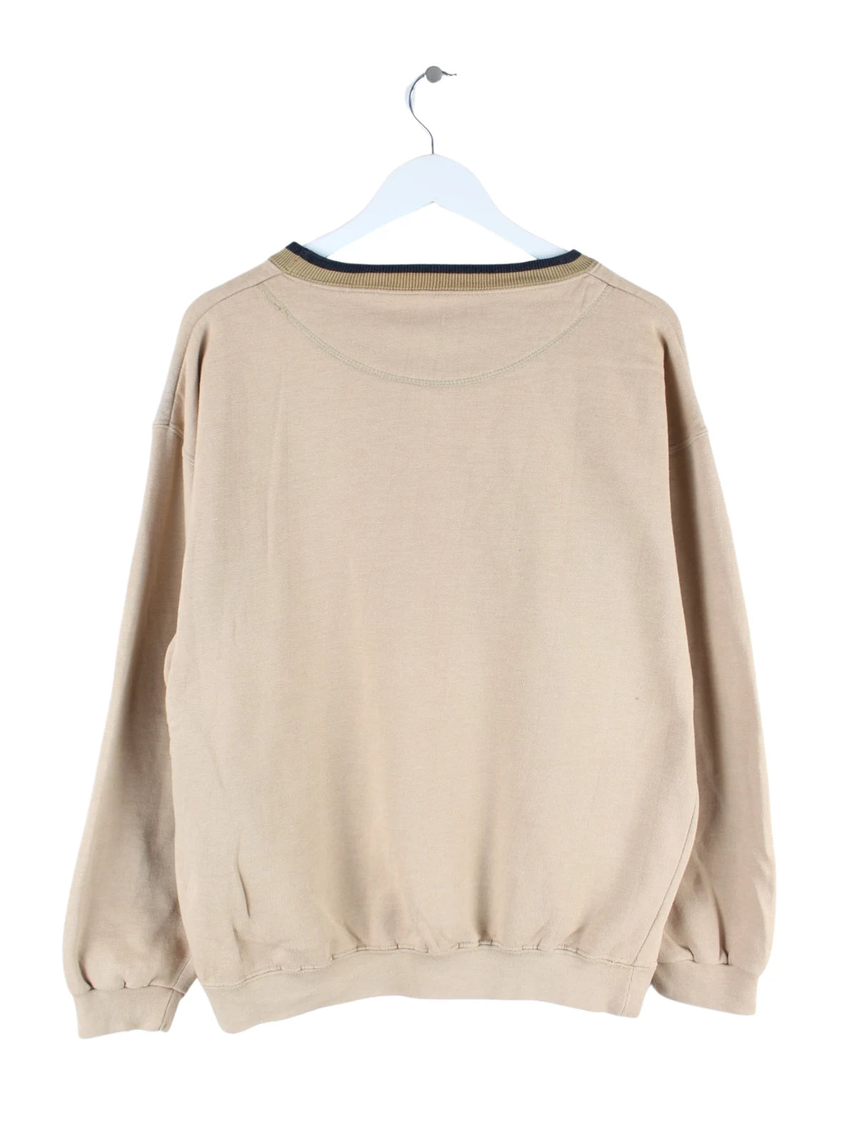 Vintage Sweater mit gestickten Motiven in Größe L aus den 90'ern. Er ist aus einer Baumwollmischung und in Braun bei uns zu bekommen.