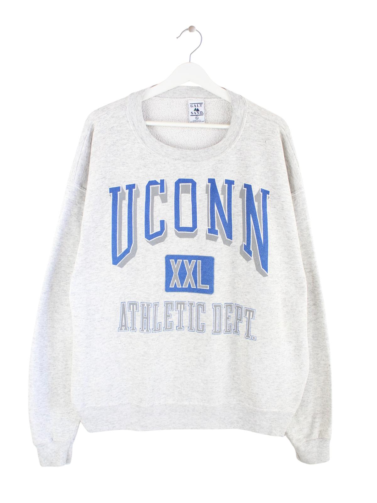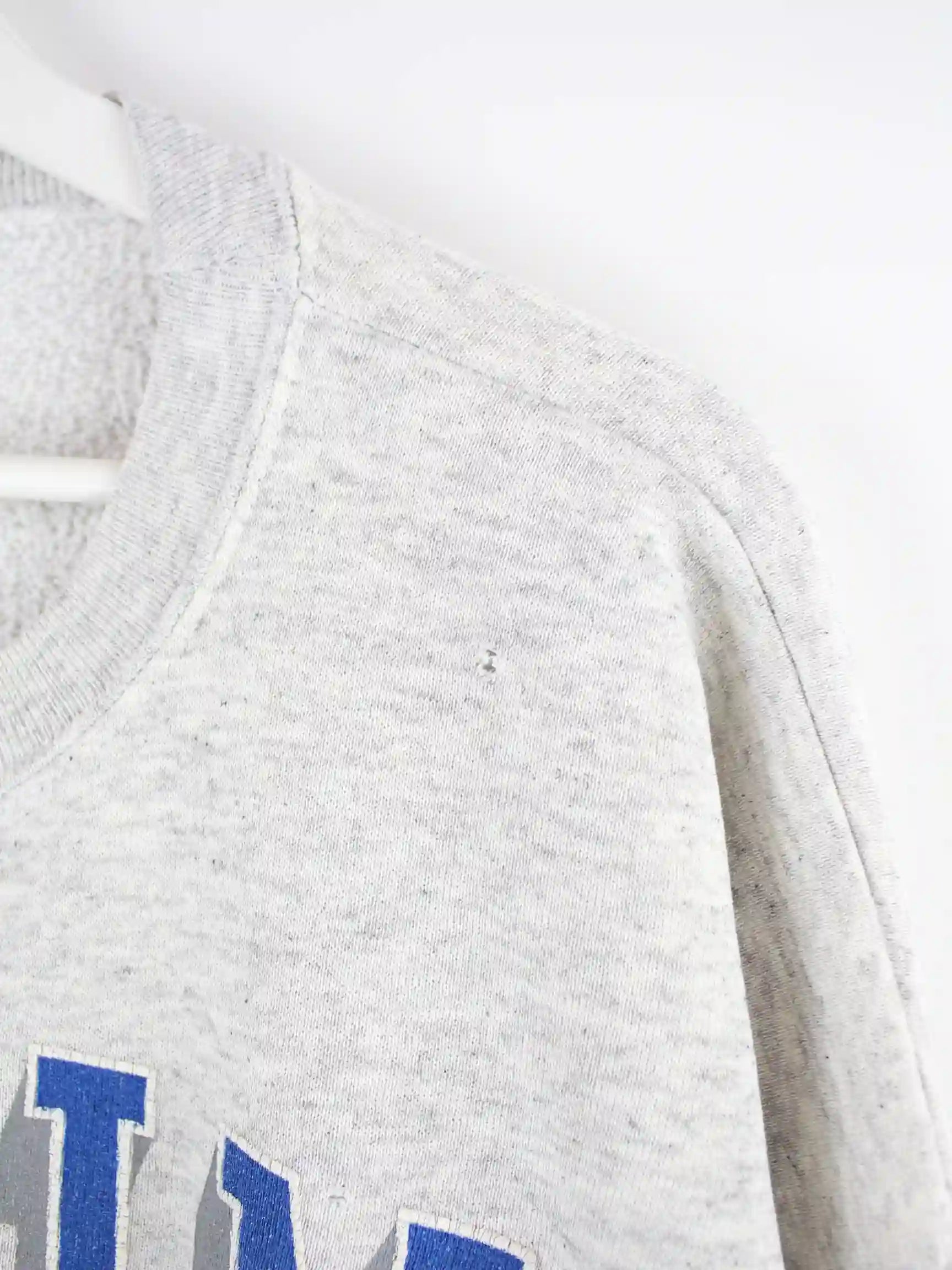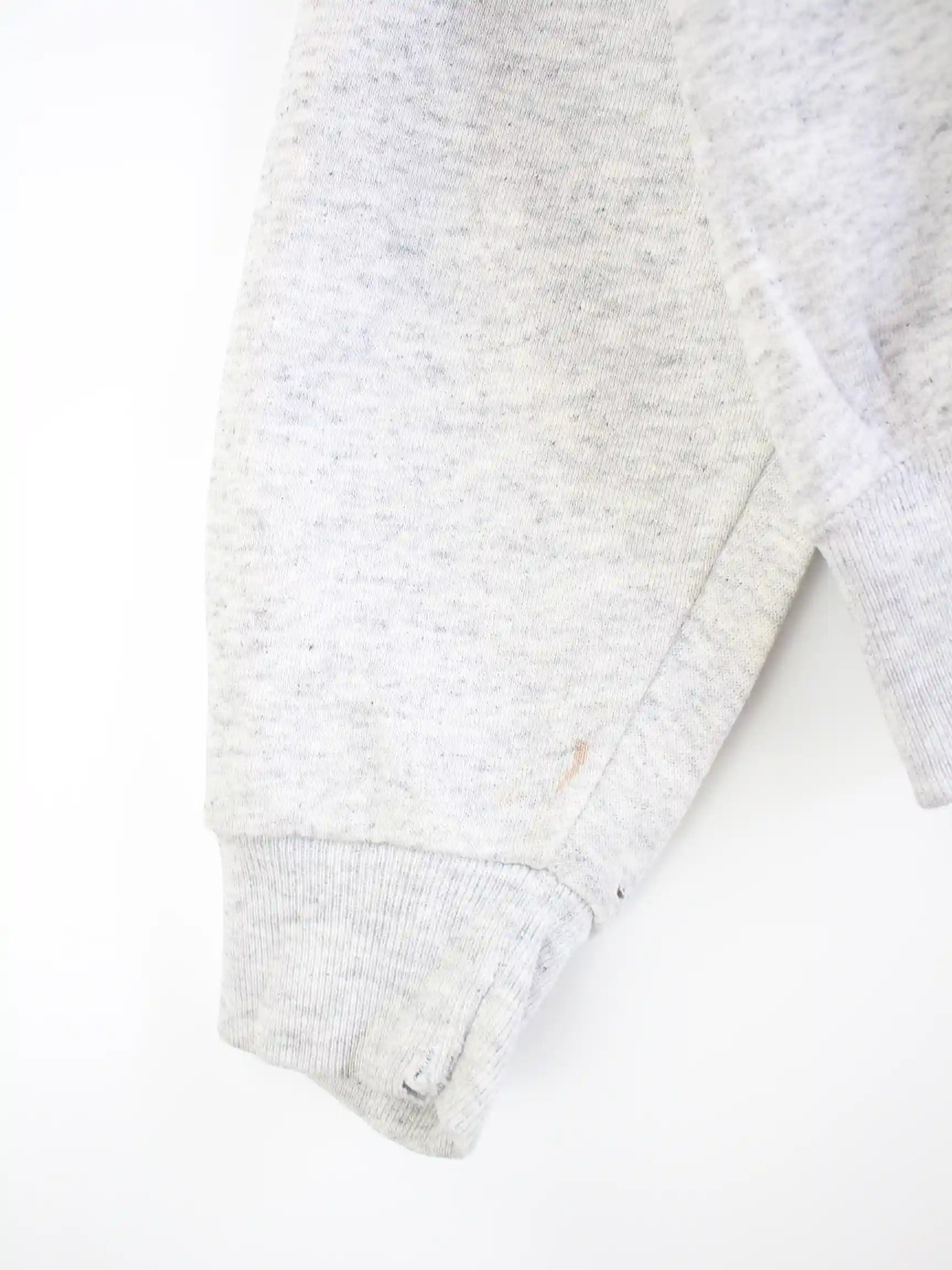 Grauer Vintage Sweater aus den 90'ern in Größe XL. Er ist aus einer Baumwollmischung gemacht. Den Zustand würden wir als 'In Ordnung' bezeichnen (vergl. Bilder).