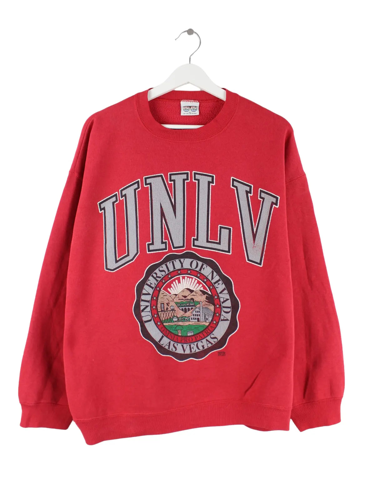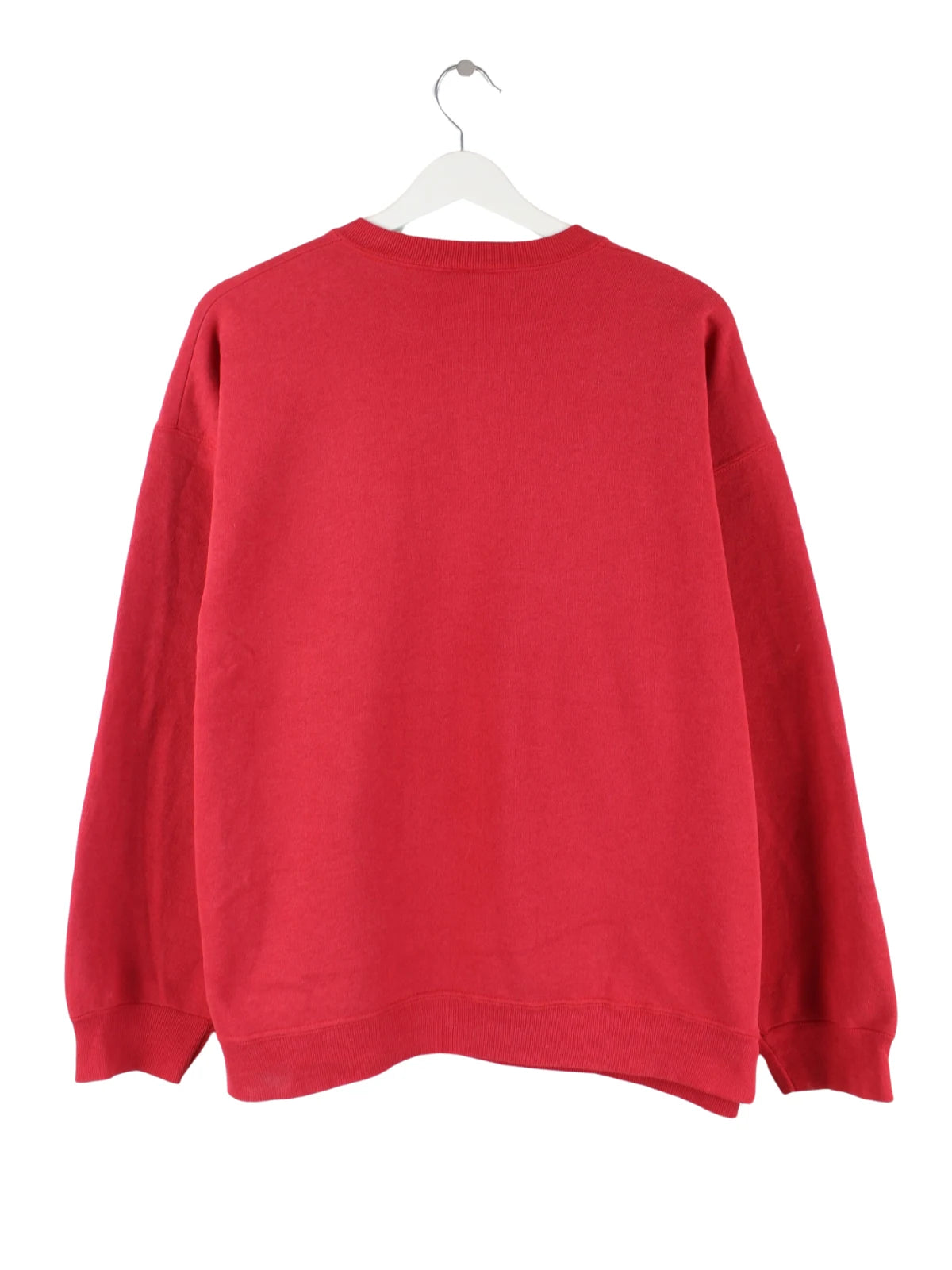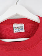 Vintage Sweater in Größe XL aus den 90'ern. Er ist aus einer Baumwollmischung produziert und in Rot bei uns zu bekommen. Mit schönem Nevada Print.