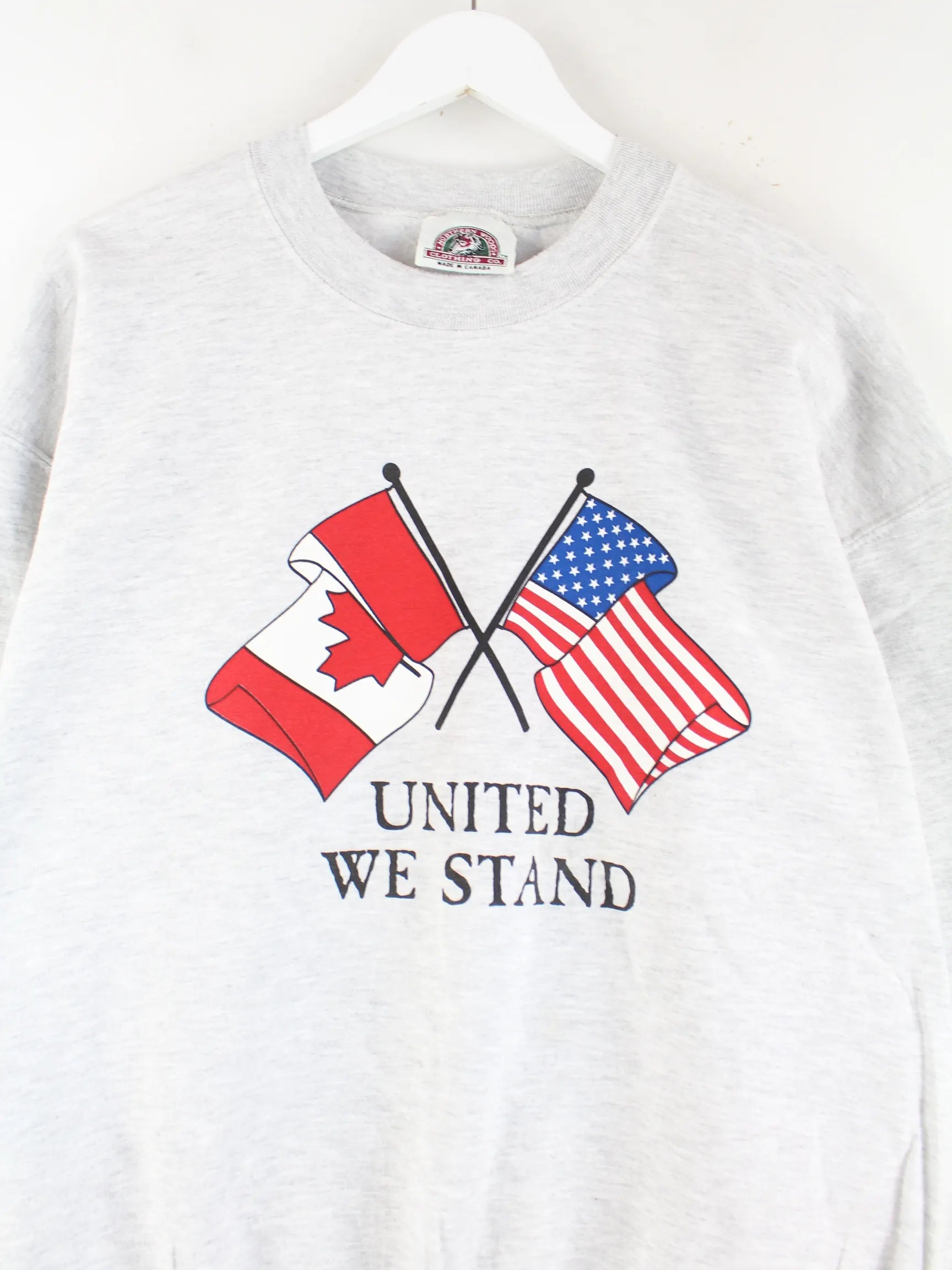 Vintage 90s USA Canada Print Sweater Grau XXL