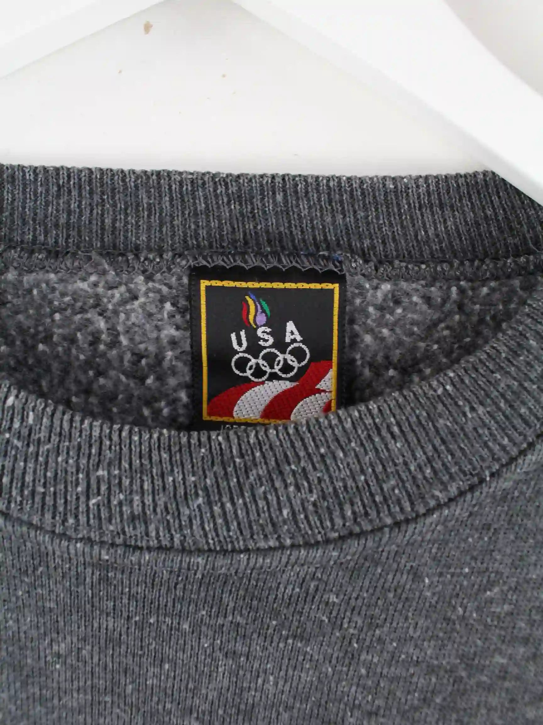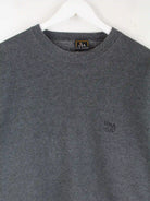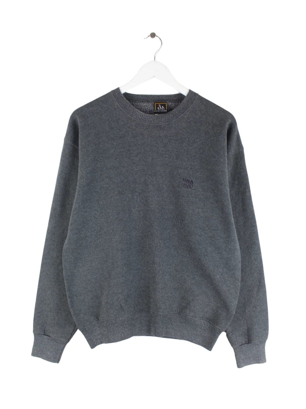 Grauer Vintage Sweater aus den 90'ern in Größe M. Er ist aus einer Baumwollmischung gefertigt und in sehr gutem Zustand im Bestand.