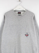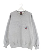 Grauer Vintage Sweater aus den 90'ern in Größe XL. Er ist aus einer Baumwollmischung und in gutem Zustand bei uns vorrätig.