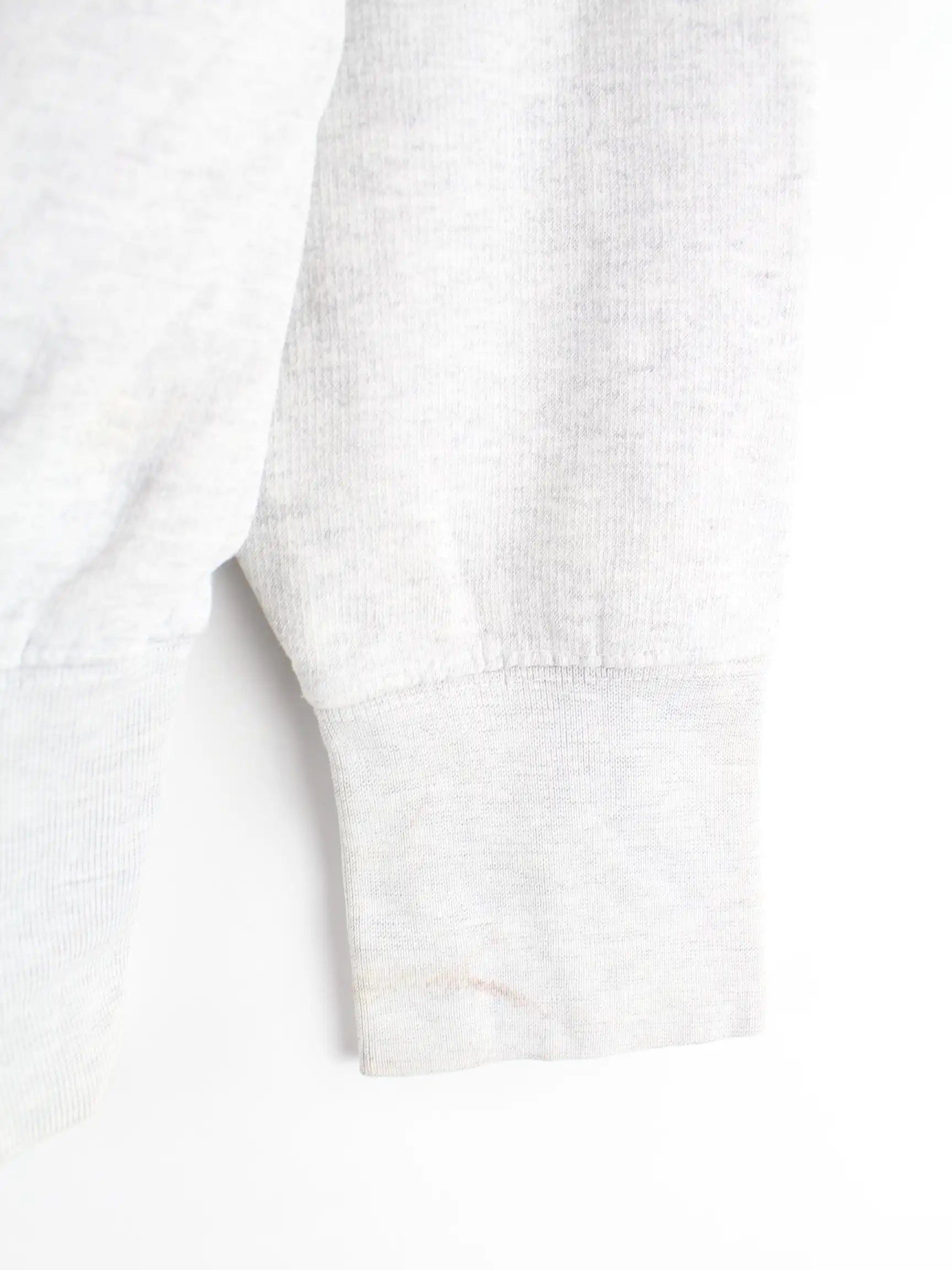 Grauer Vintage Sweater aus den 90'ern in Größe L. Er ist aus einer Baumwollmischung gefertigt. Den Zustand würden wir als 'In Ordnung' bezeichnen (vergl. Bilder).