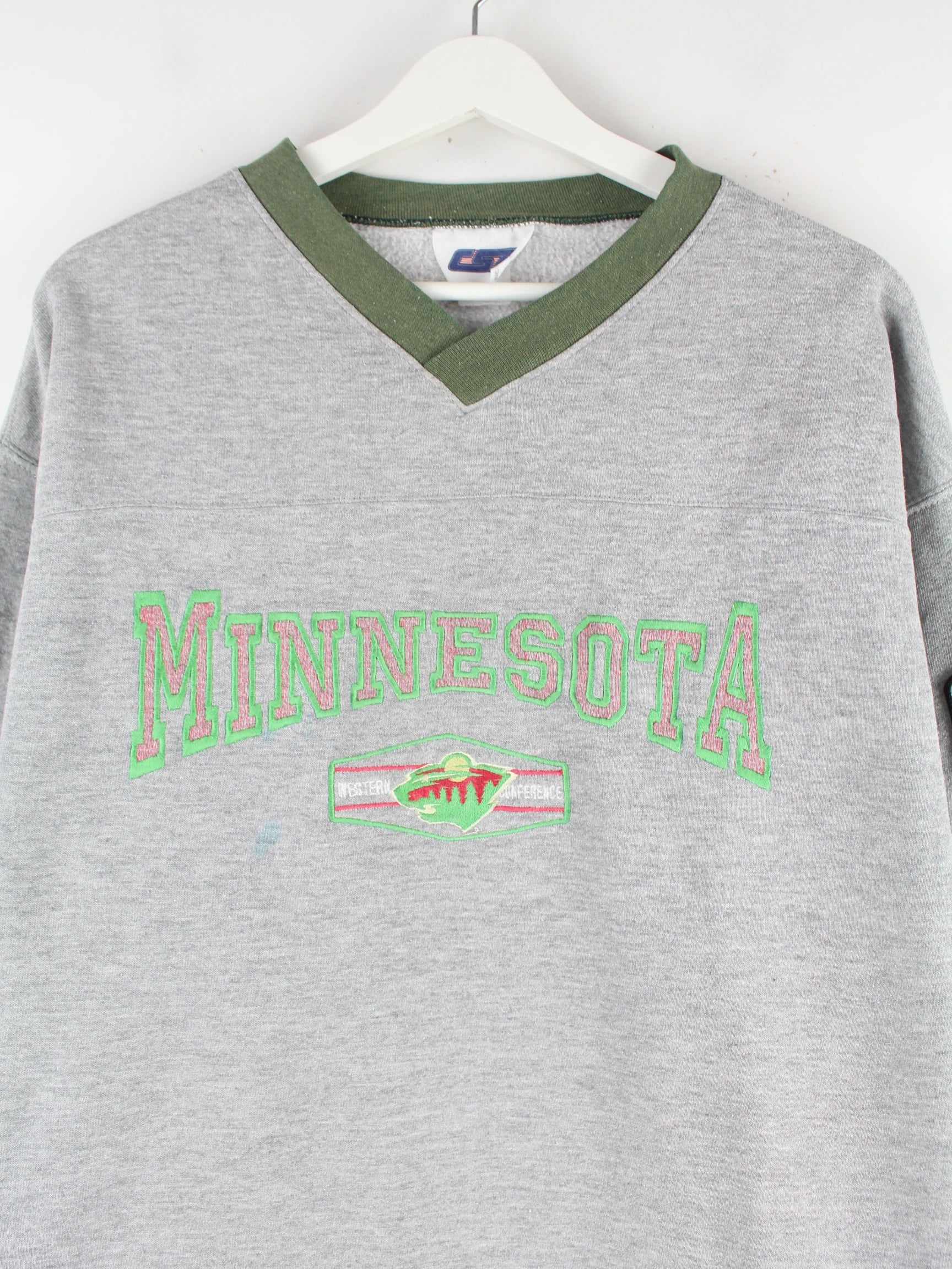 Vintage 90s Vintage Minnesota Embroidered V-Neck Sweater Grau L