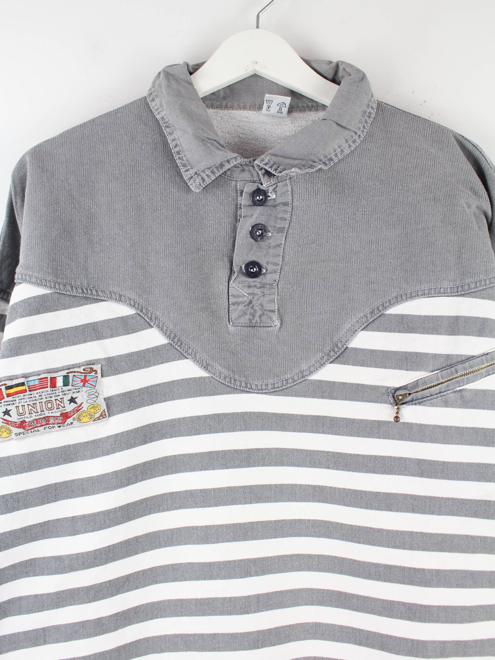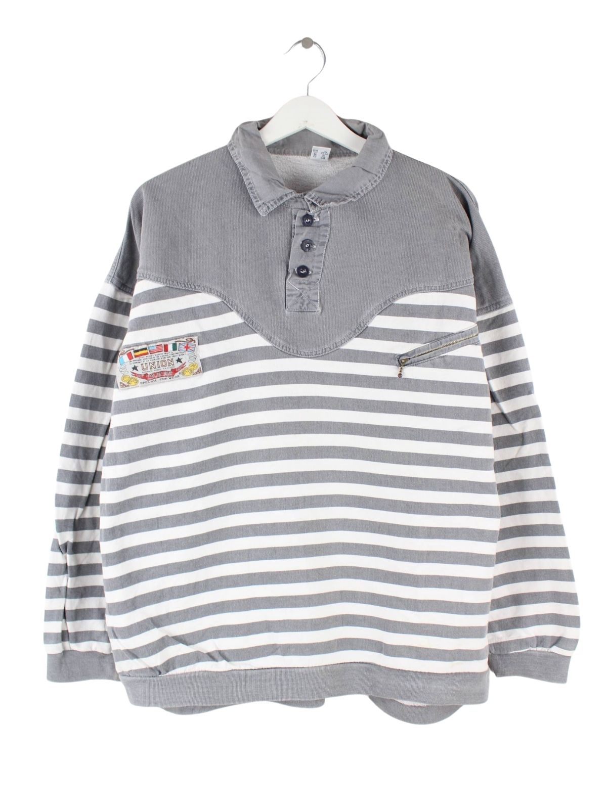 Vintage 90s Vintage Striped Embroidered Polo Sweater Grau M
