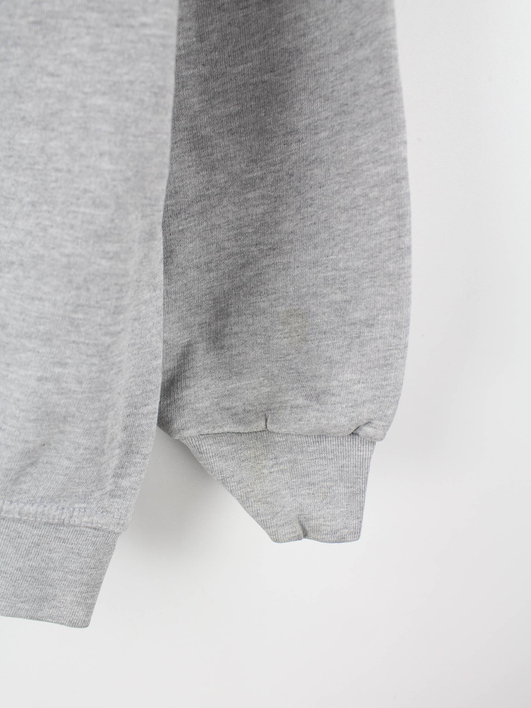 Grauer Vintage Sweater aus den 90'ern in Größe L. Er ist aus einer Baumwollmischung hergestellt und in gutem Zustand im Angebot. Mit chiquem Badgers Print.
