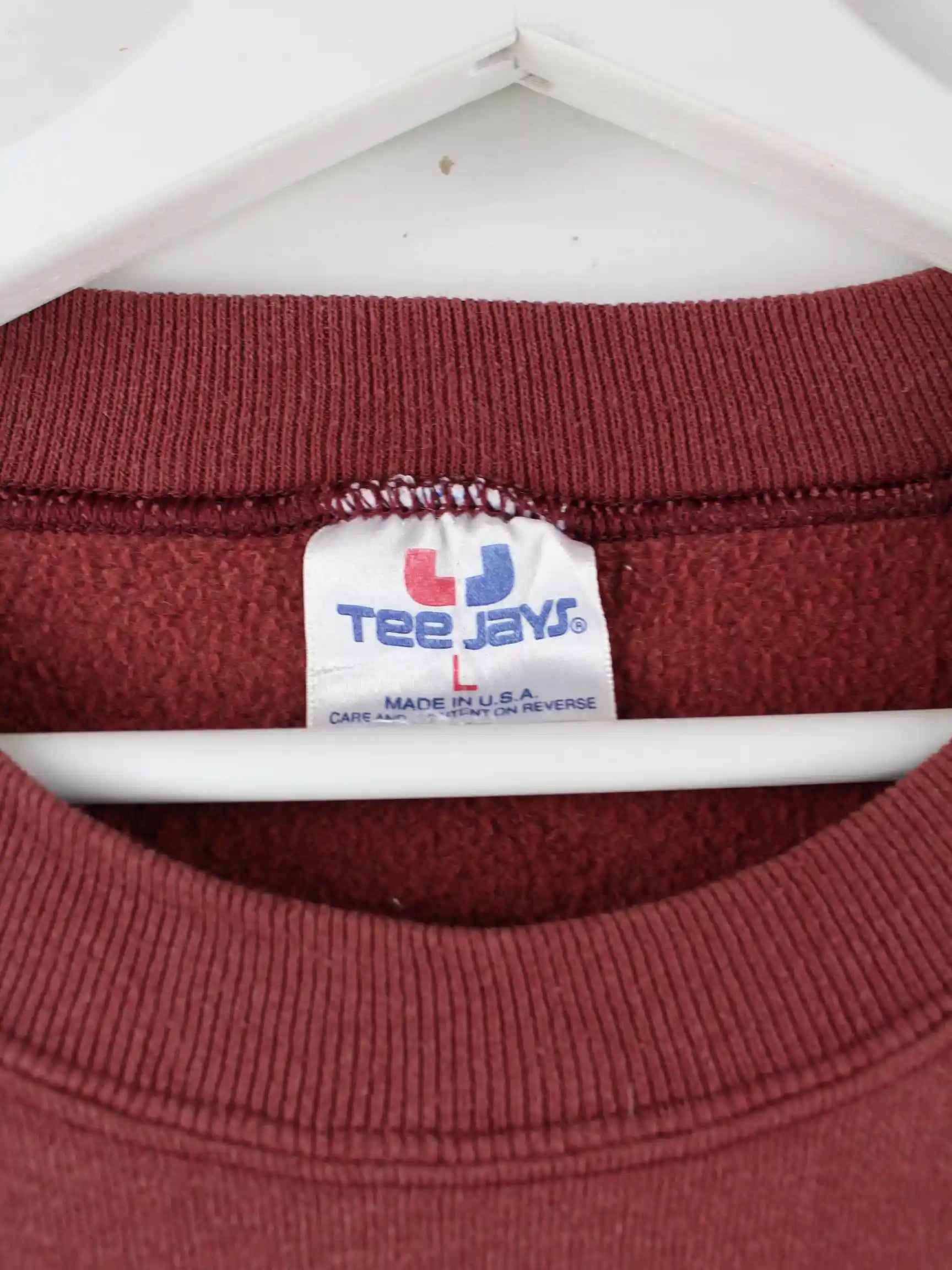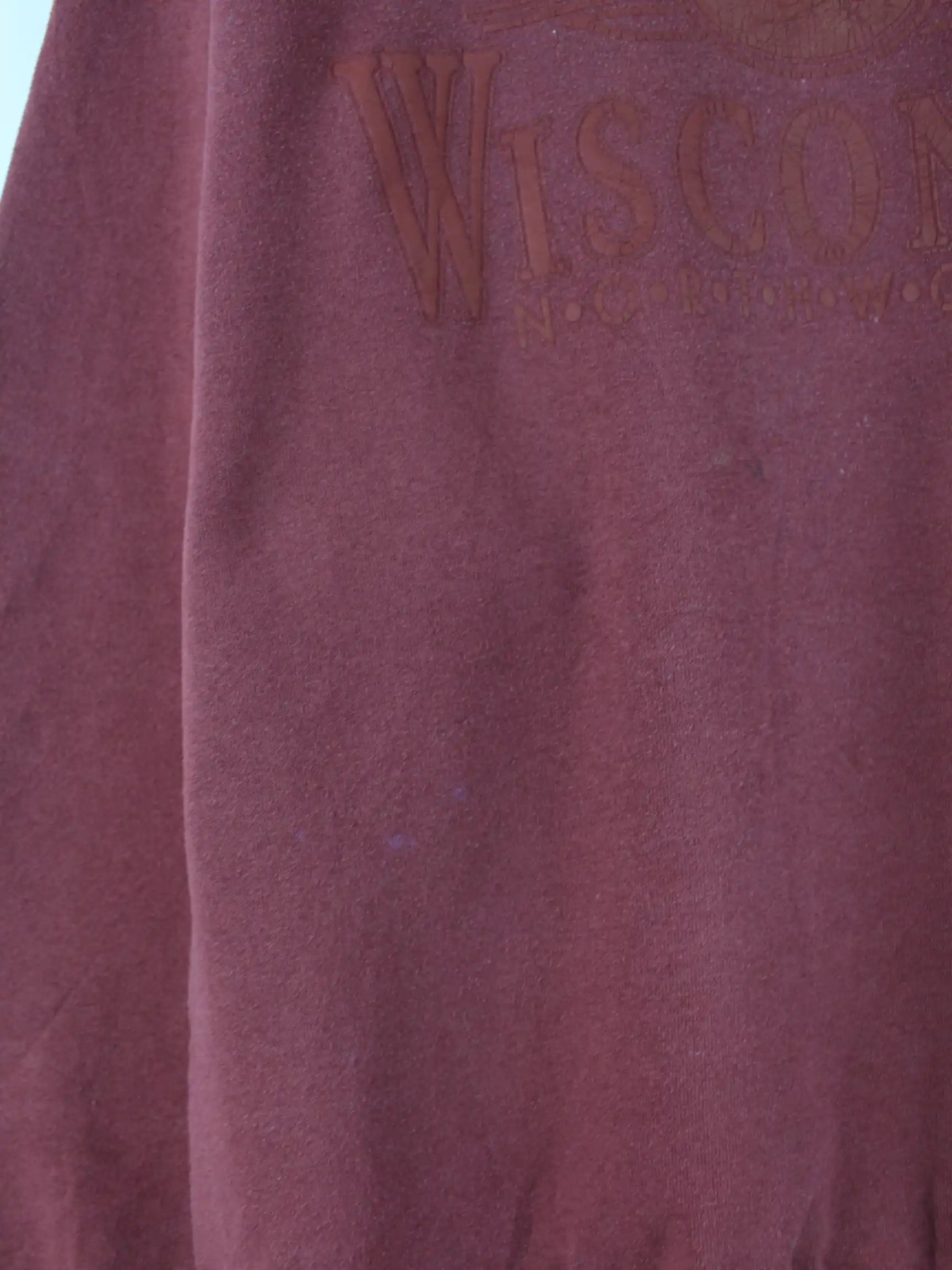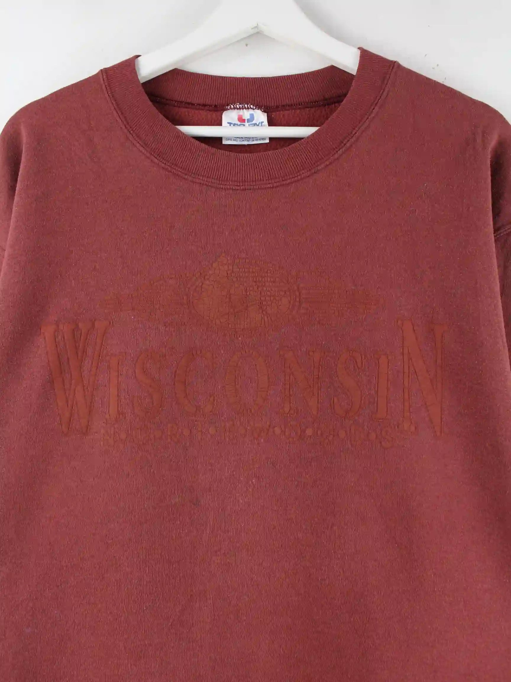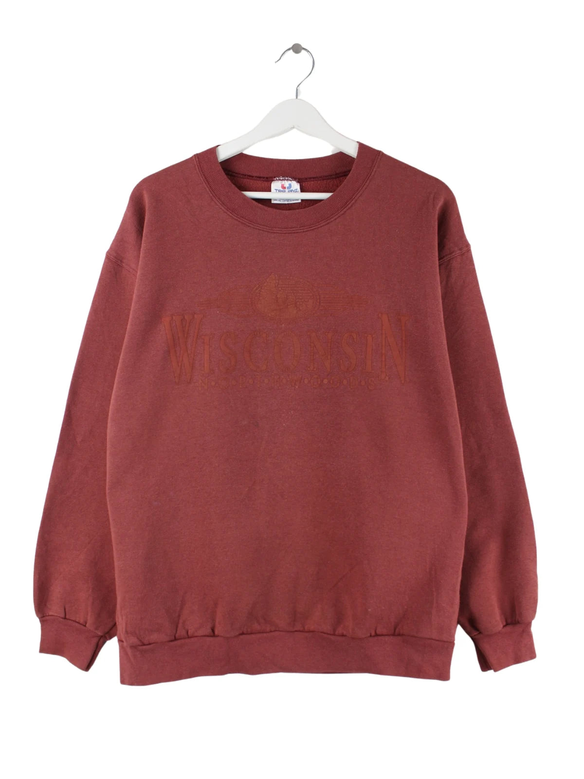 Roter Vintage Sweater aus den 90'ern in Größe L. Er ist aus einer Baumwollmischung . Den Zustand würden wir als 'In Ordnung' bezeichnen (vergl. Bilder).Mit chiquem Wisconsin Print.
