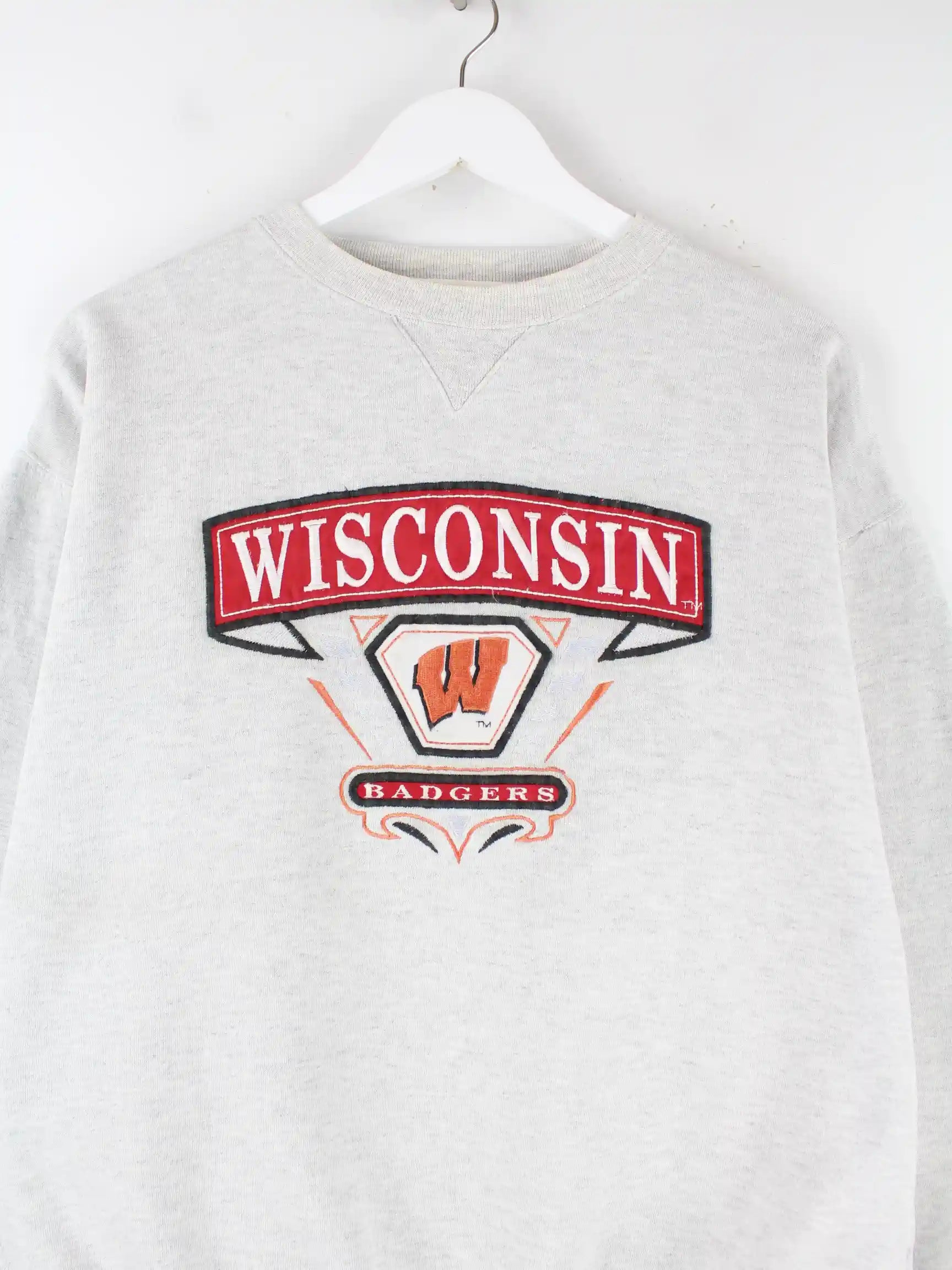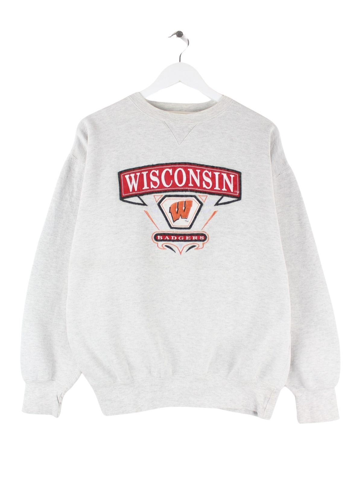 Vintage 90s Wisconsin Badgers Embroidered Sweater Grau M