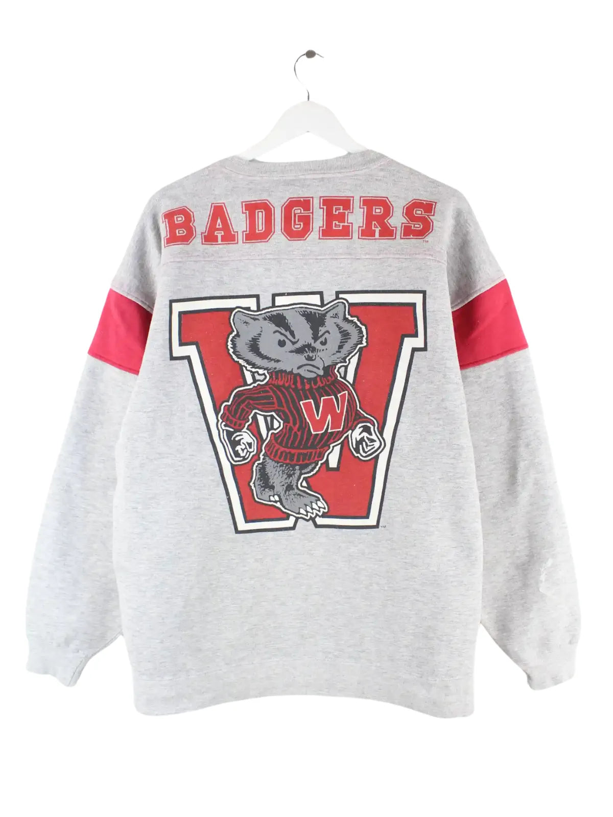 Vintage 90s Wisconsin Badgers Print Heavy Sweater Grau XL