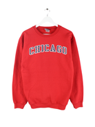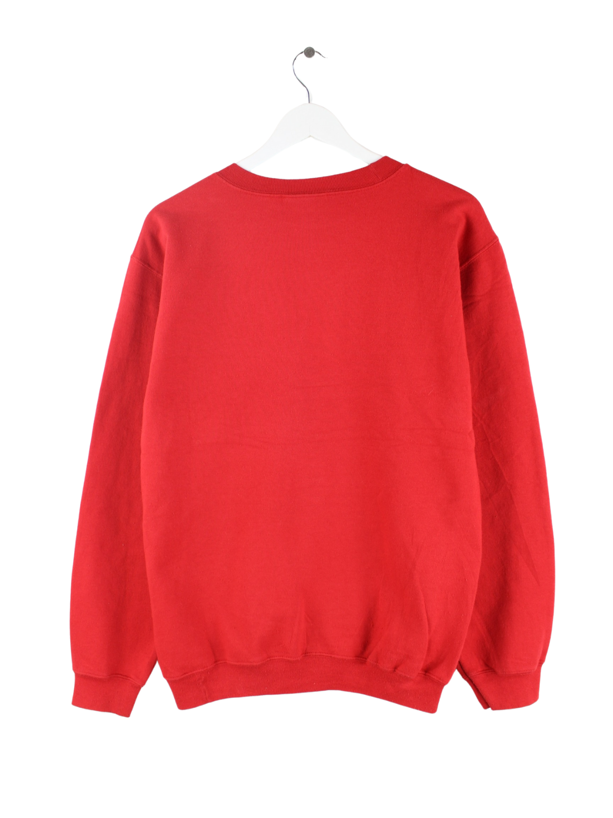 Roter Vintage Sweater mit Stick in Größe S. Er ist aus einer Baumwollmischung angefertigt und in sehr gutem Zustand vorrätig.