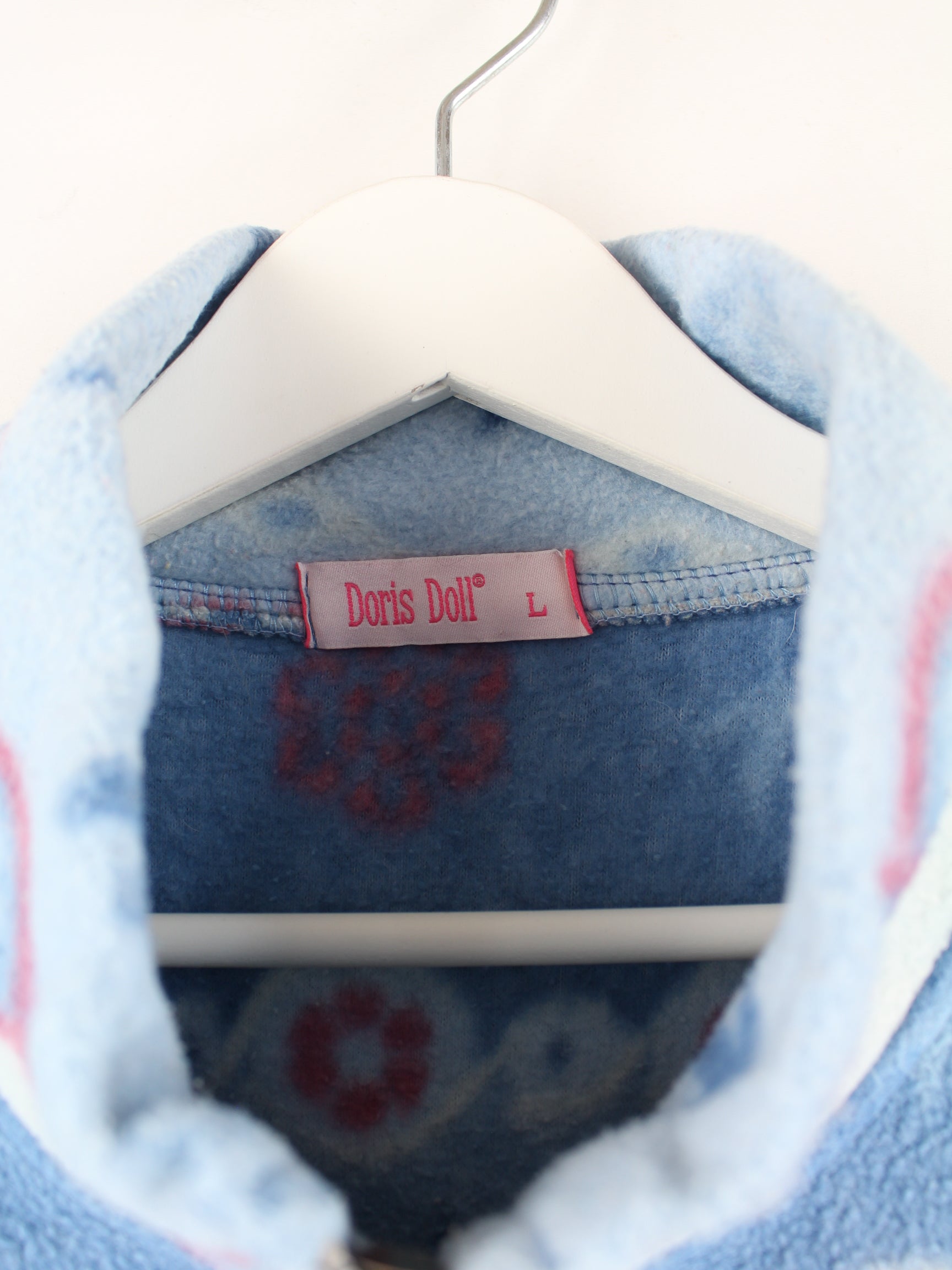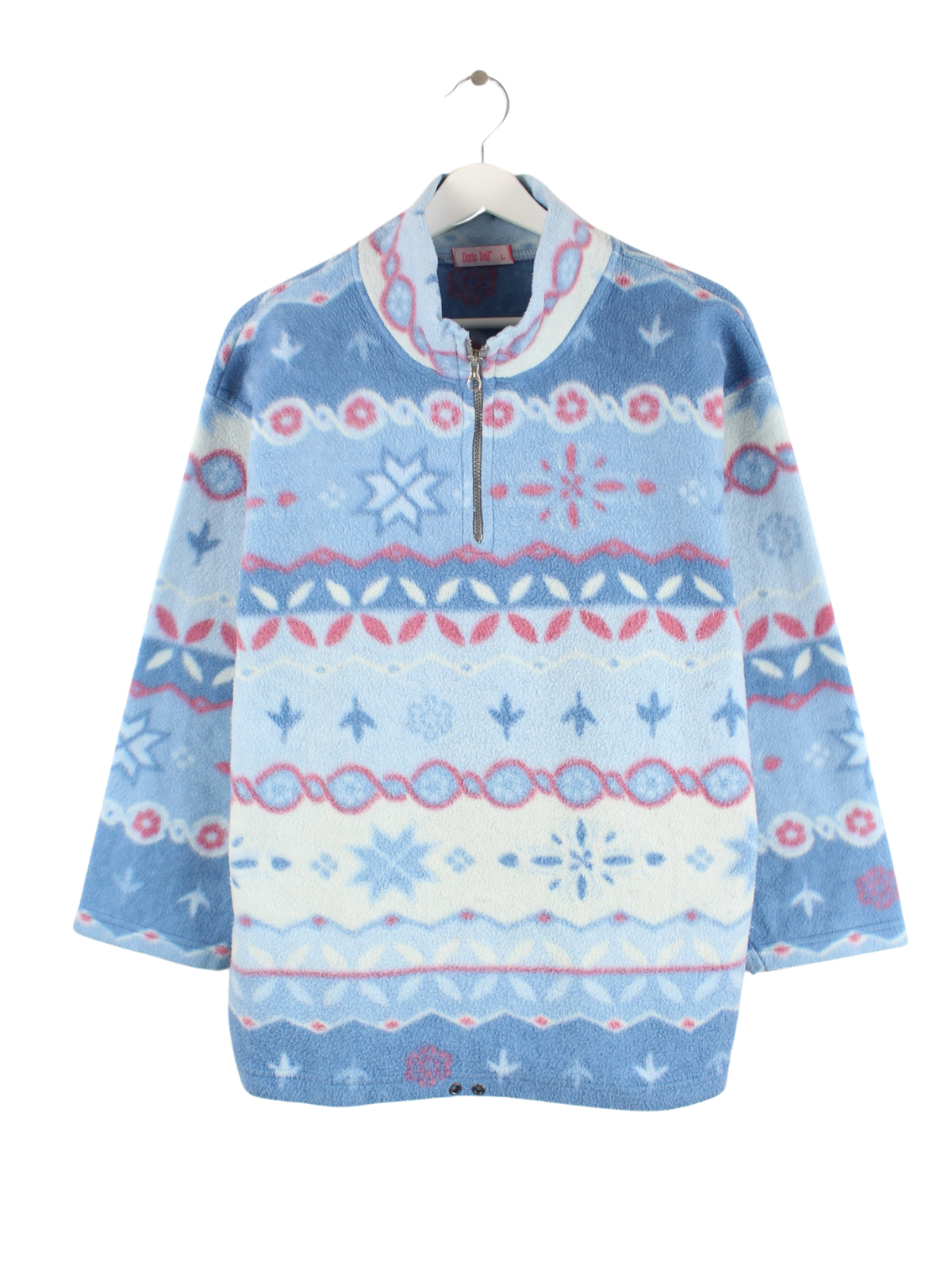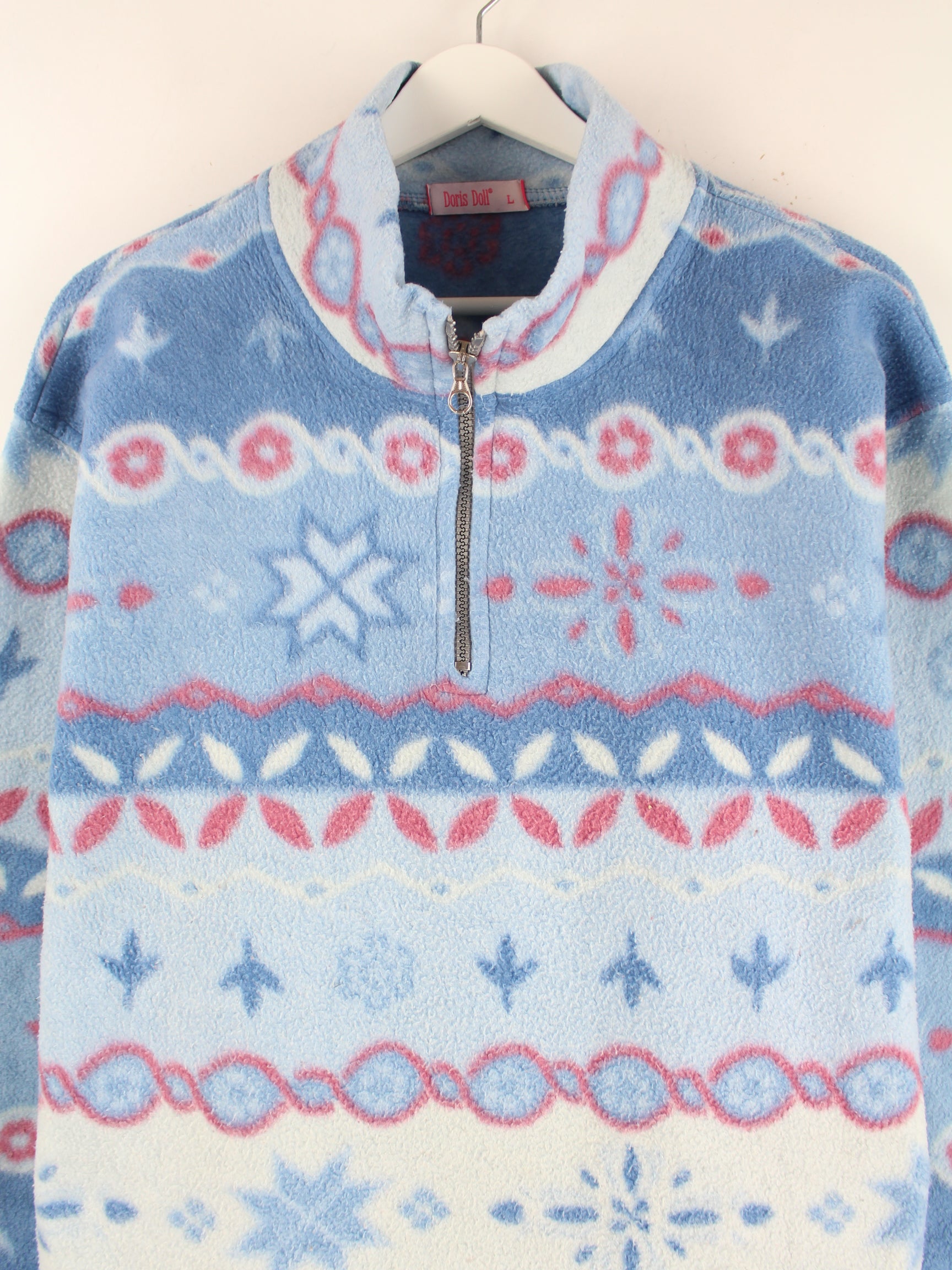 Vintage Damen 80s Crazy Pattern Half Zip Fleece Sweater Blau L
